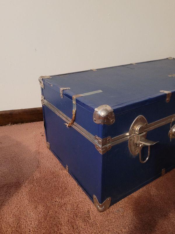 Lot 857: Vintage Blue Trunk (Lock is Broken)