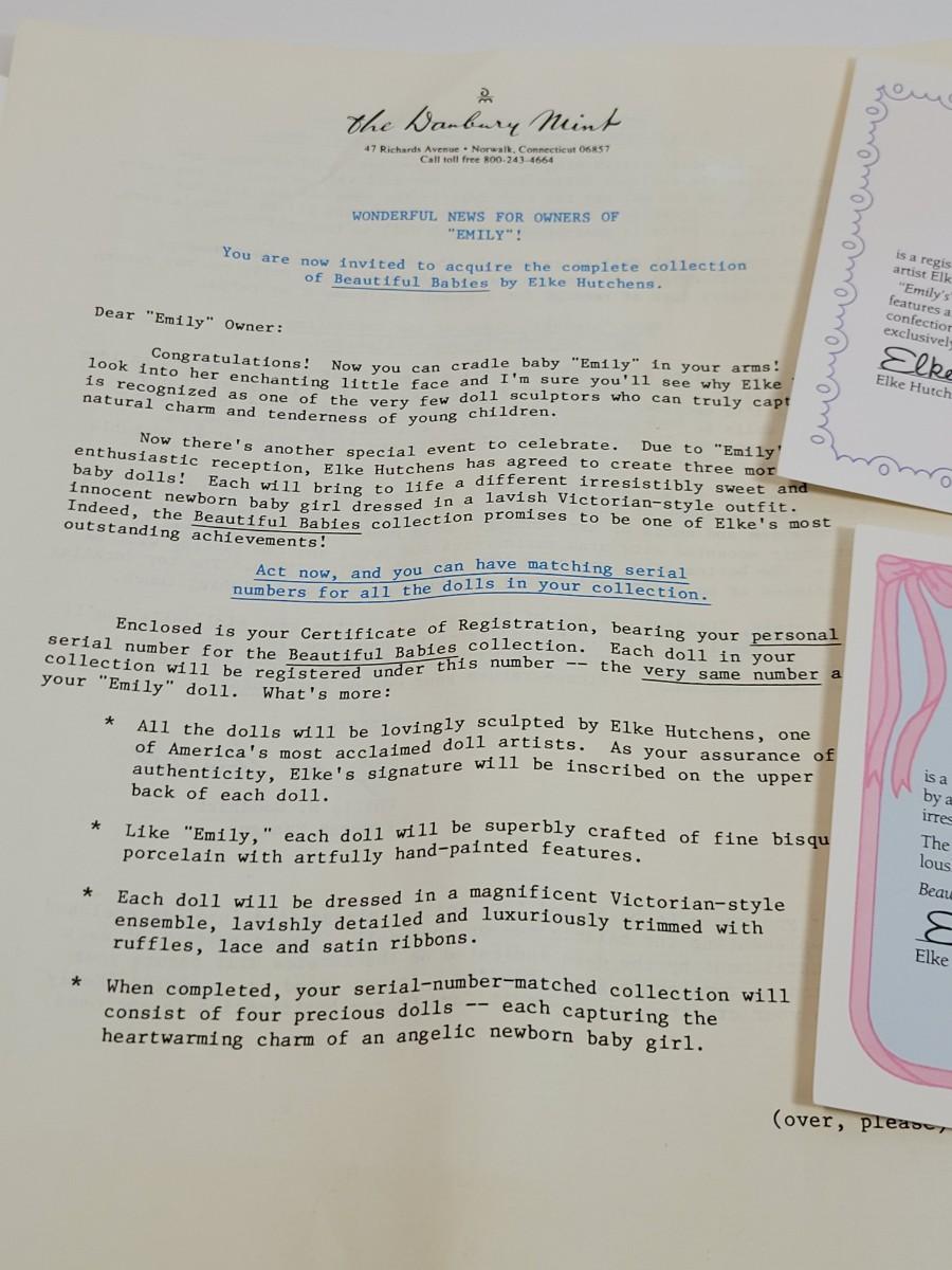 LOT6: Tiny Treasures Dolls: Sandee, Royal Heirloom Collection: Paige & Elke Hutchens Dolls: Emily