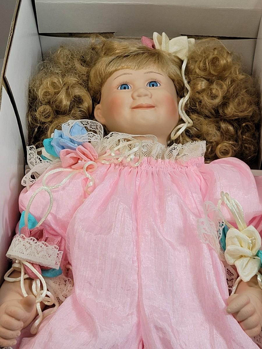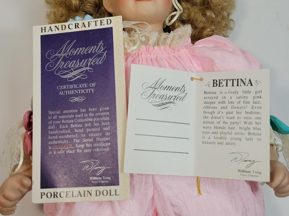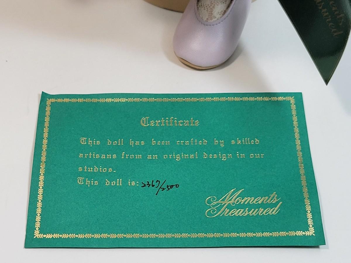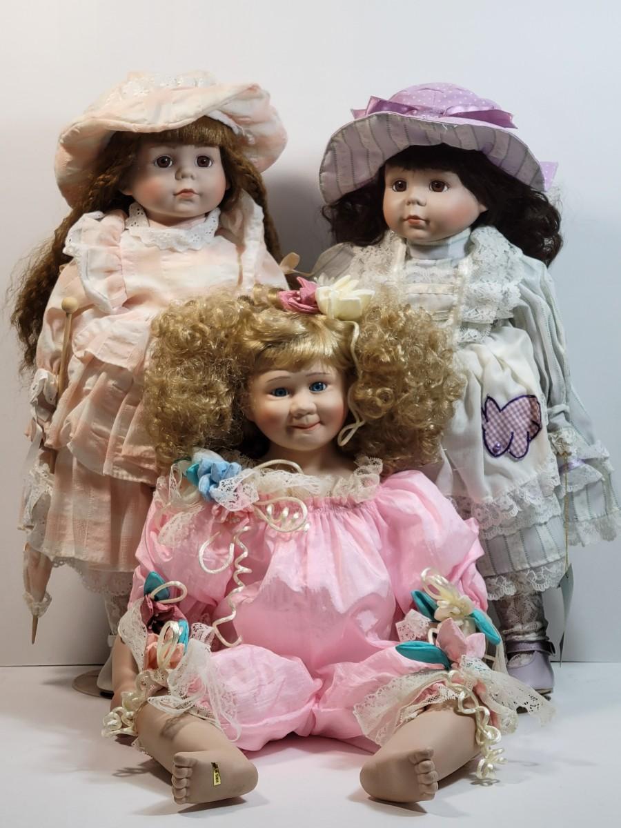 LOT7: Moments Treasured Limited Edition Dolls: Peach Outfit #1504/2500, Amanda (Purple Outfit) #2367/2500, & Bettina (pink outfit) #374/500