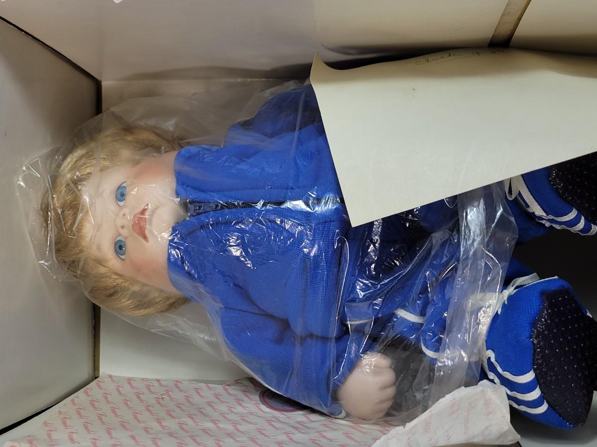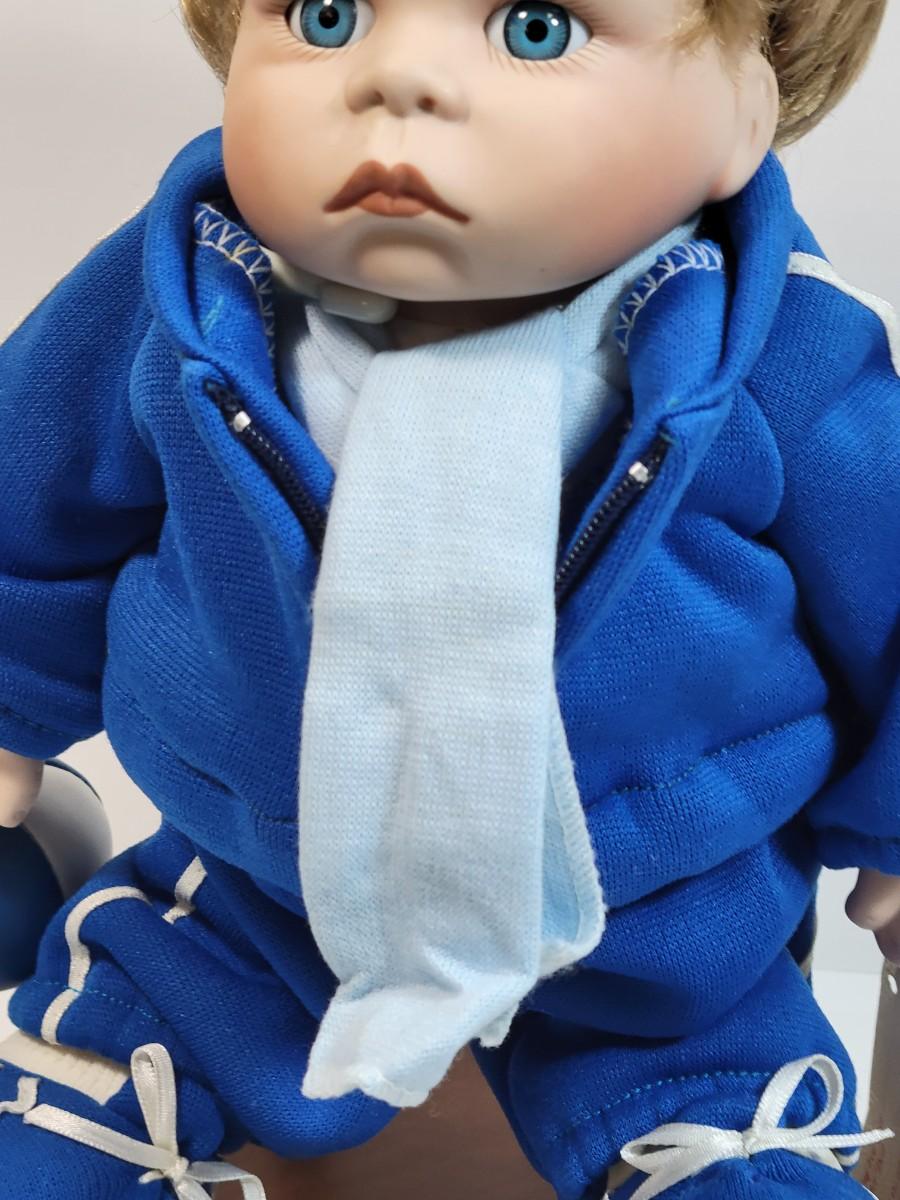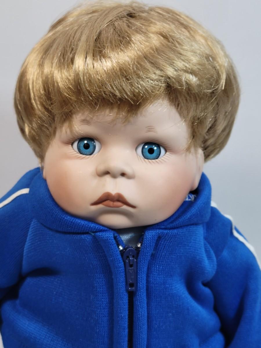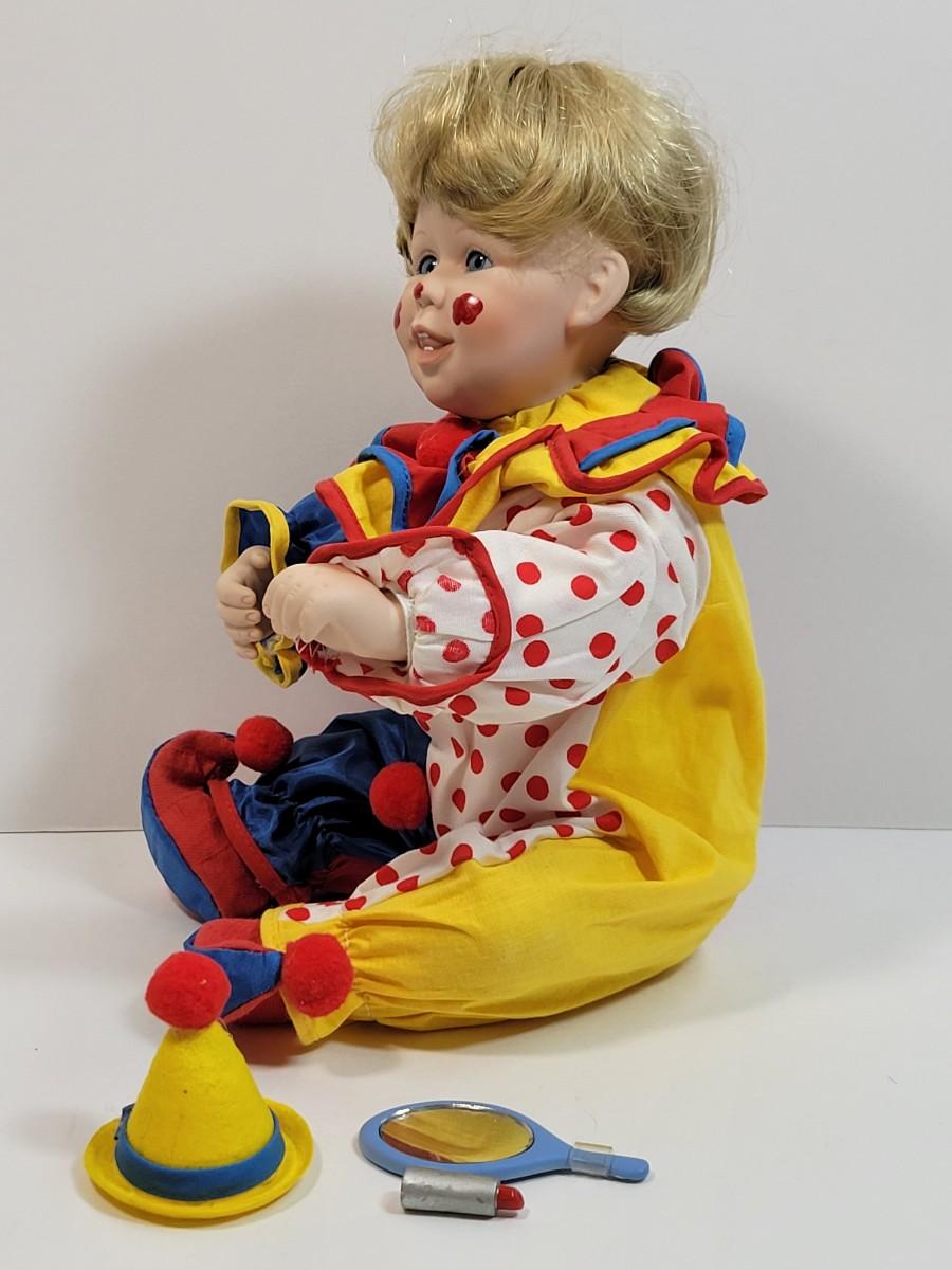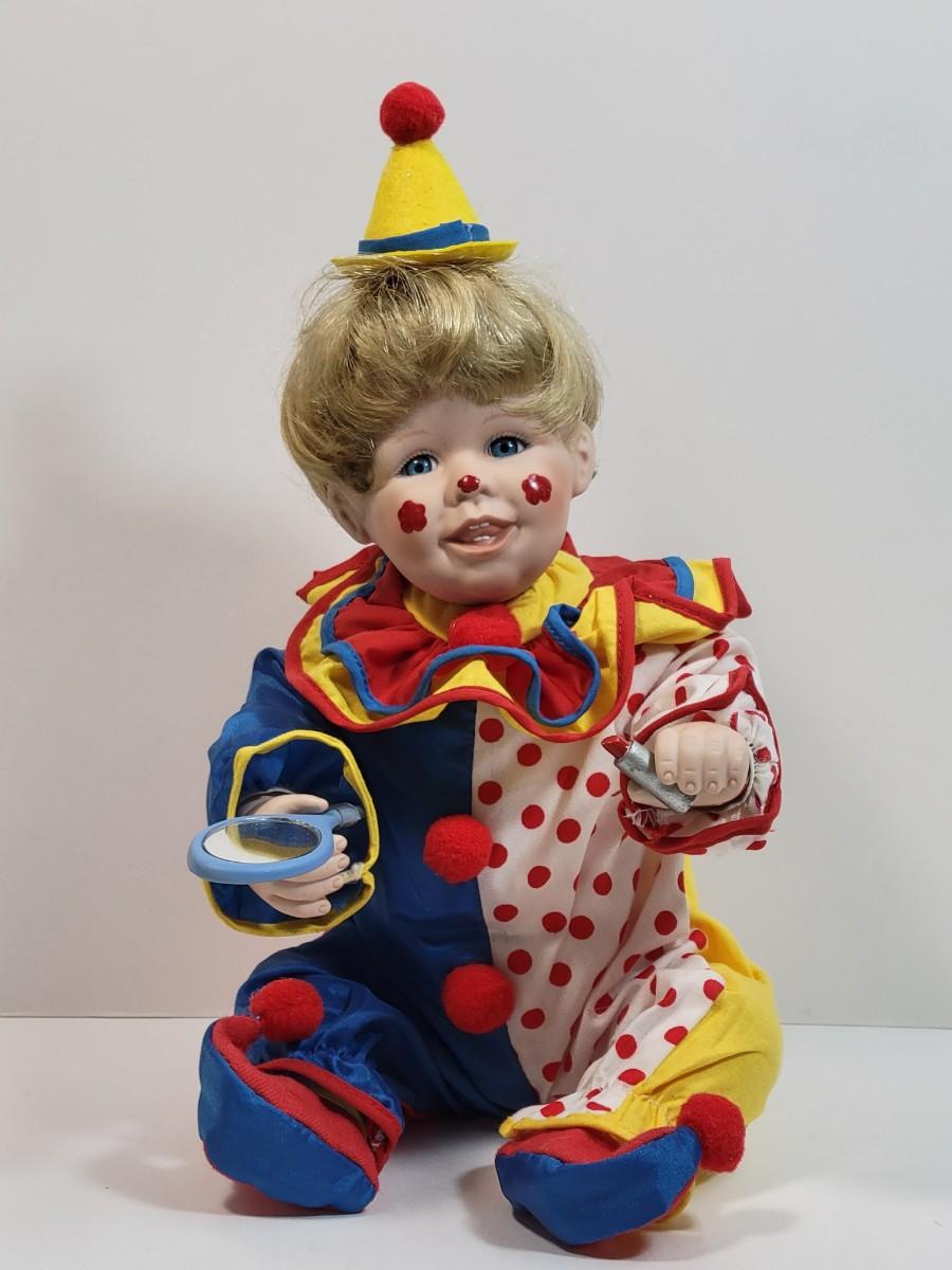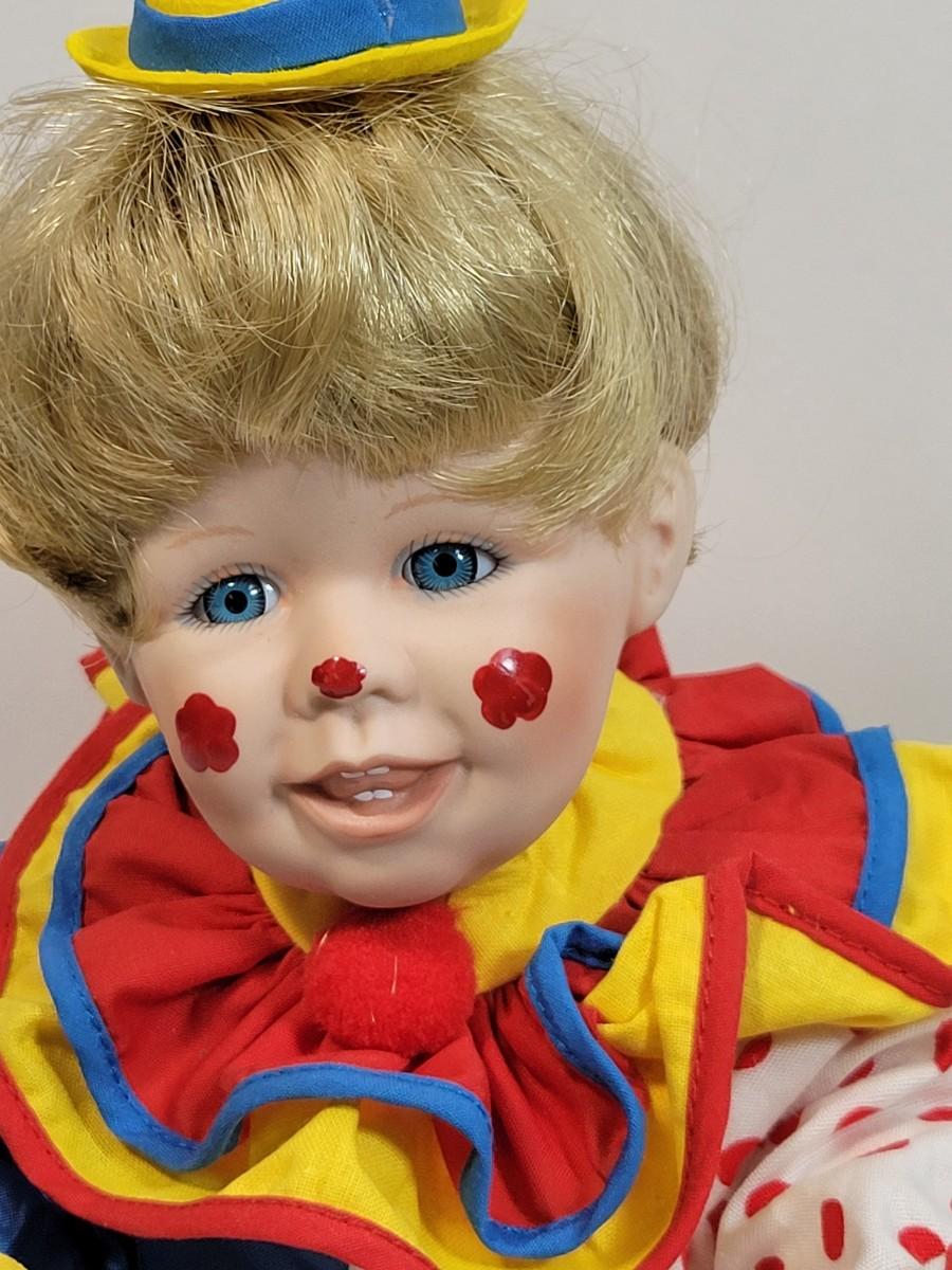 LOT8: Baby "The Clown" by Fayzah Spanos, Johnathan- by William Tung Collection, & Chuck by Camelot Handcrafted Dolls "Basket Ball Player"