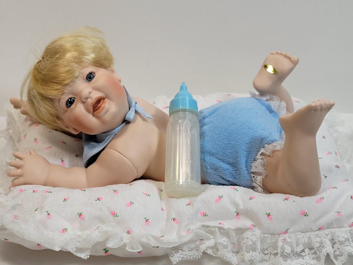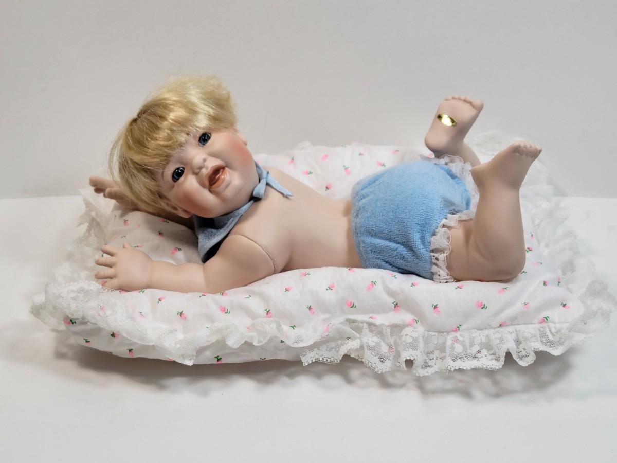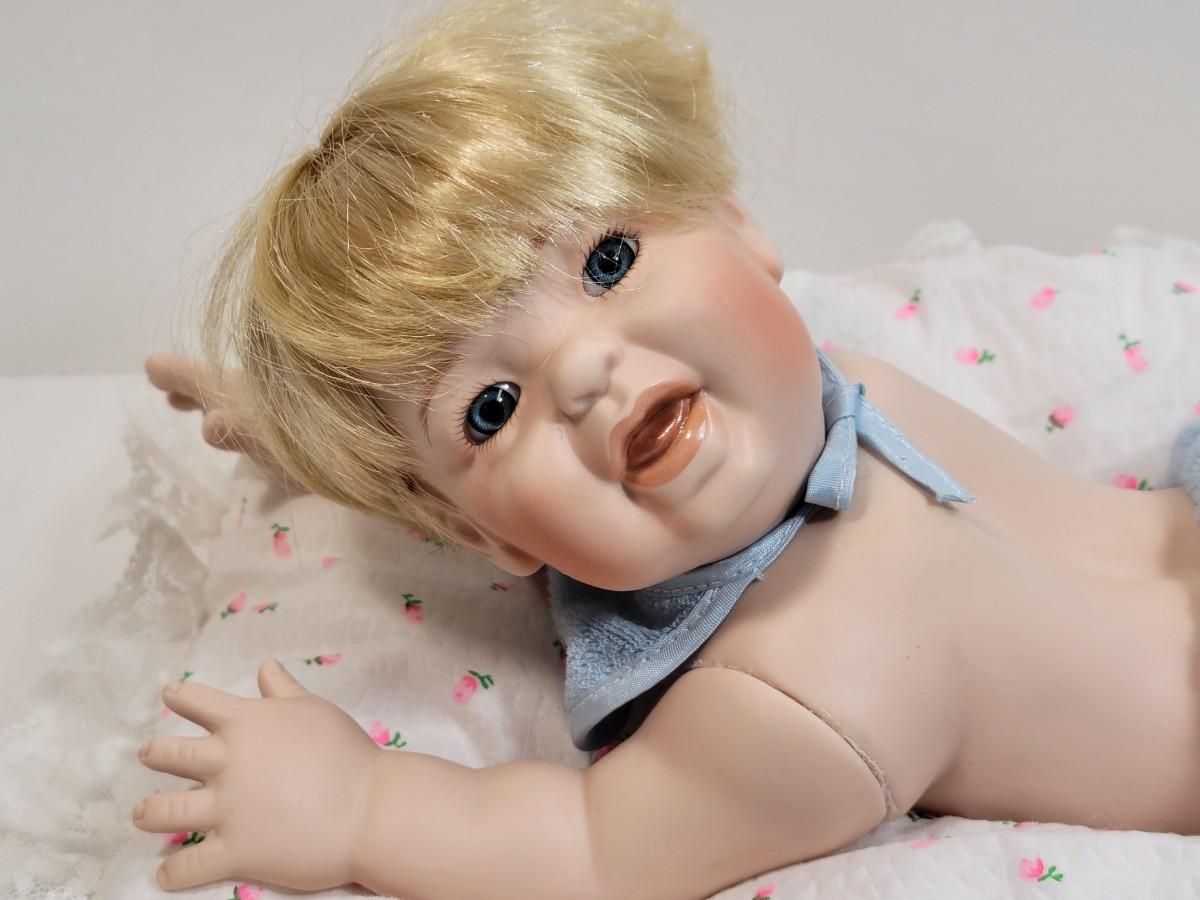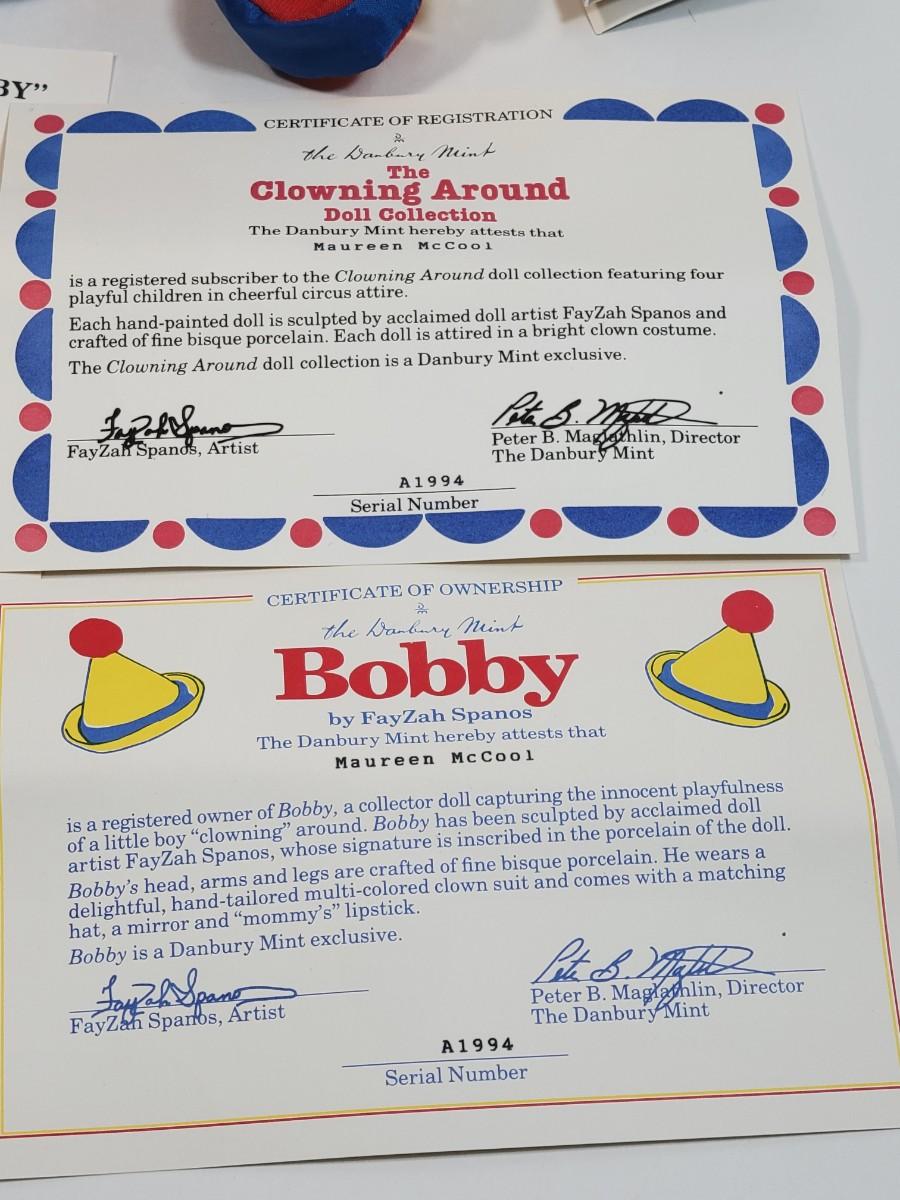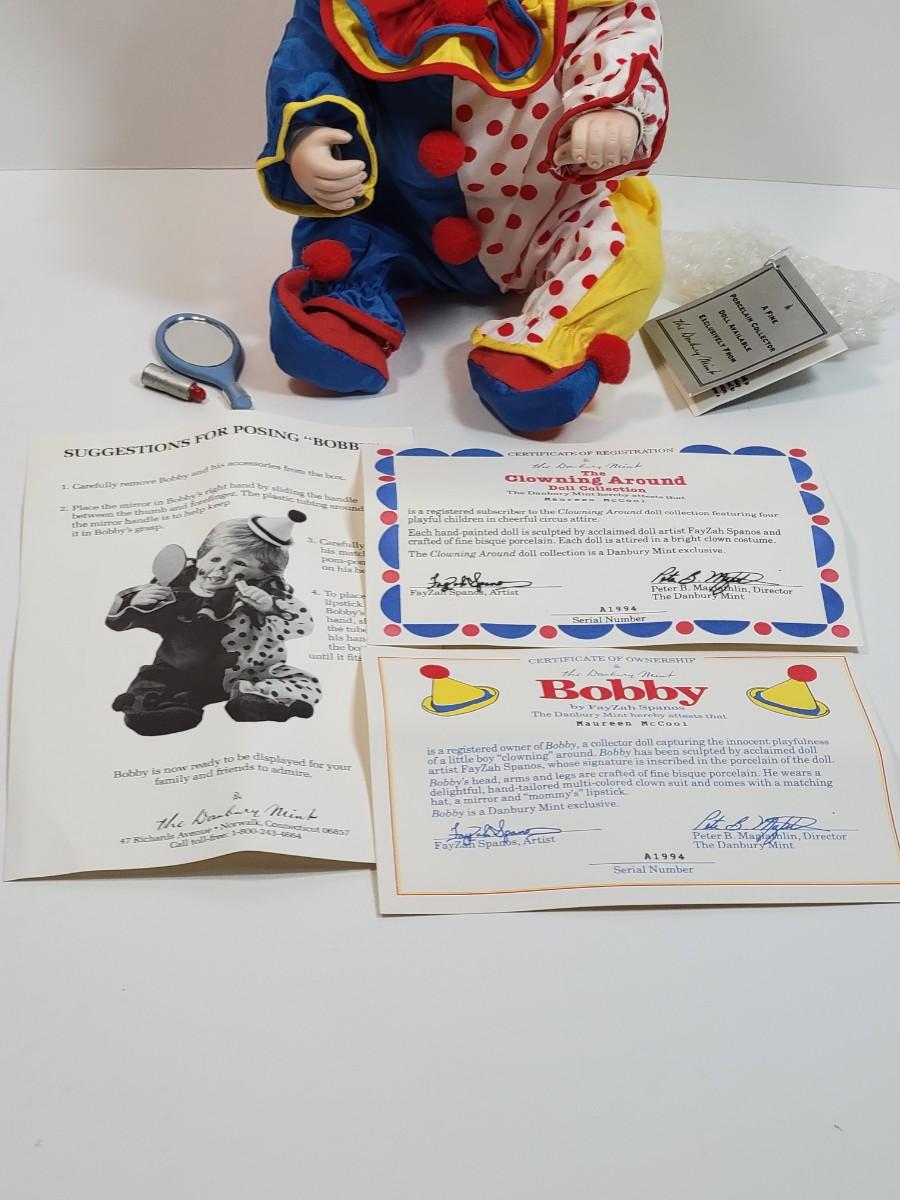 LOT8: Baby "The Clown" by Fayzah Spanos, Johnathan- by William Tung Collection, & Chuck by Camelot Handcrafted Dolls "Basket Ball Player"