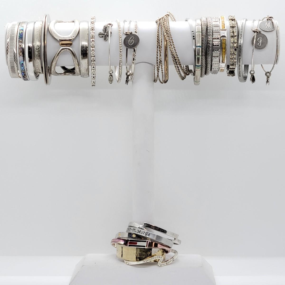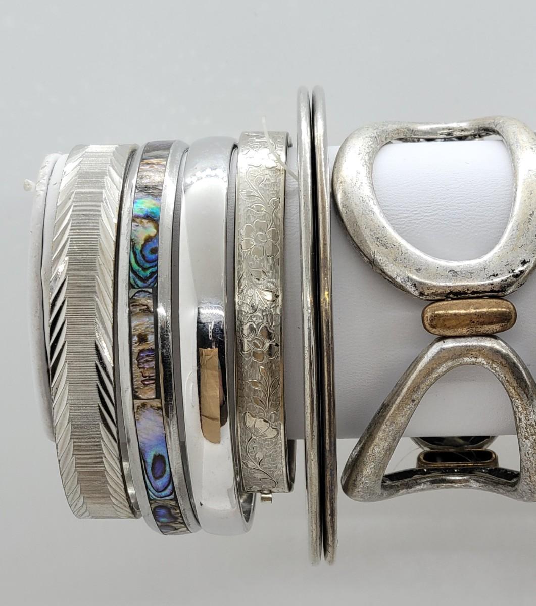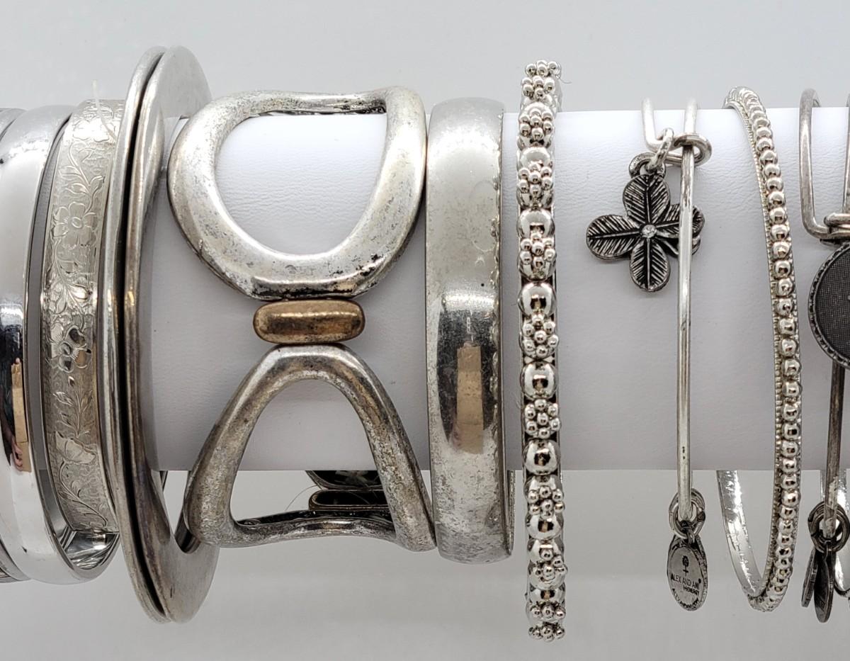 LOT17: Silver Colored Bangles & Bracelets at various sizes