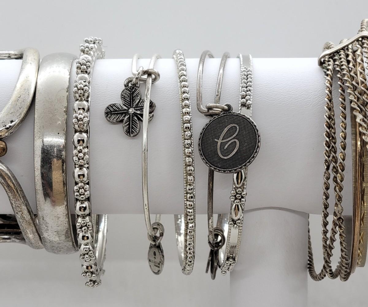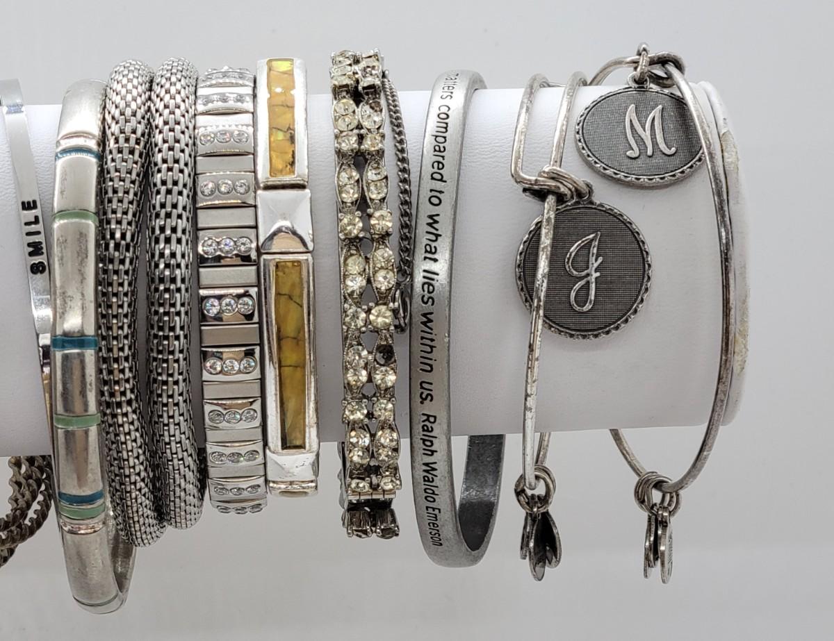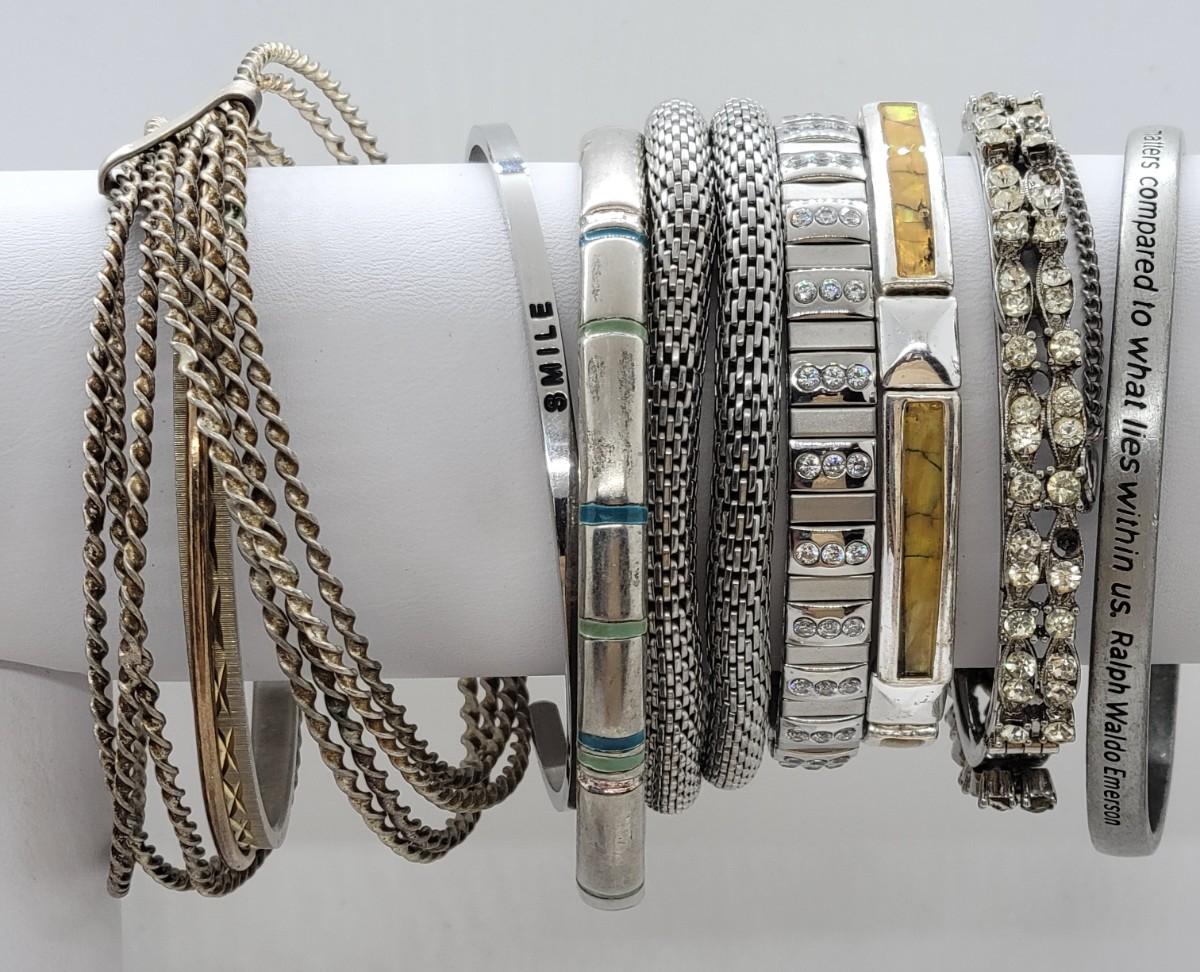 LOT17: Silver Colored Bangles & Bracelets at various sizes