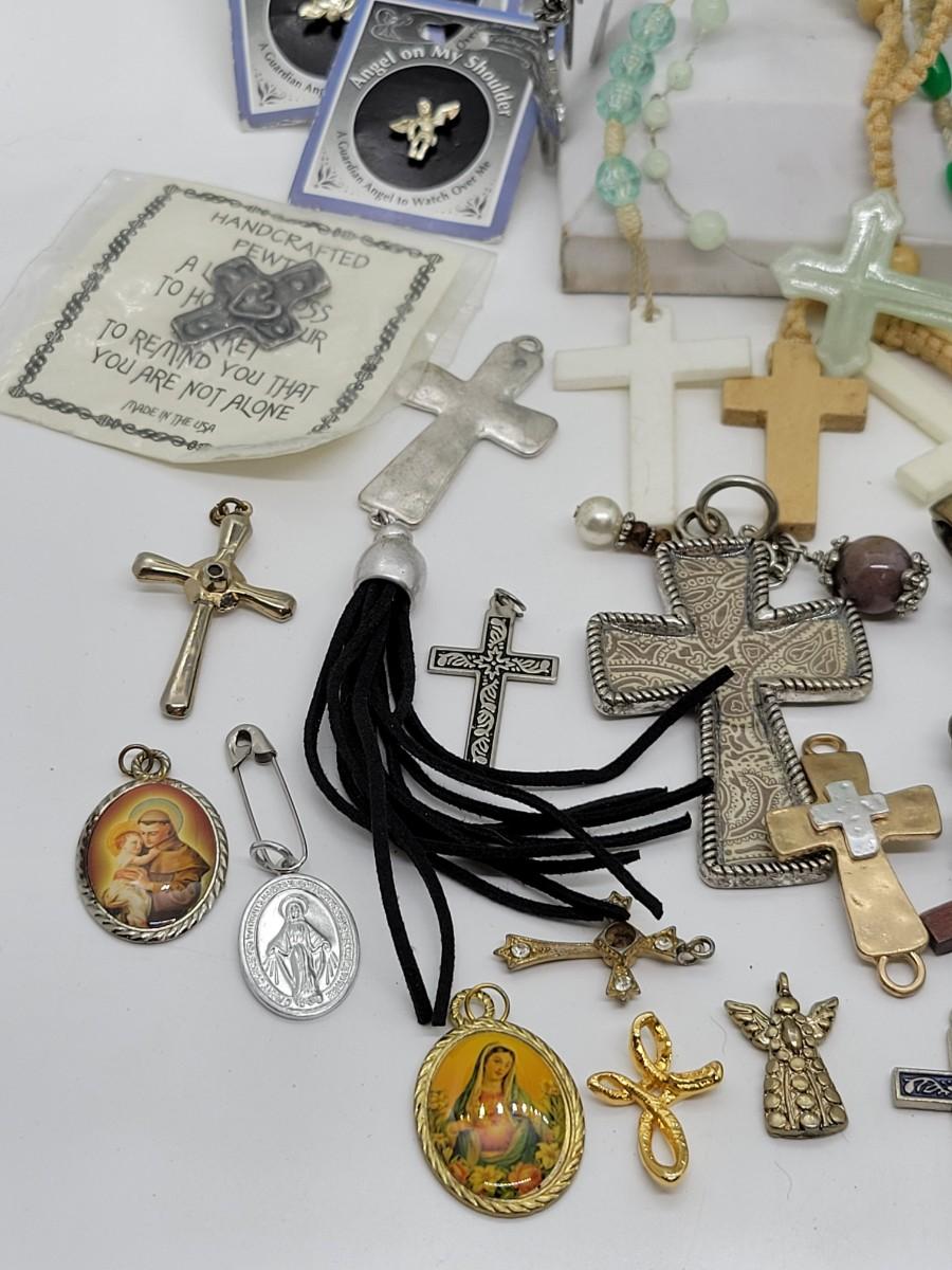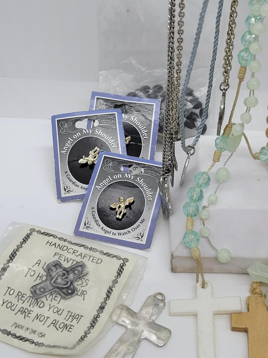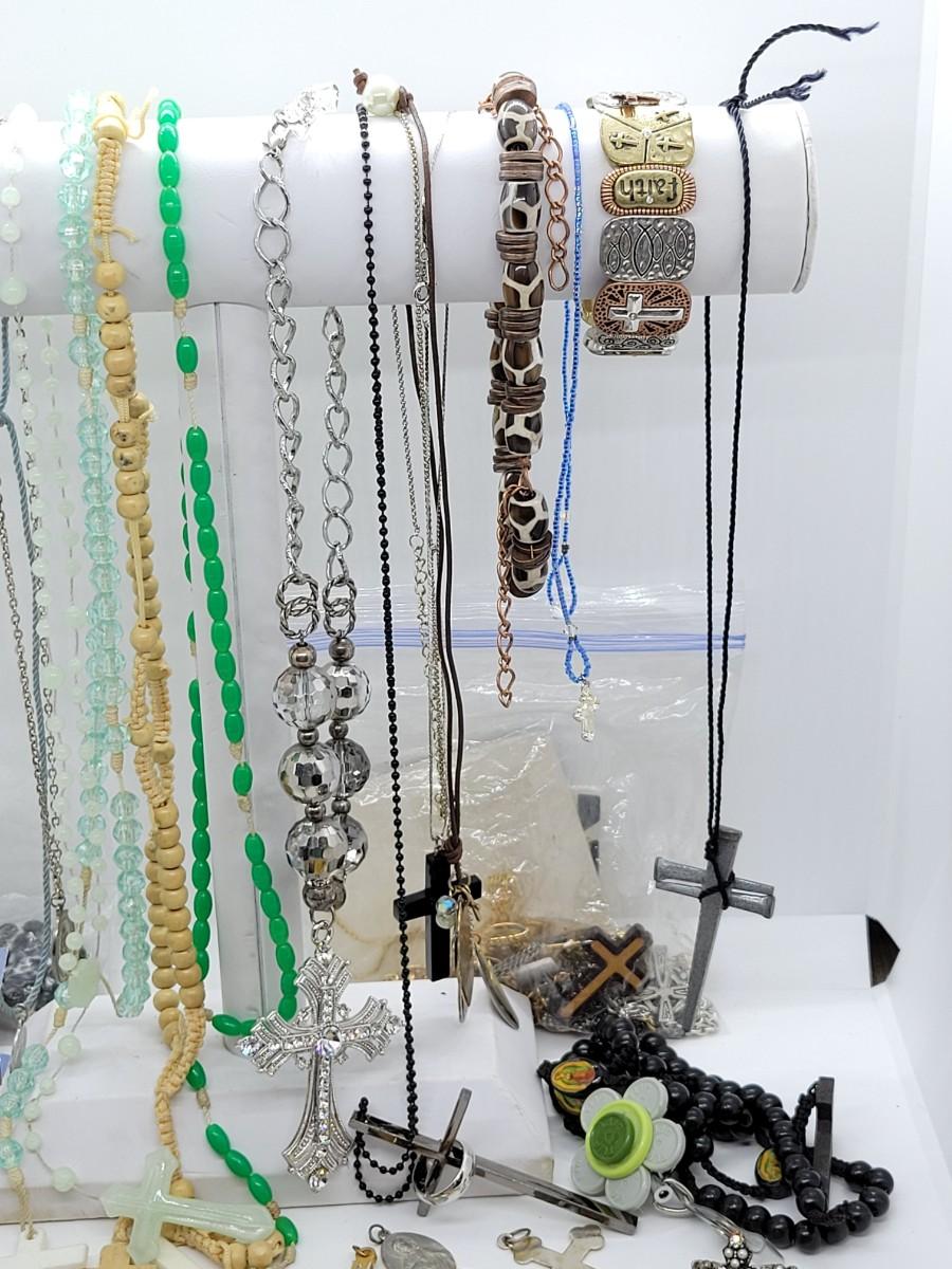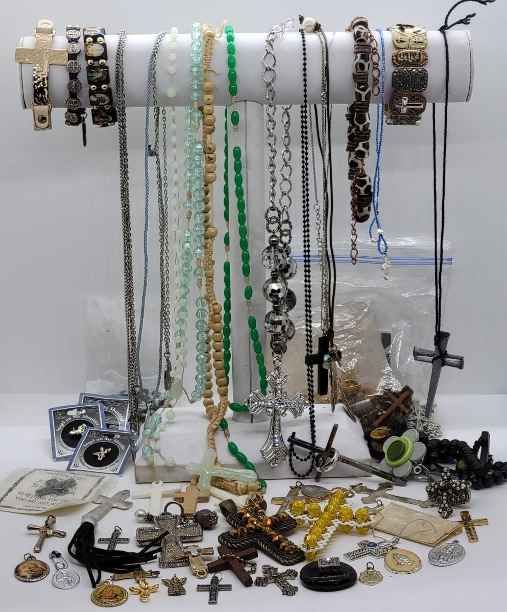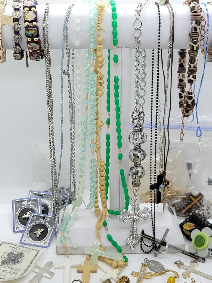 LOT21: Large Collection of Religious Necklaces, Pendants, Pins, Ring, & Bracelets