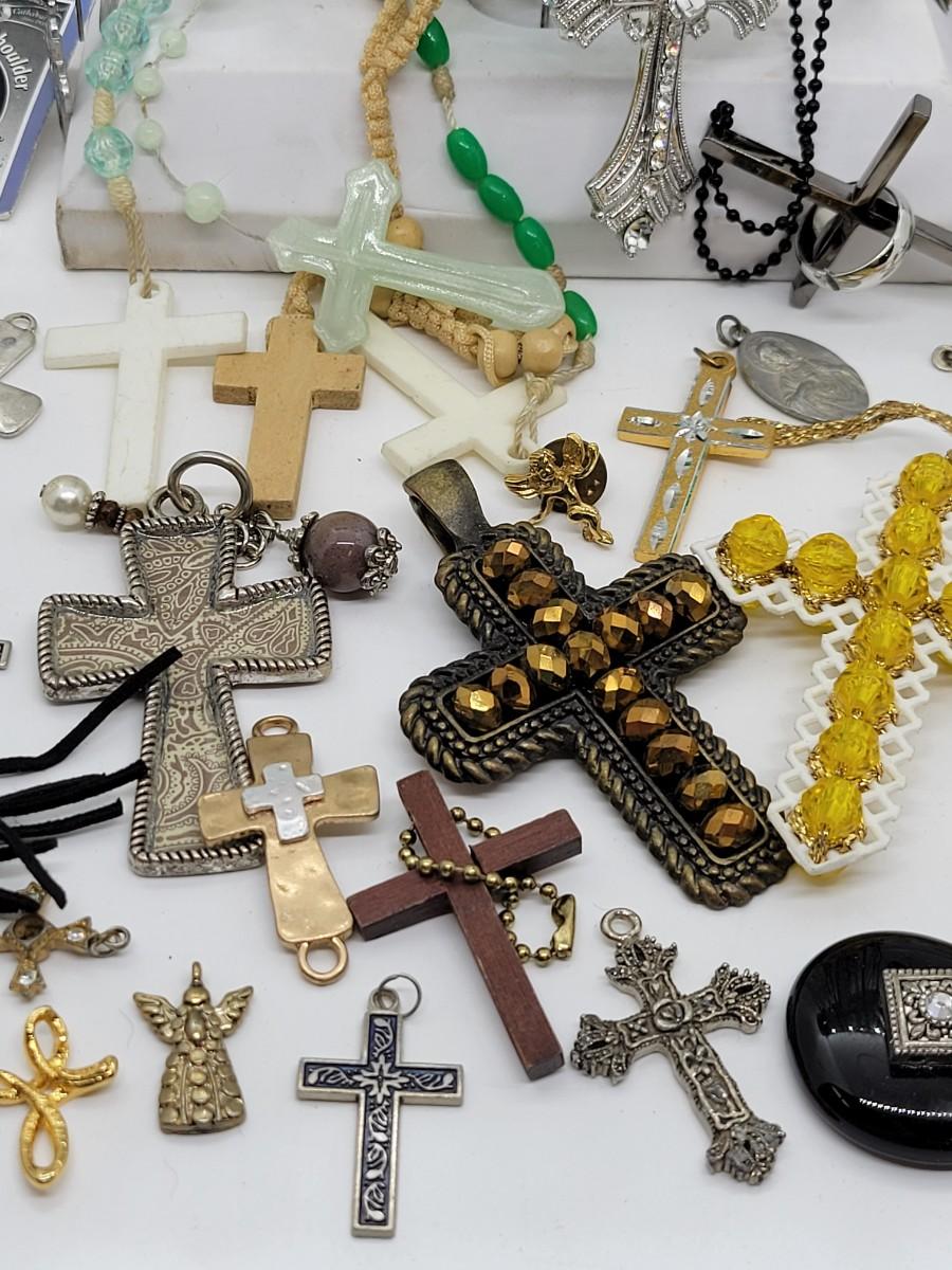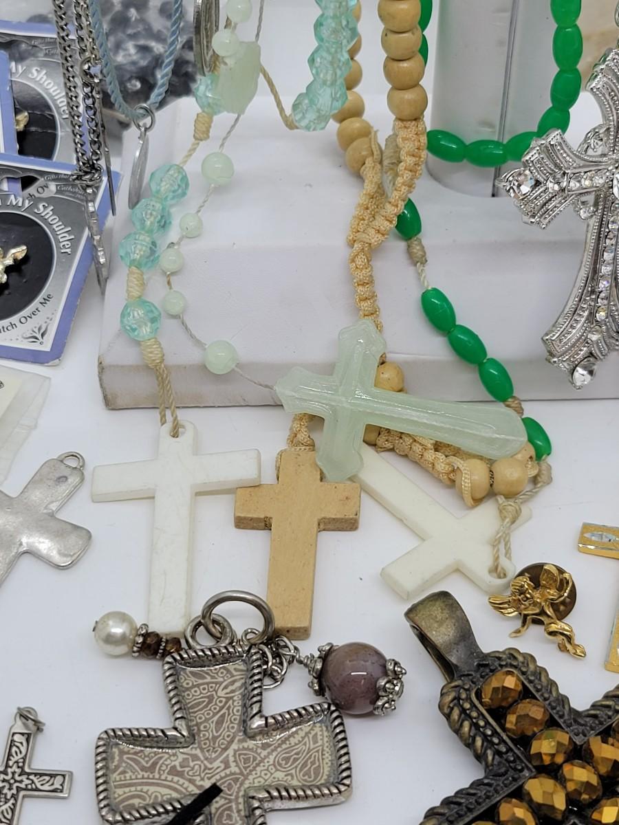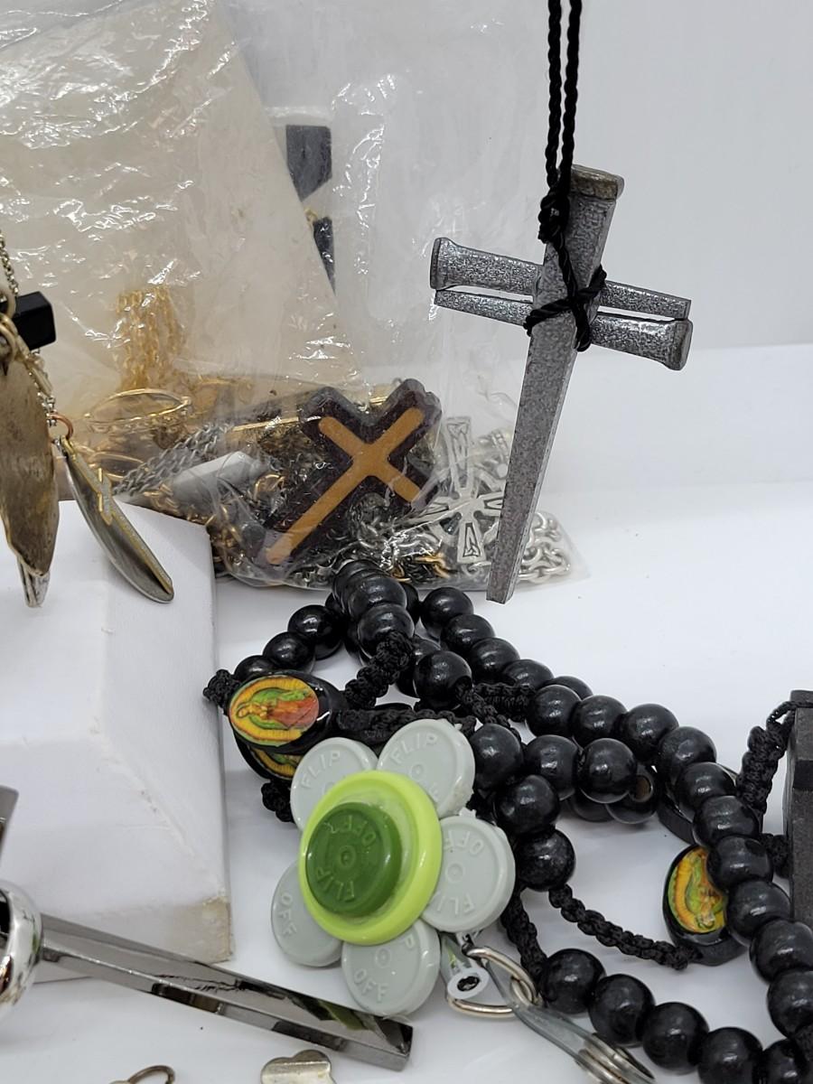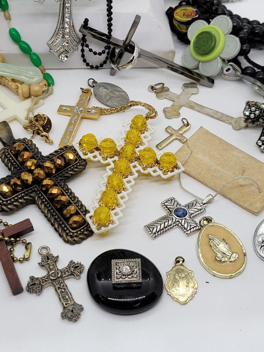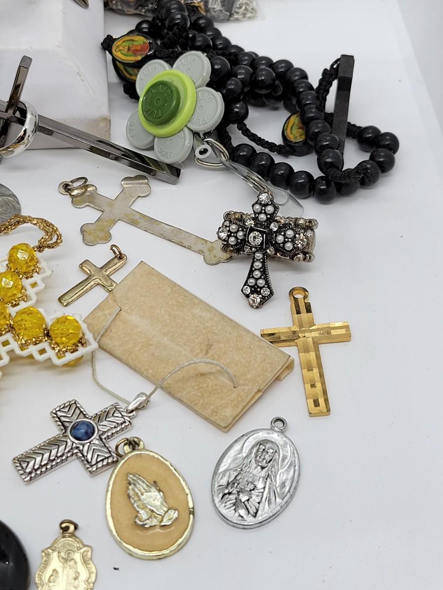 LOT21: Large Collection of Religious Necklaces, Pendants, Pins, Ring, & Bracelets