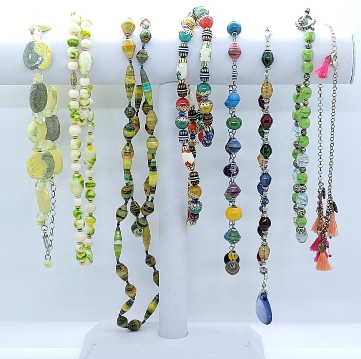LOT33: Green & Multi-colored Necklaces at various lengths