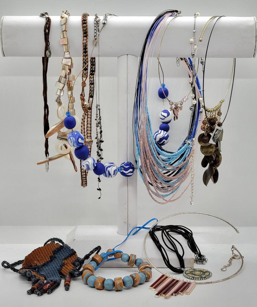 LOT36: Blue/ Brown Beaded Necklaces