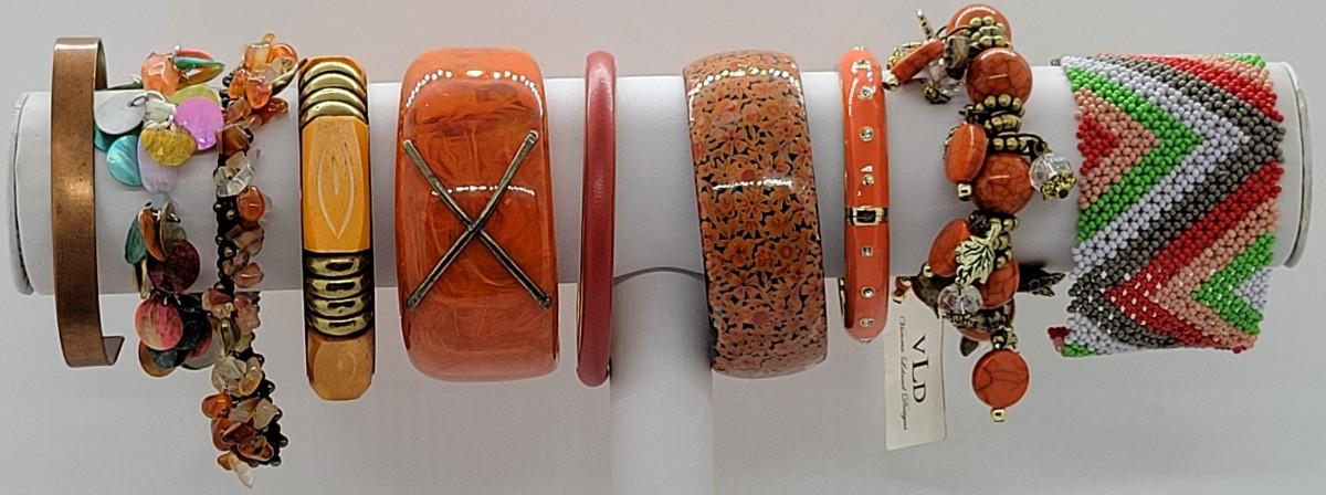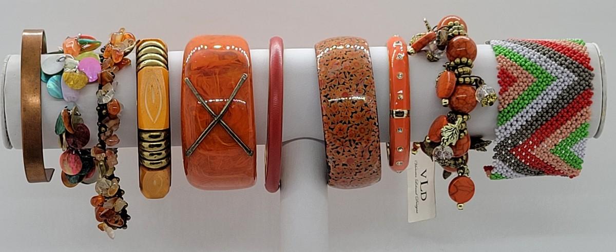 LOT63: Orange Colored Bracelets/ Bangles at various sizes
