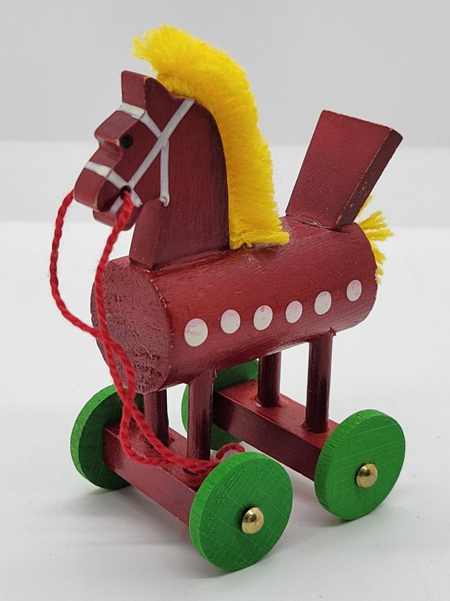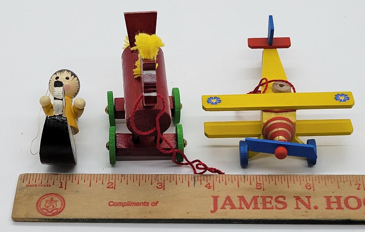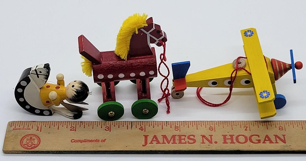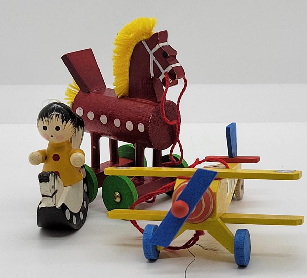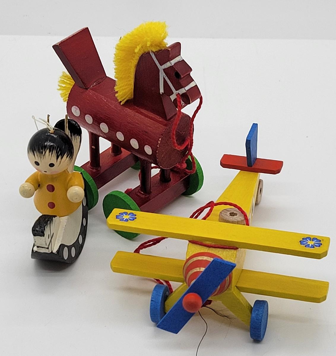 LOT65: Steinbach Wooden Airplane Ornament, Vintage Horse Ornament & Vintage wooden Angel on horse ornament: