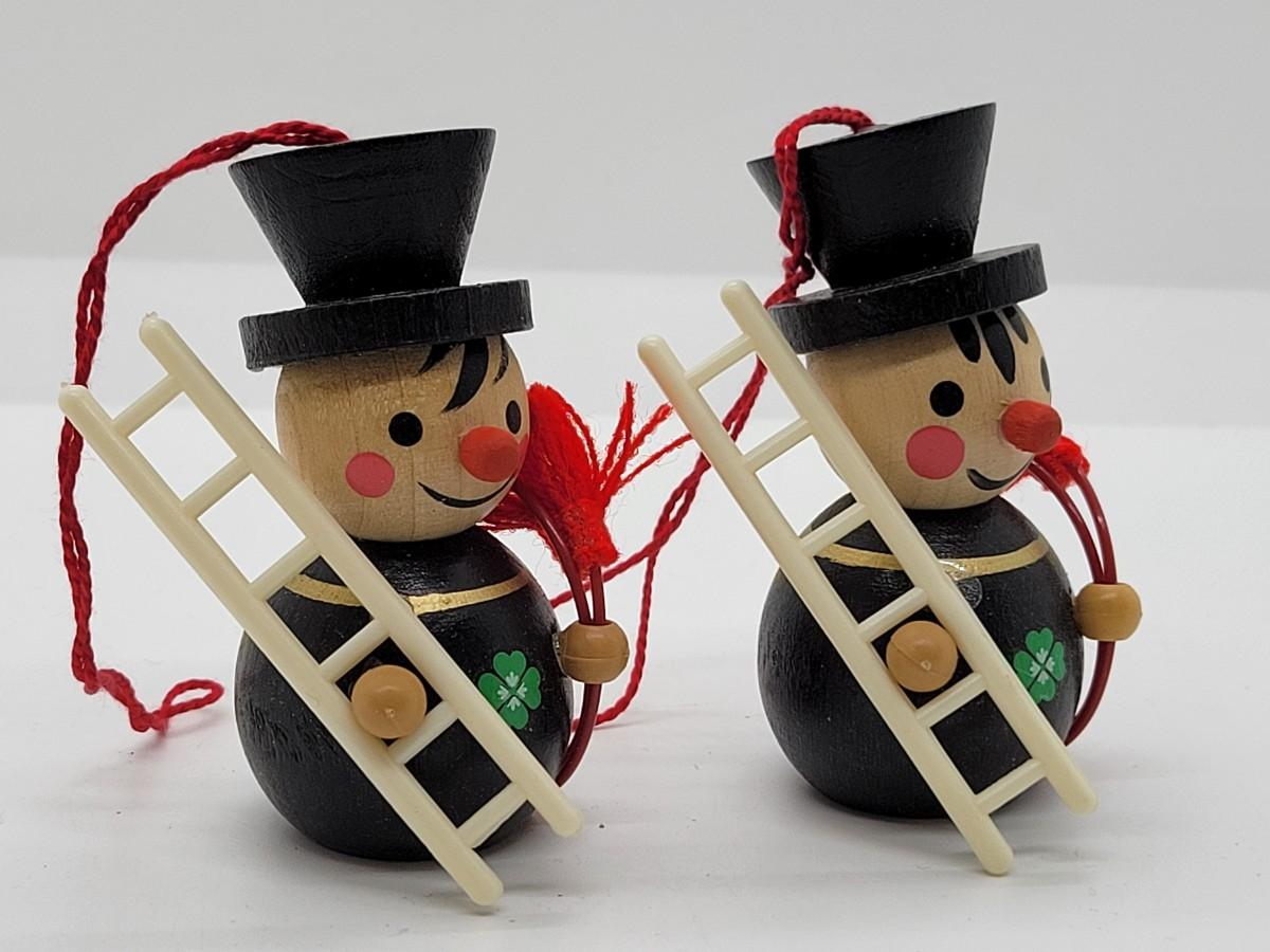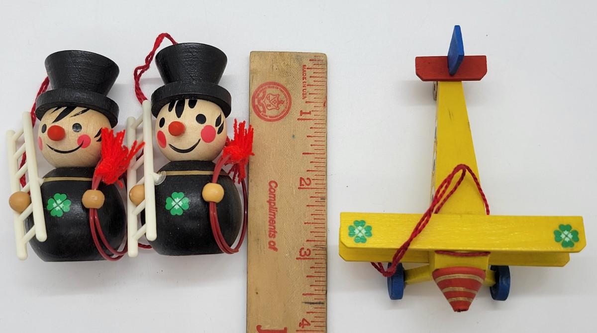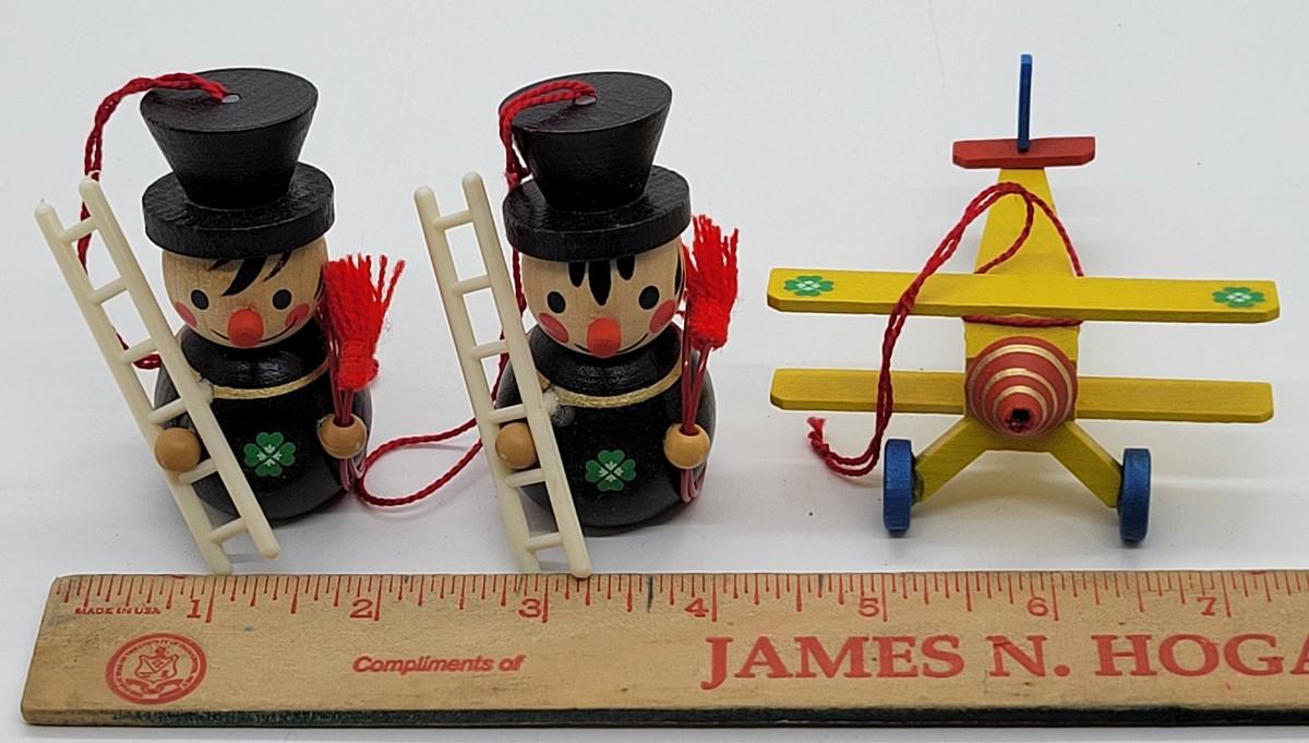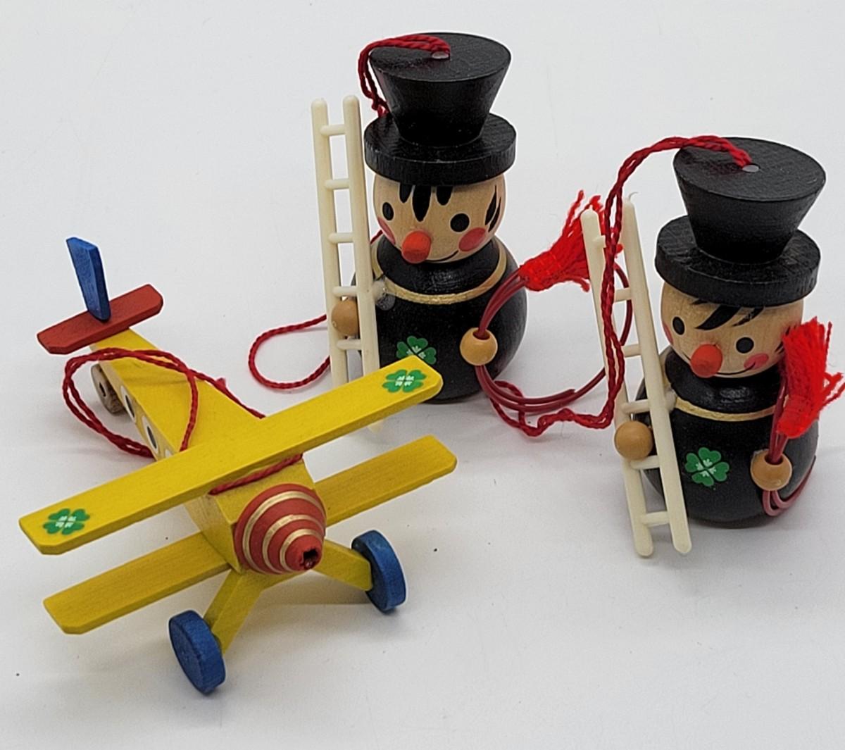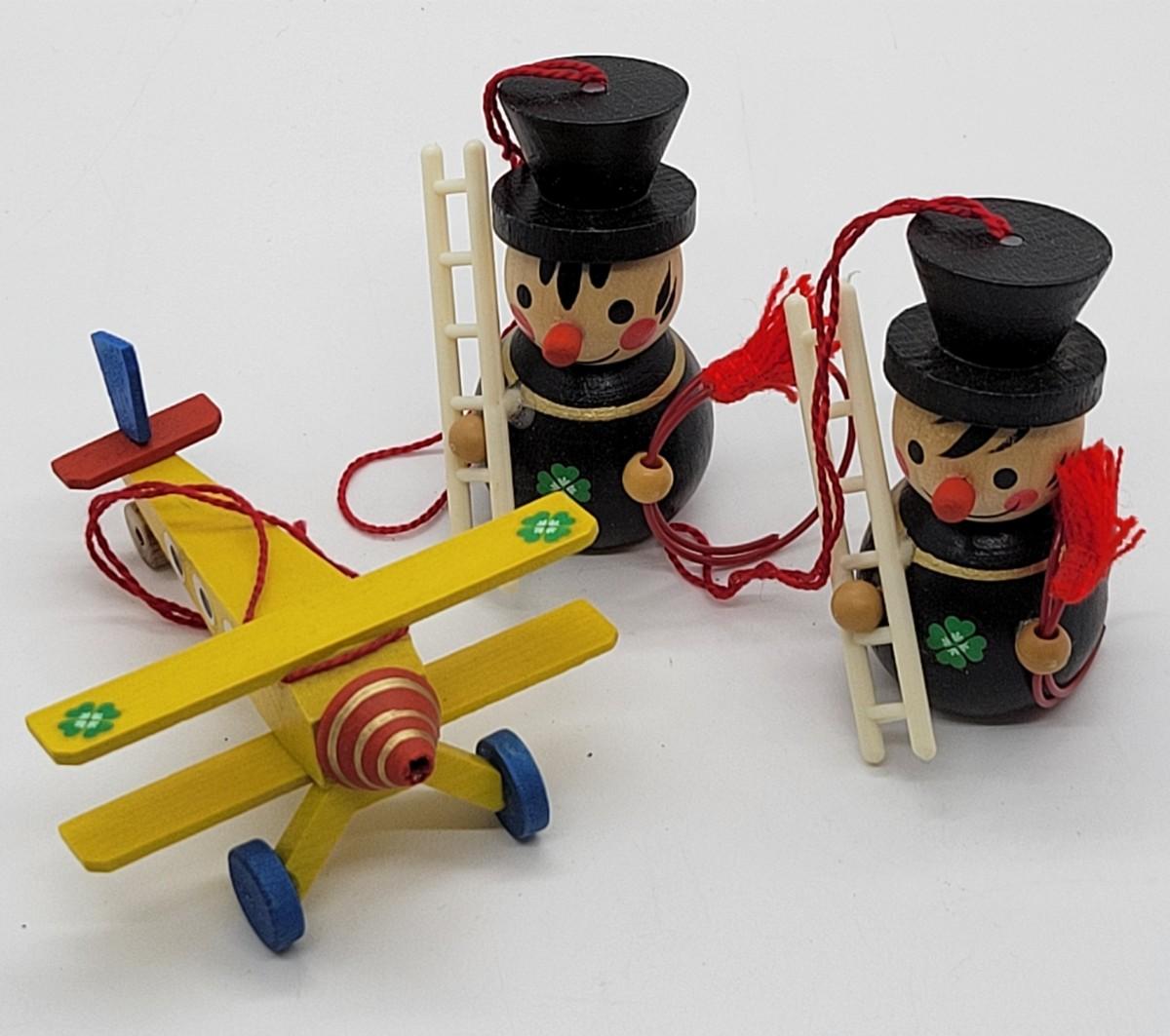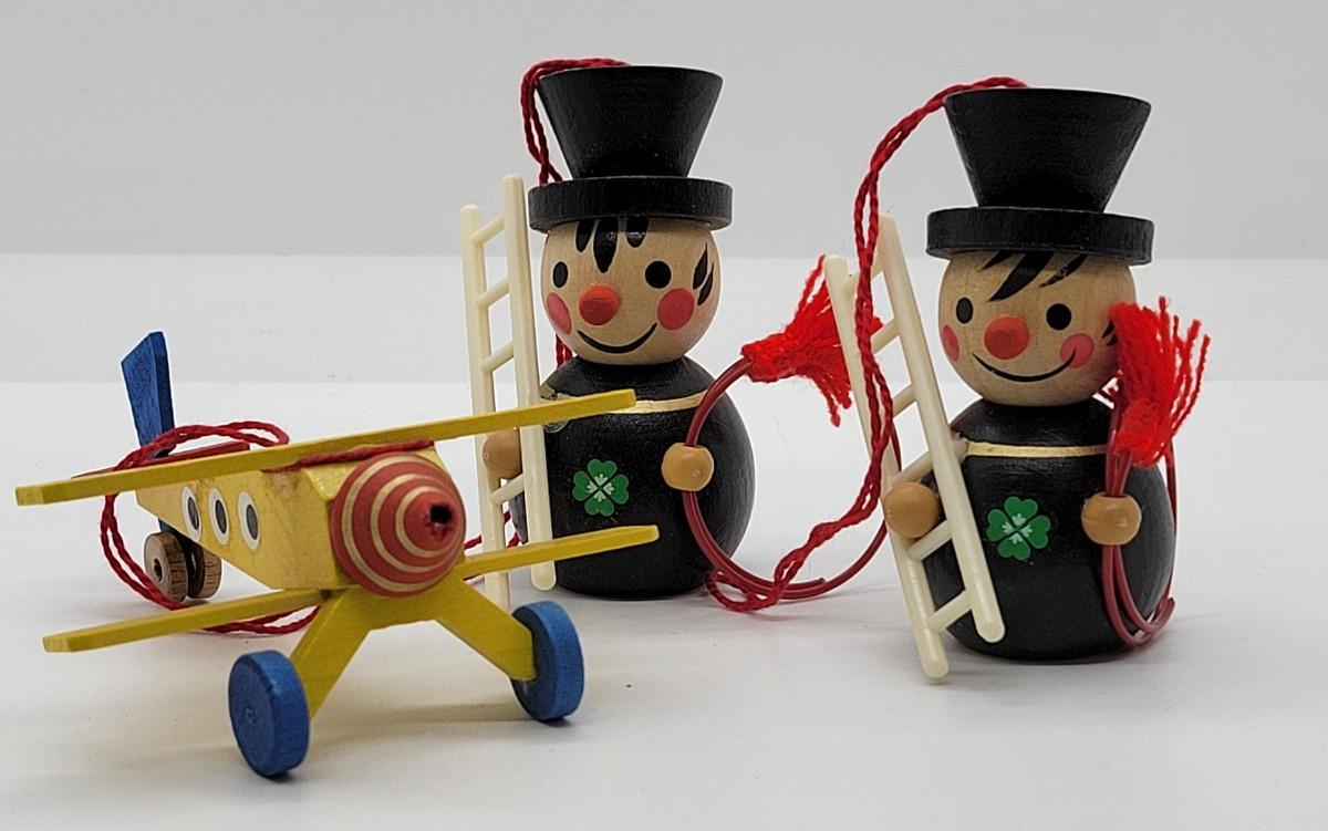 LOT66: Steinbach Wooden Airplane Ornament (missing propeller) 2 Steinbach Wooden Men with top hats ornaments