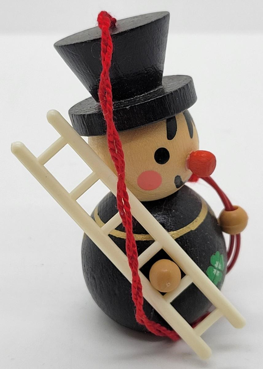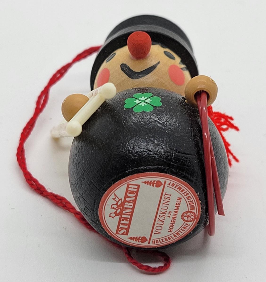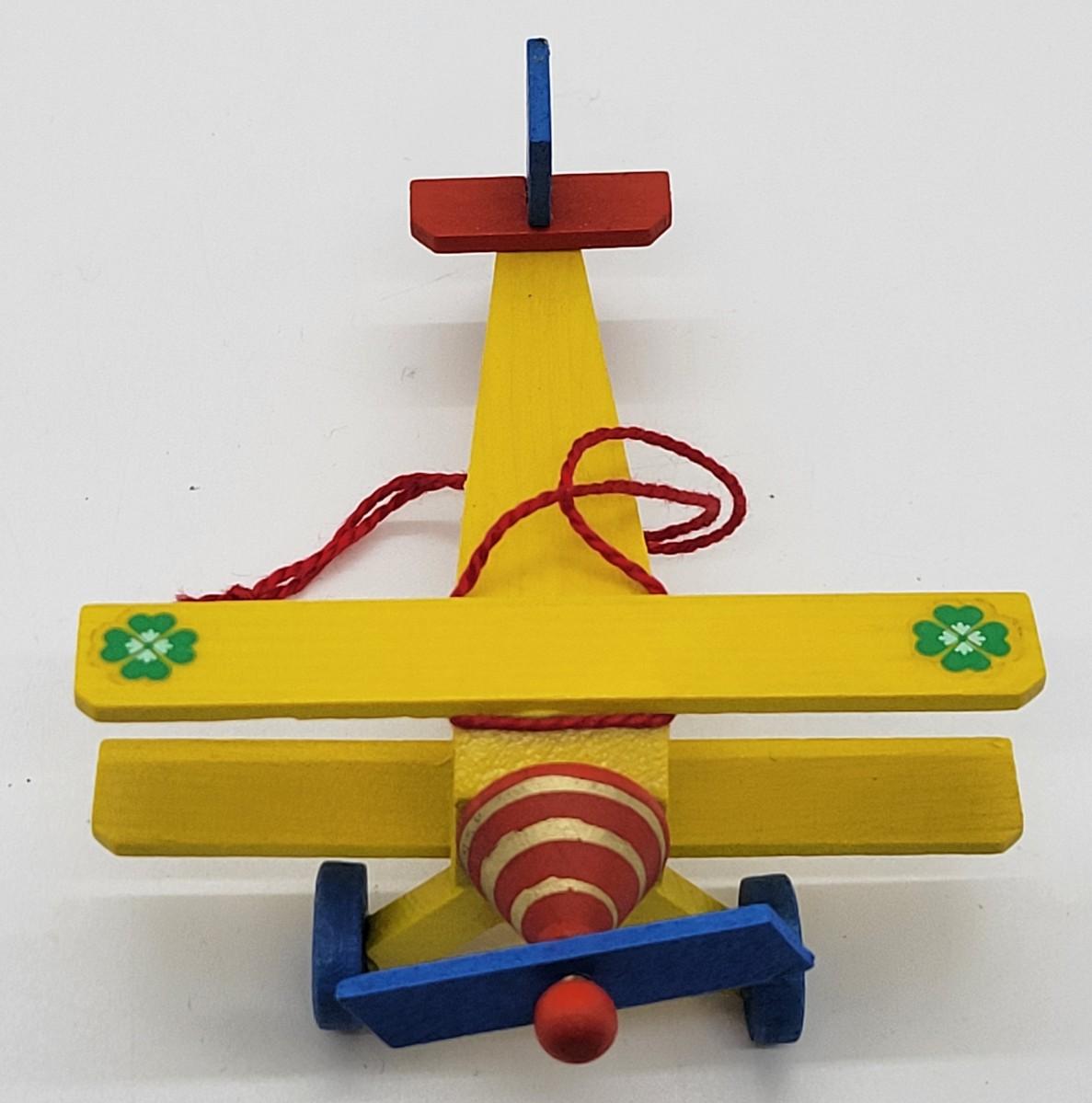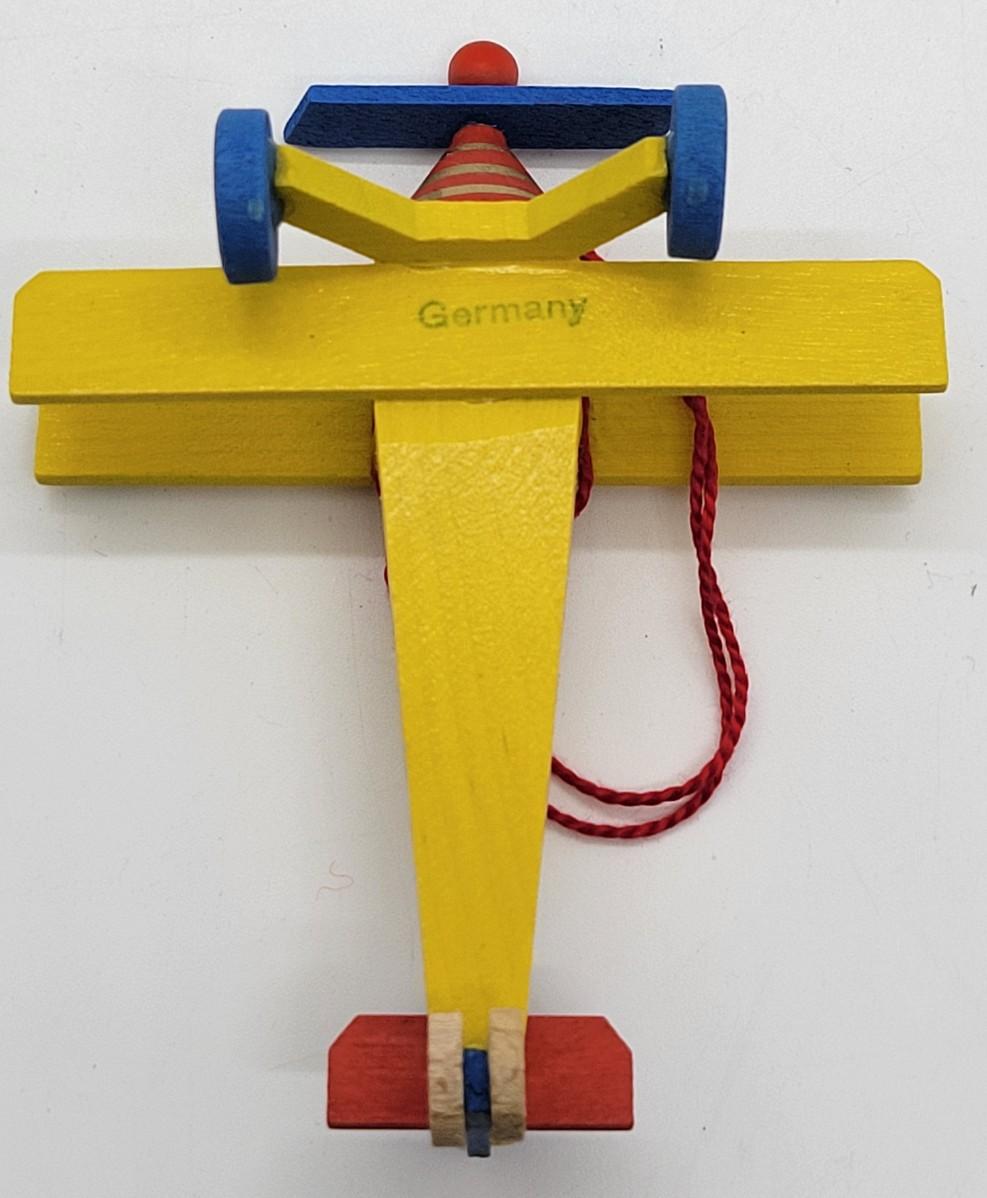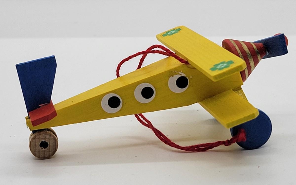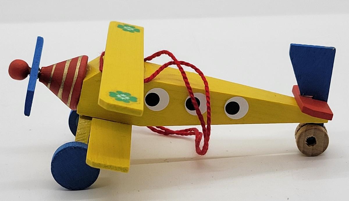 LOT67: Steinbach Wooden Airplane, Steinbach Wooden man with top hat ornament, Vintage wooden ornaments: snowman, Santa, & ball