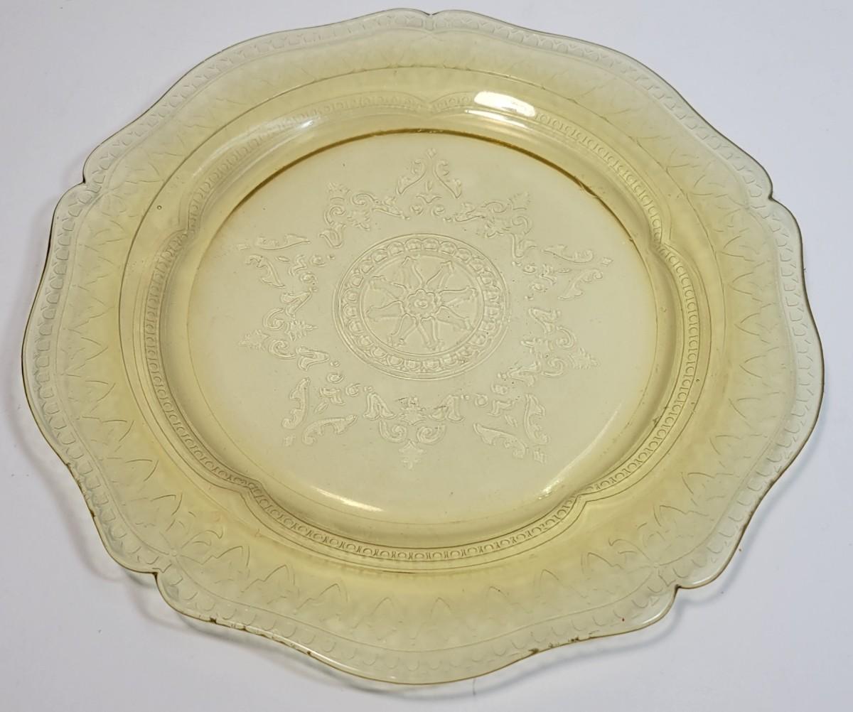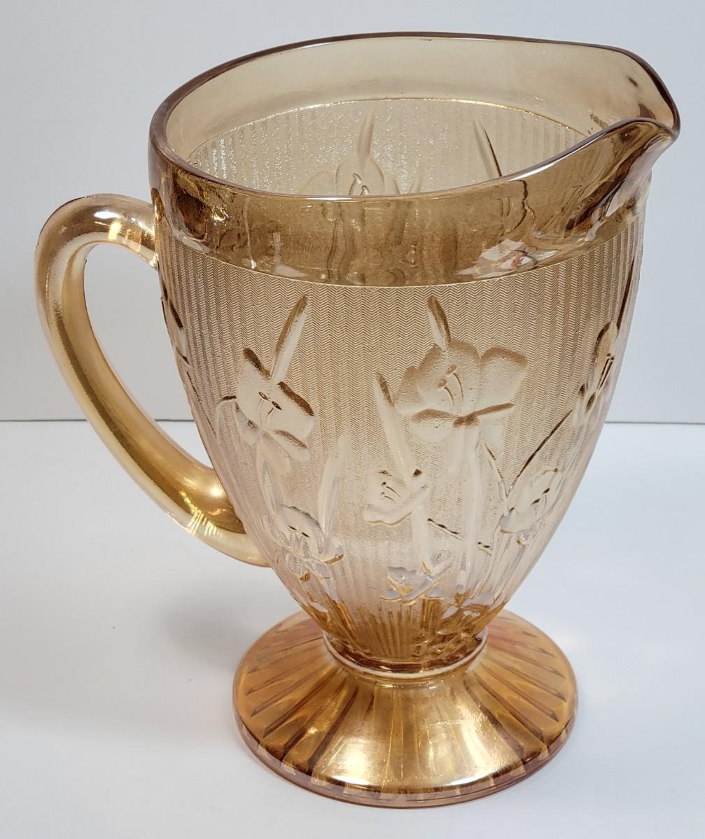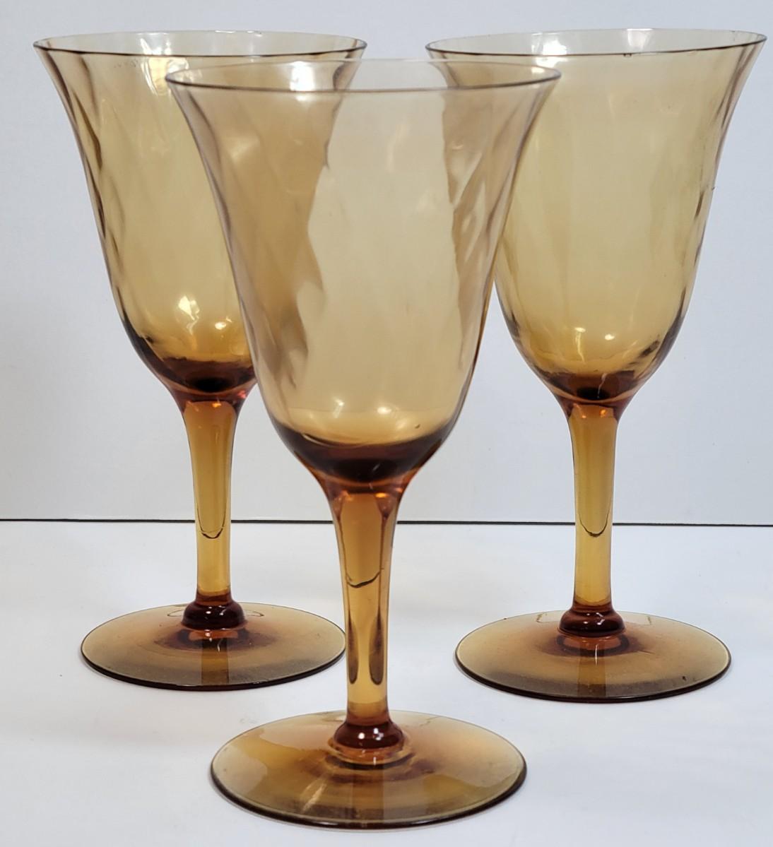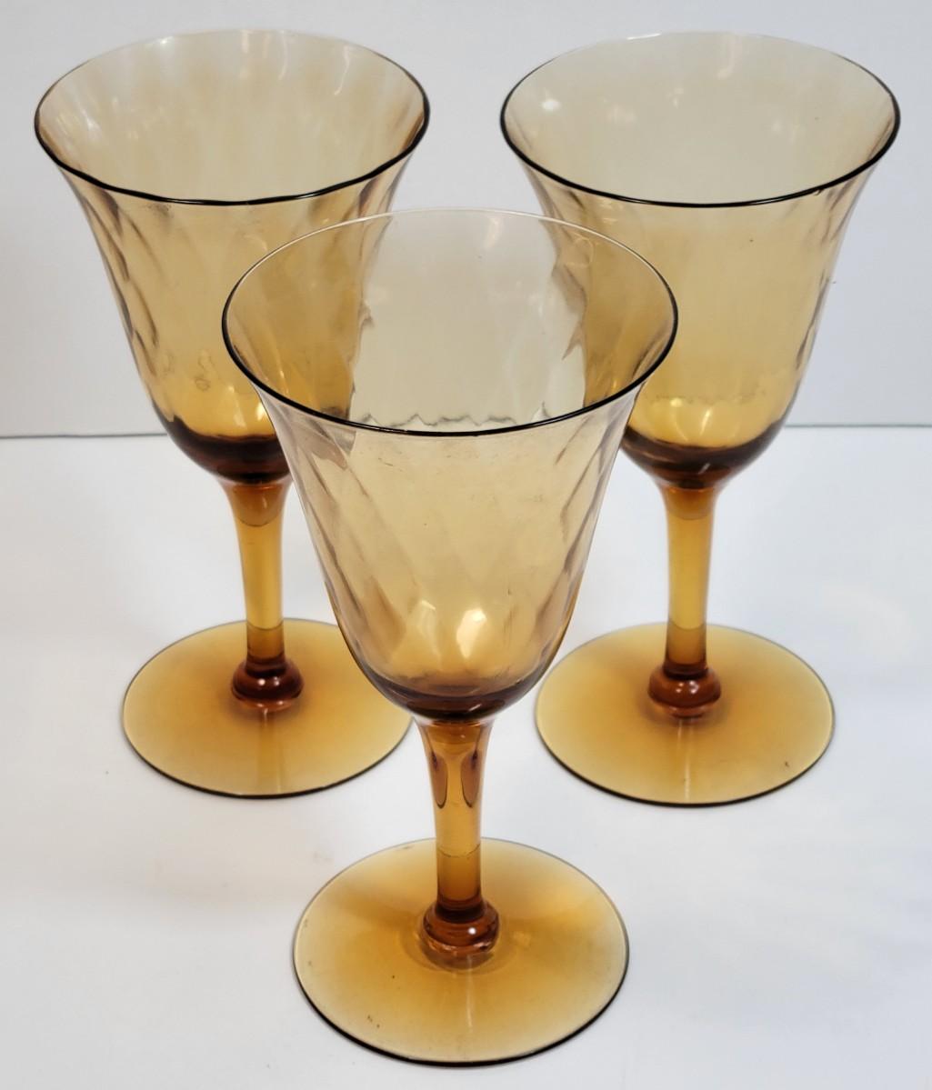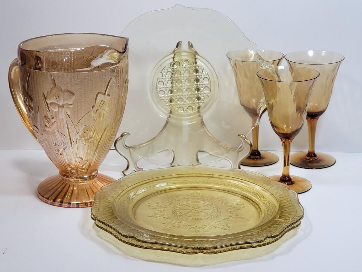 LOT93: Amber Glass Plates, Pitcher, Wine glasses, & Serveware