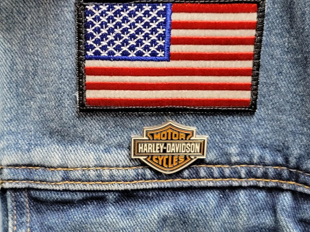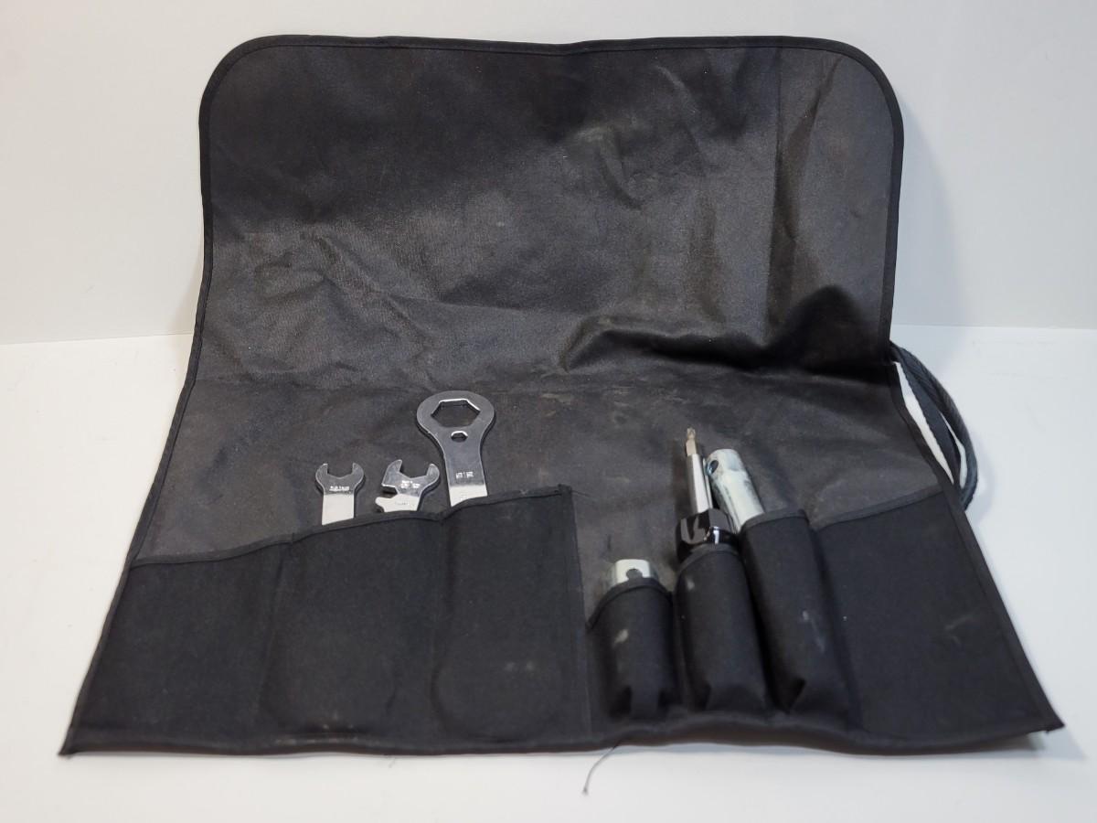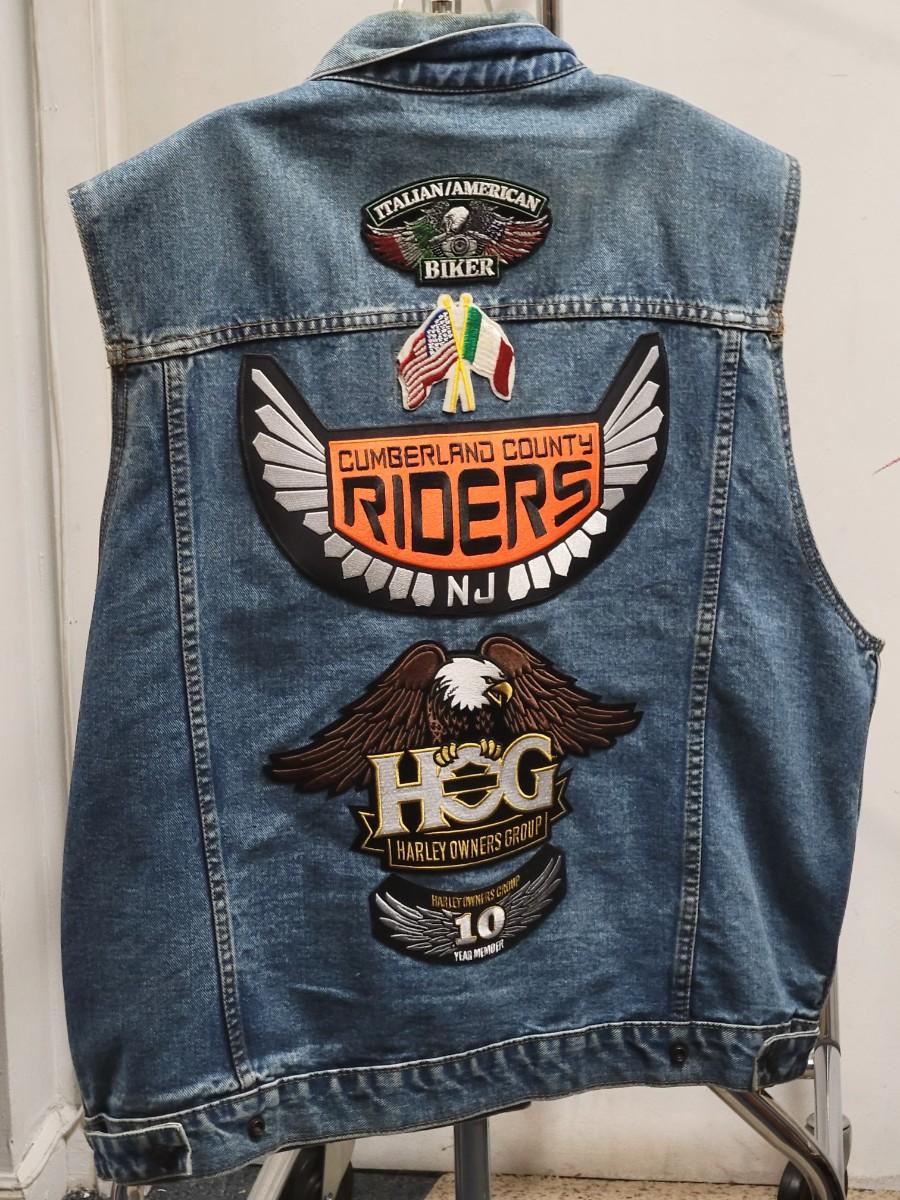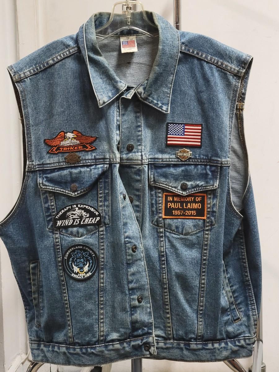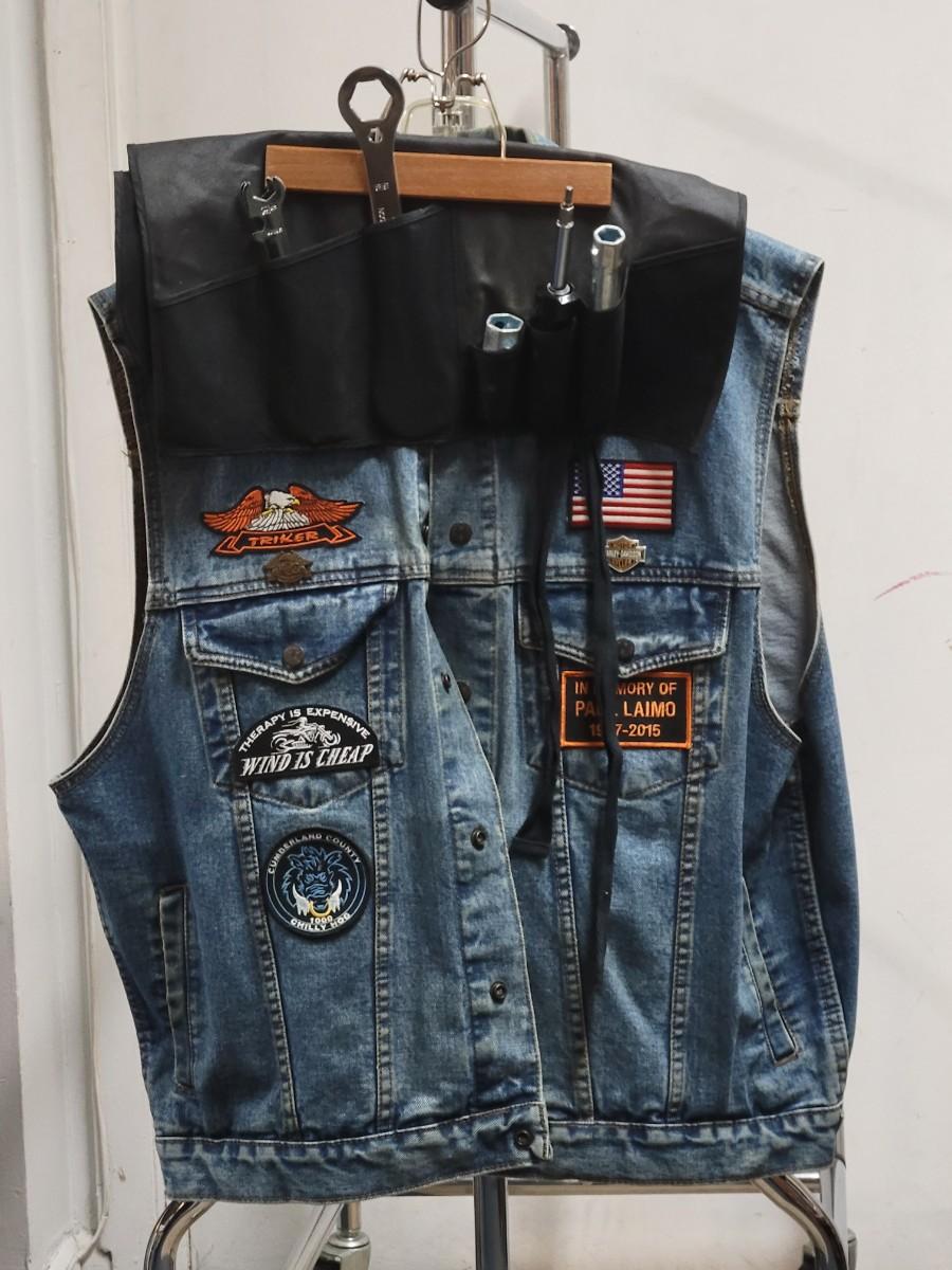 LOT117: Motorcycle Denim Vest (Large) & Harley Davidson Repair Tool Kit