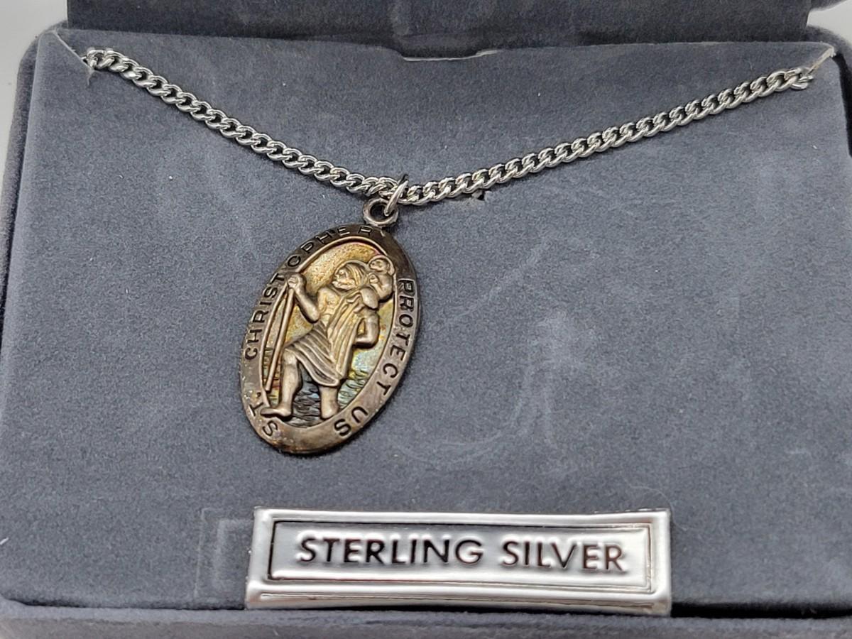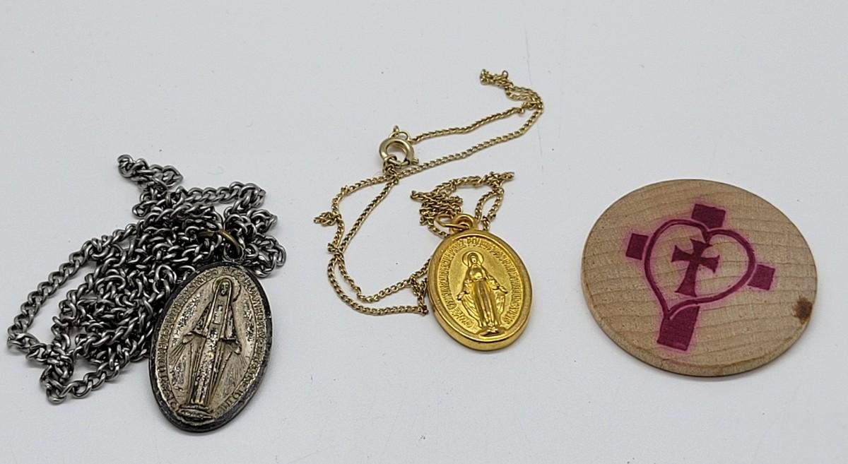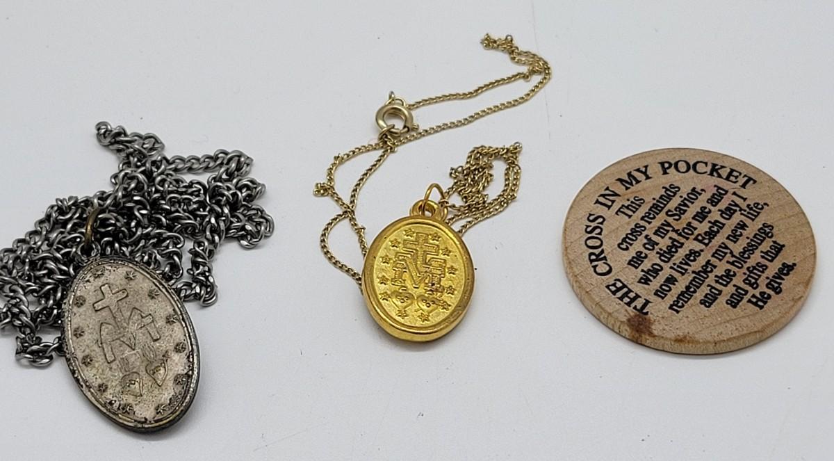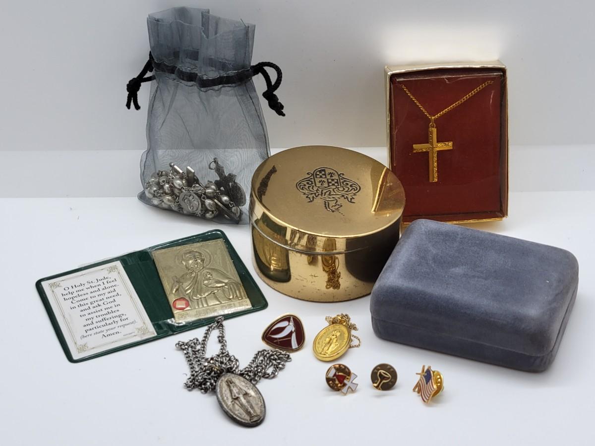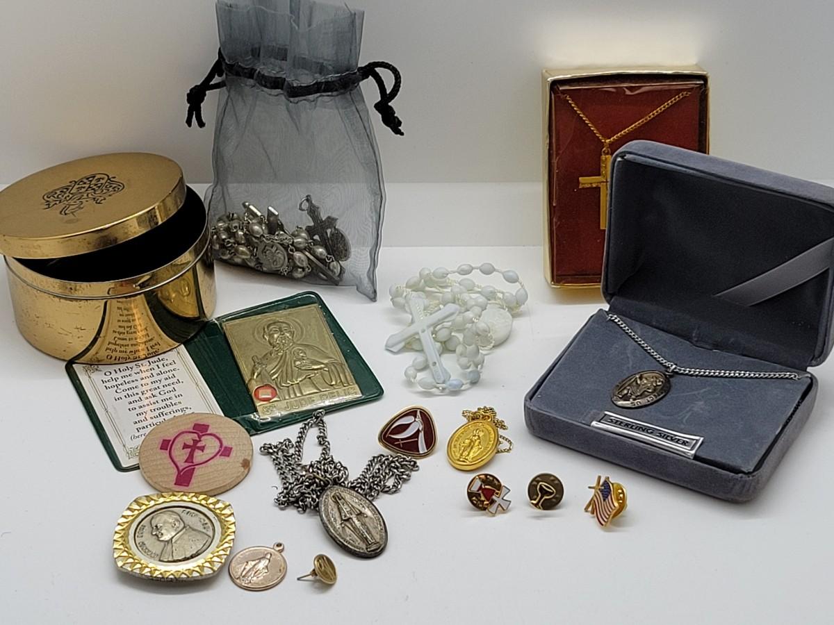 LOT136: Religious Jewelry including Sterling Silver Medallion/Chain