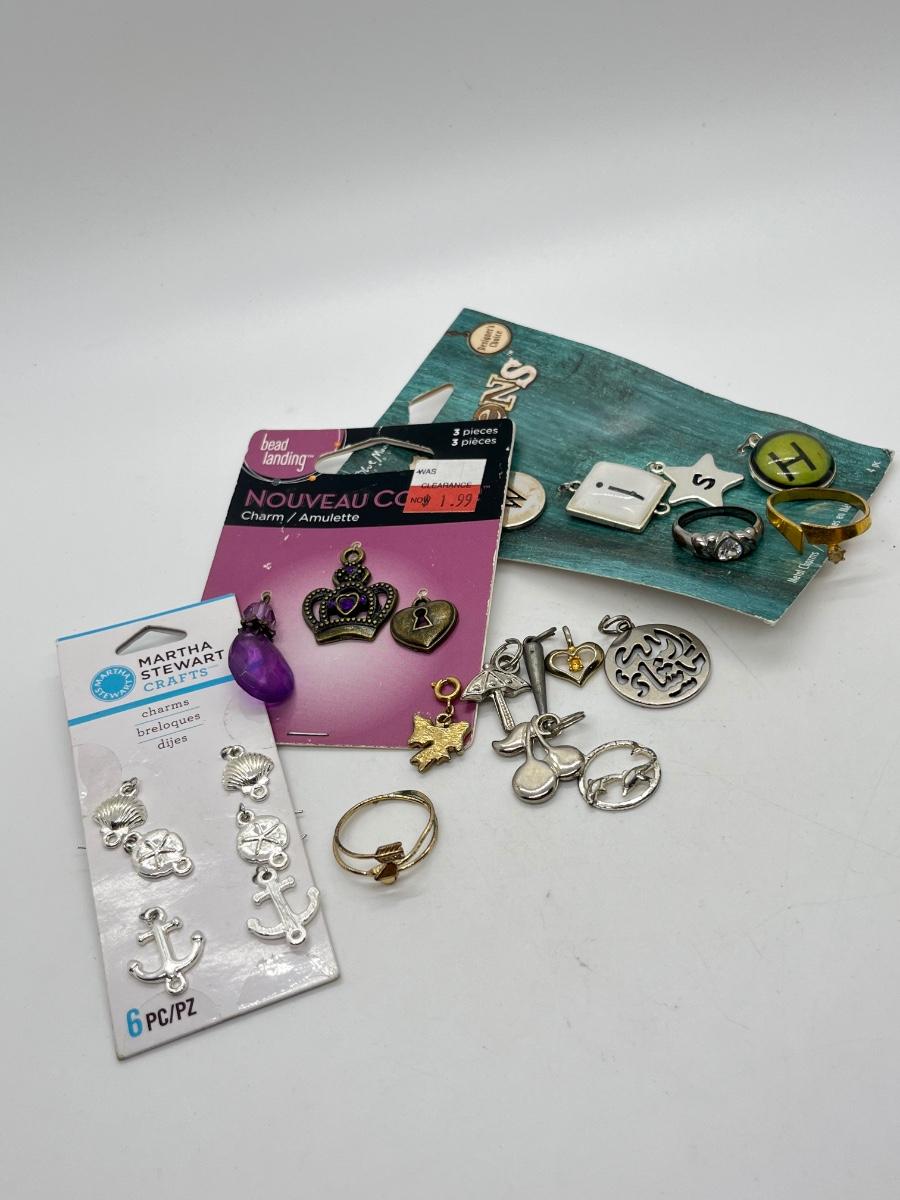 LOT 150: Collections of Charms - Some in Original Packages  &  Three Rings