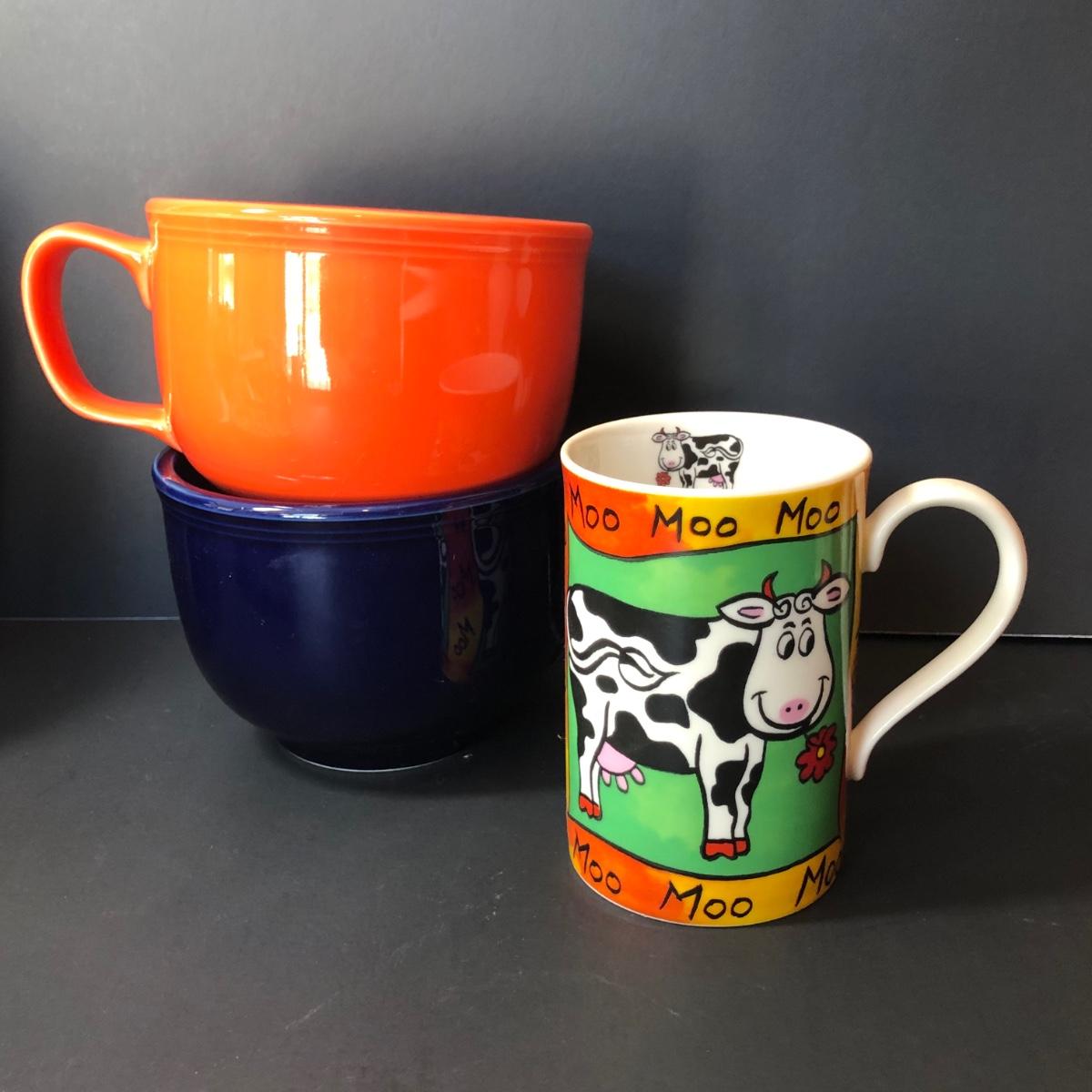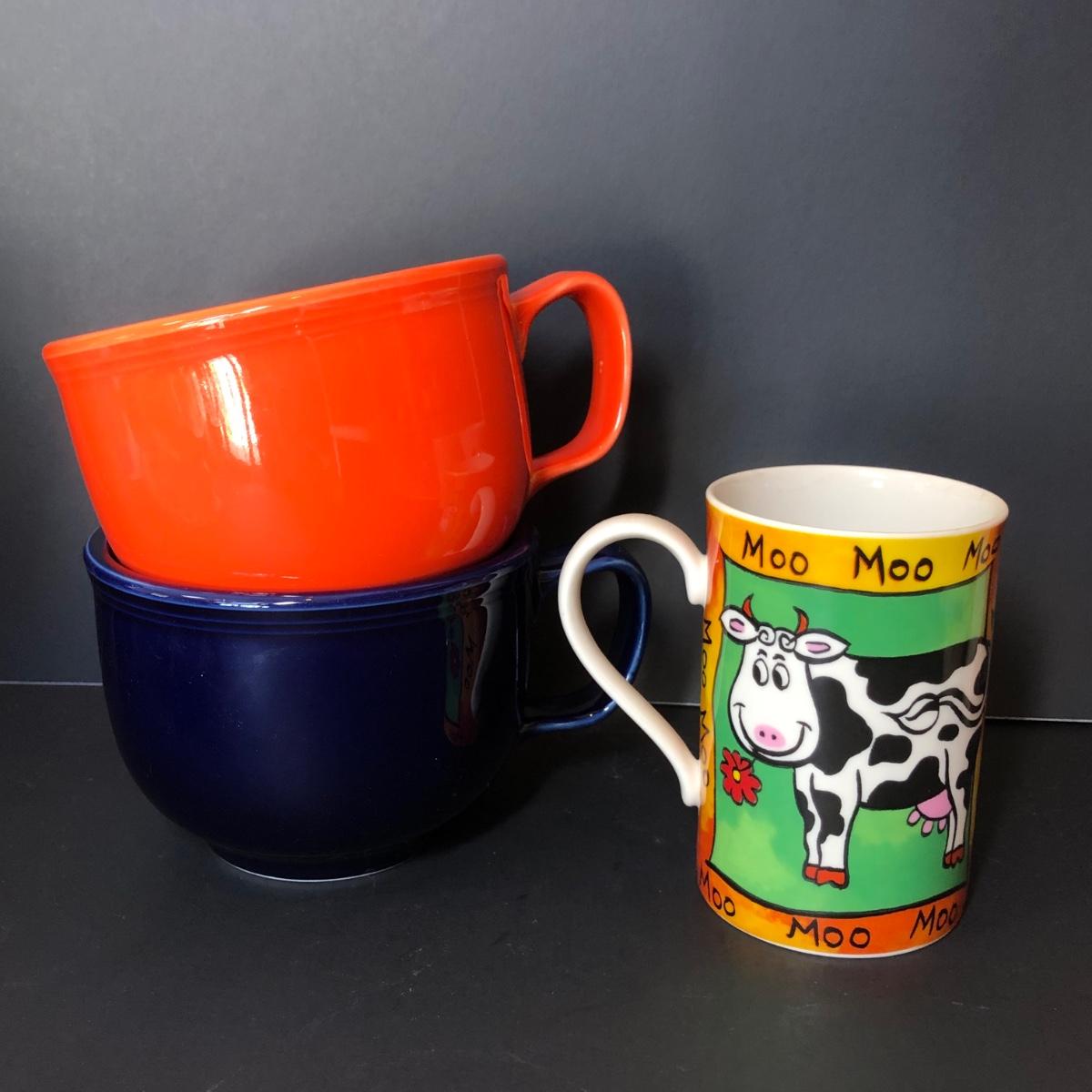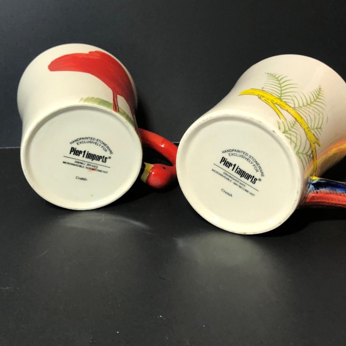 LOT 4M: Colorful Milson & Louise Hand-Painted Vase, Homer Laughlin China Mugs, Flamingo & Parrot Handled Mugs & More