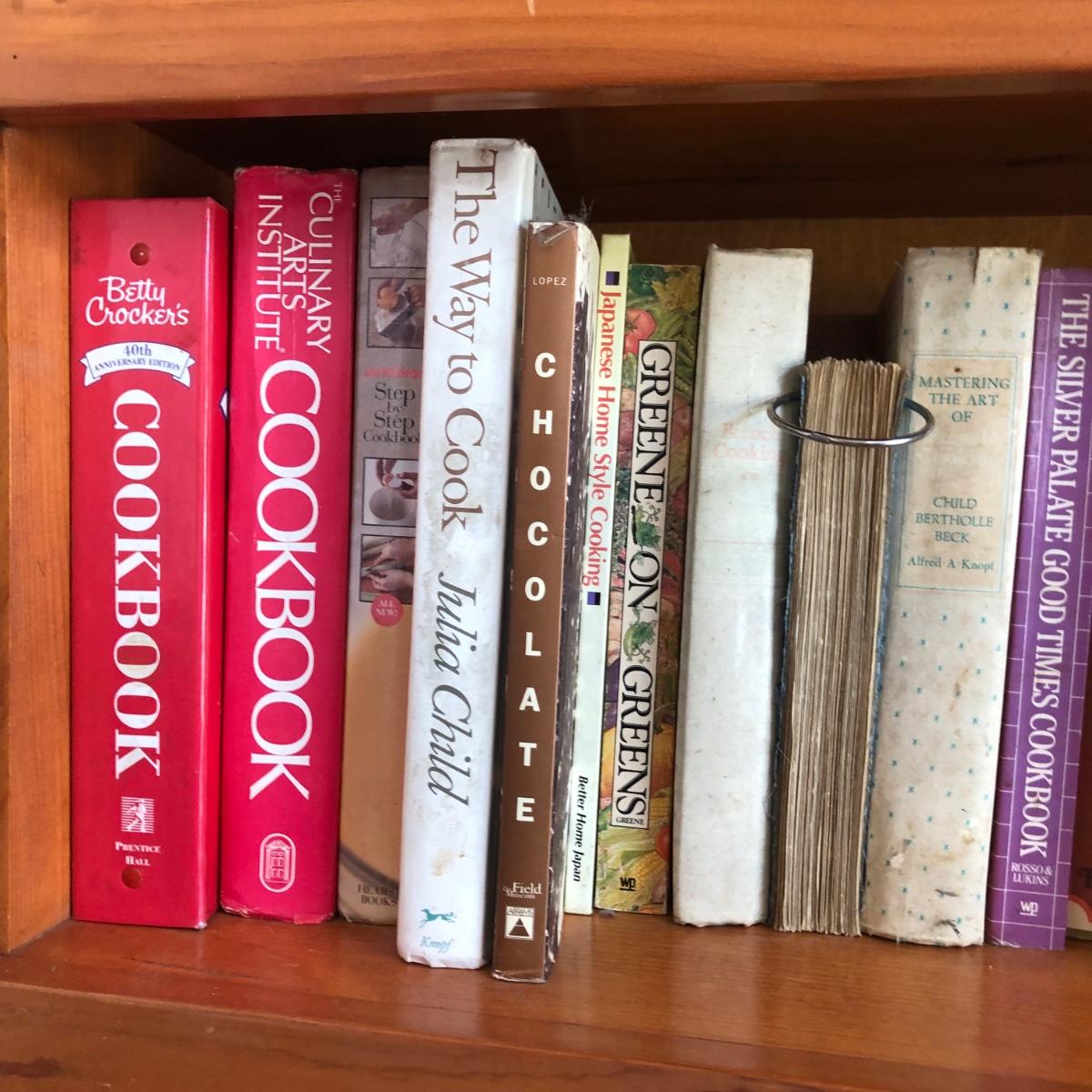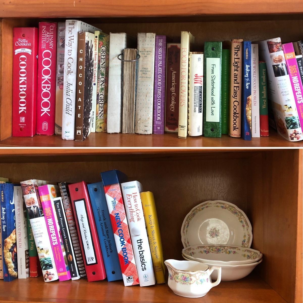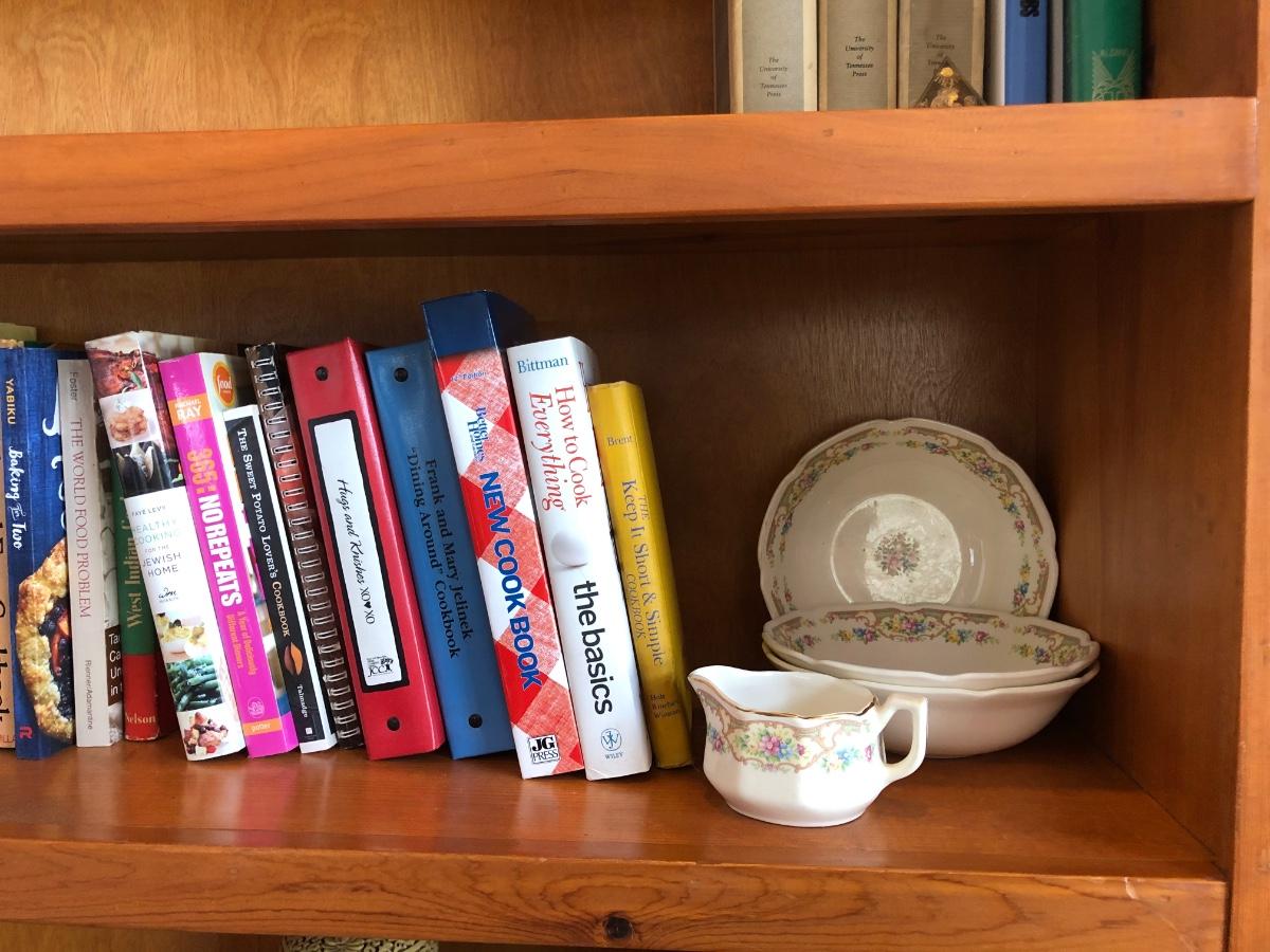 LOT 9M: Shelf of Cookbooks & Small Floral China