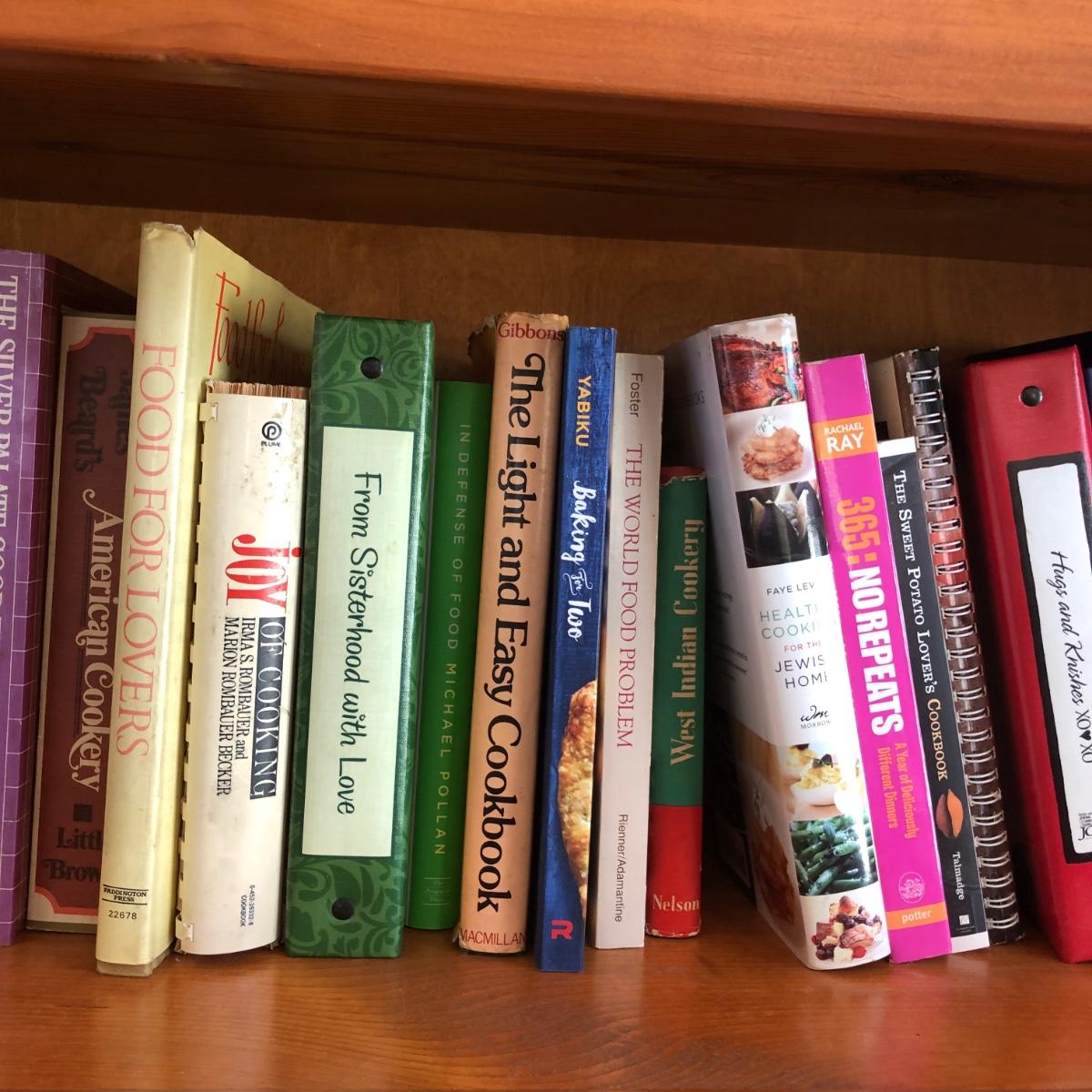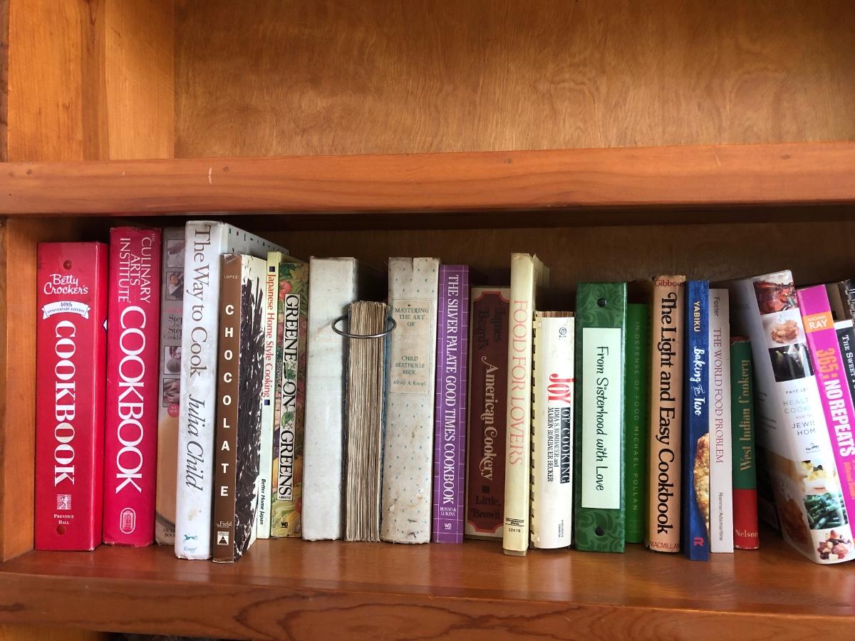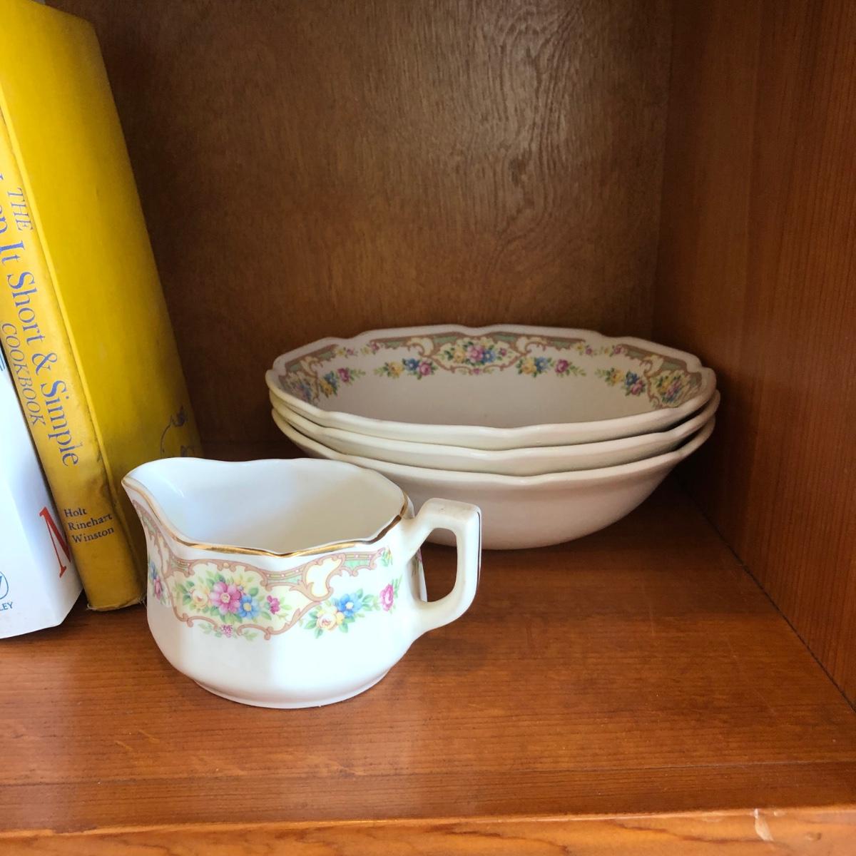 LOT 9M: Shelf of Cookbooks & Small Floral China