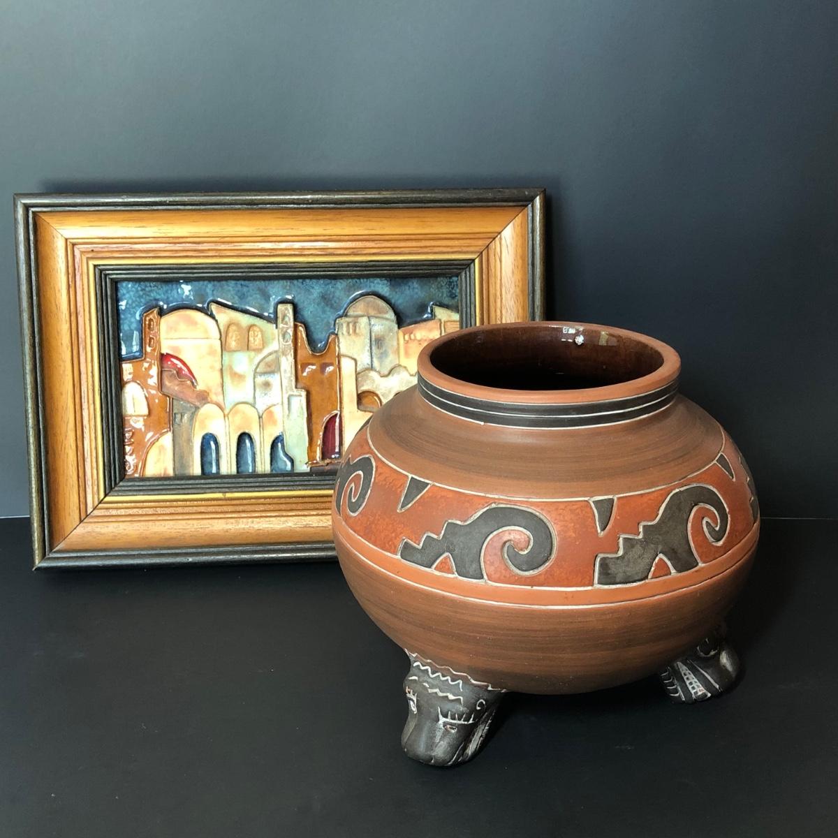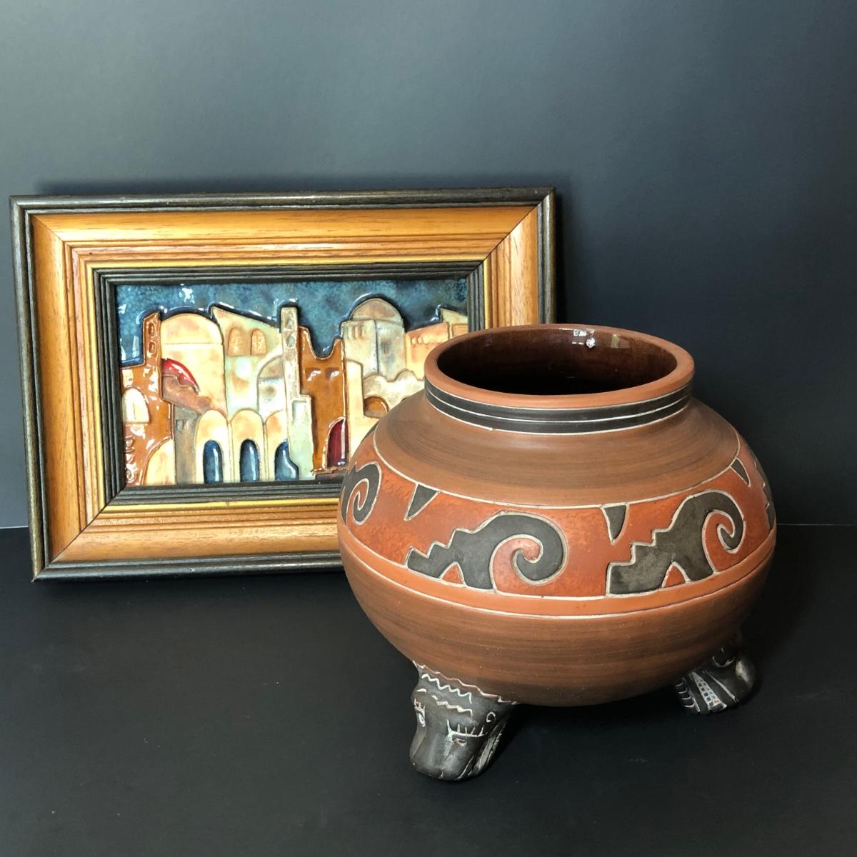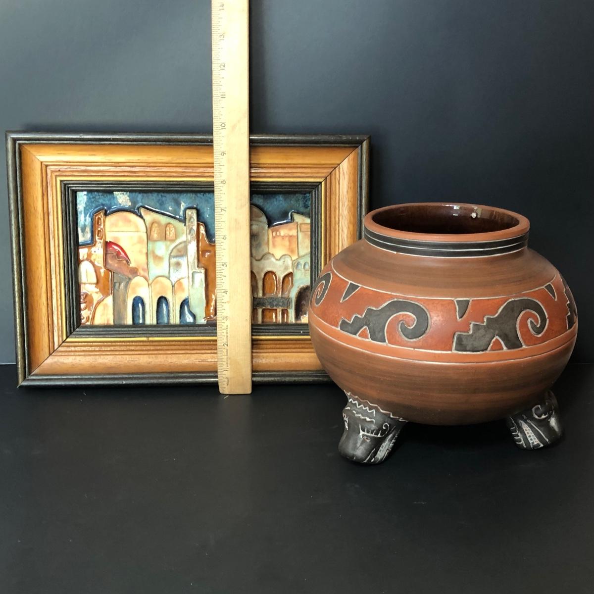 LOT 12M: Framed Ceramic Painting & Signed Mexican Pottery
