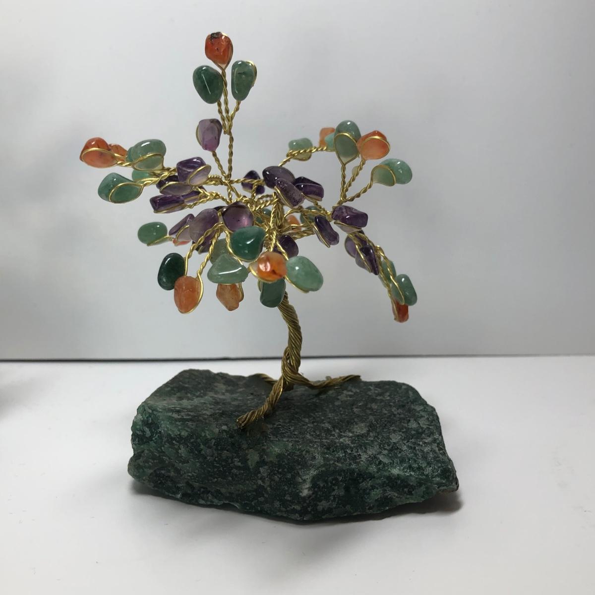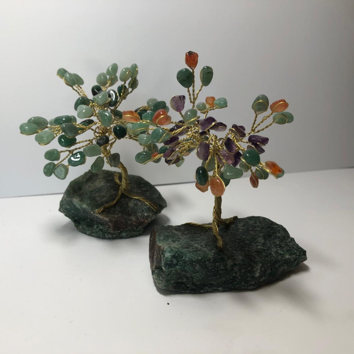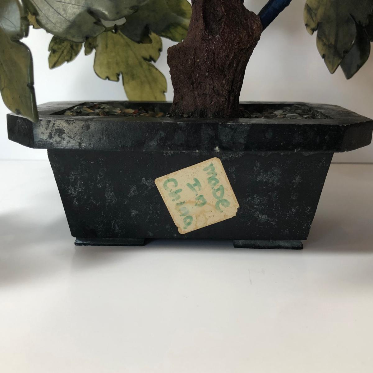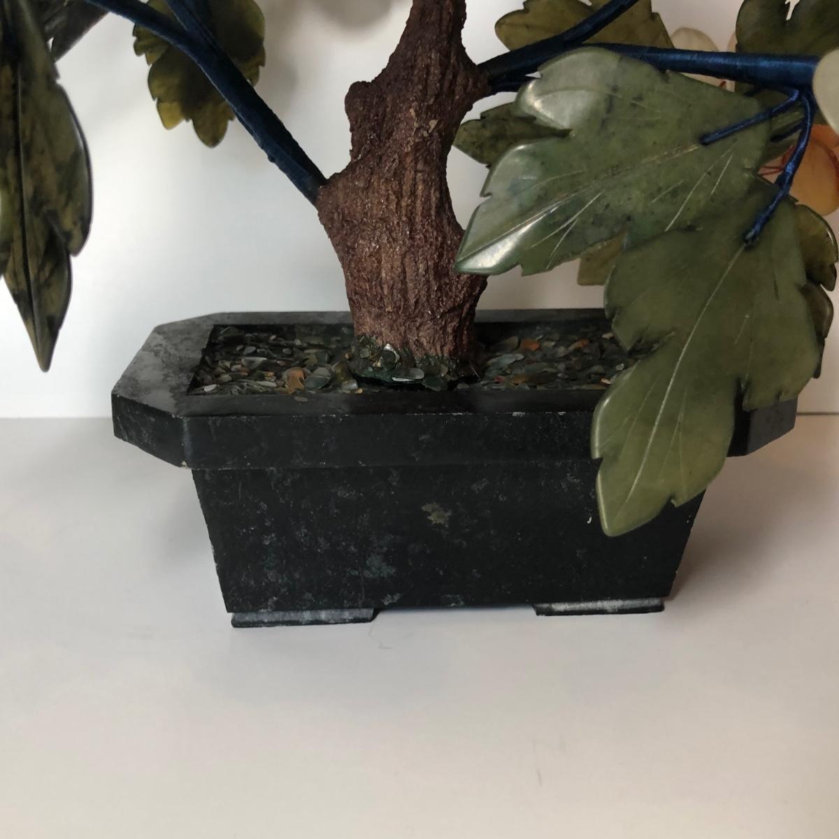 LOT 16M:  Beautiful Vintage  Jade Flower Tree w/ Multi-Petal Flowers in Stone Pot &  Miniature Stone/Jade Wired Trees