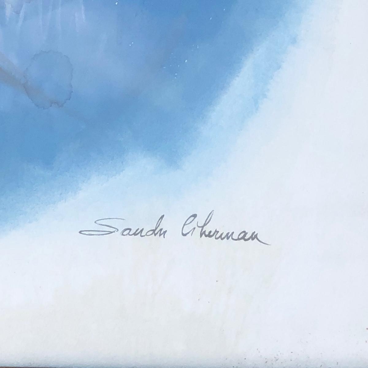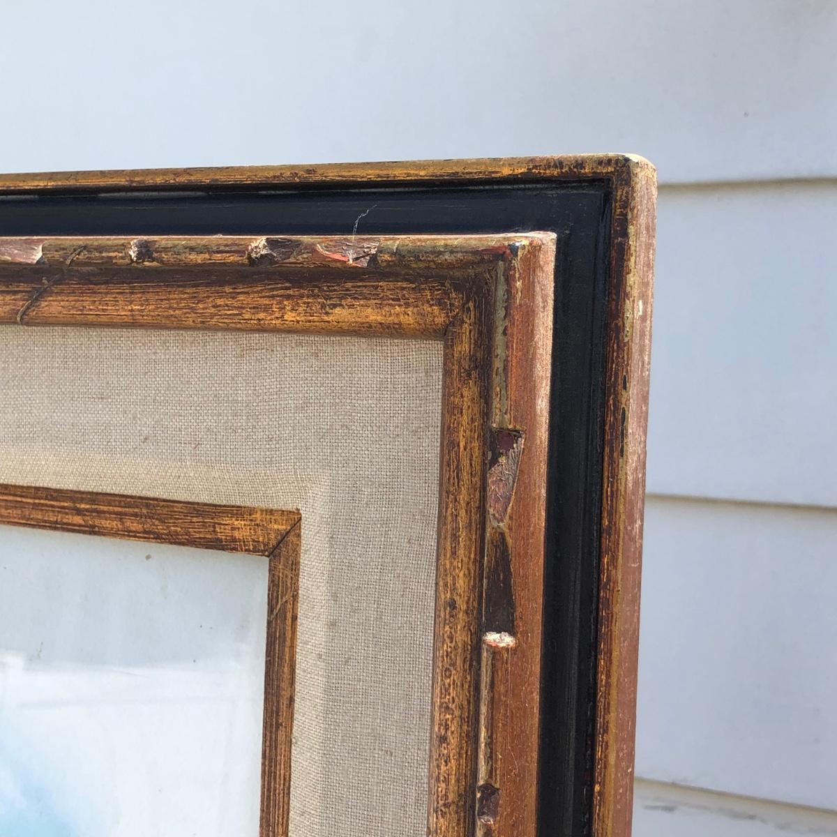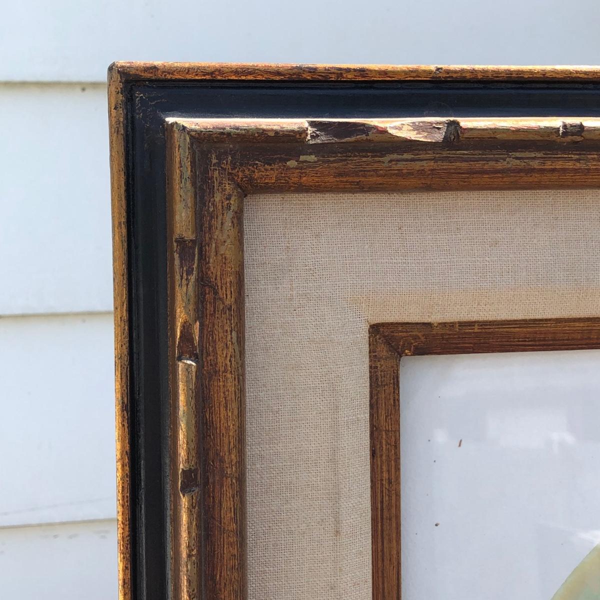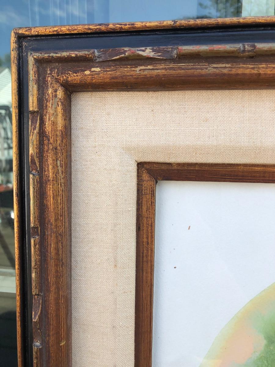 Framed piece measures 27.5 x 31.5 inches.
