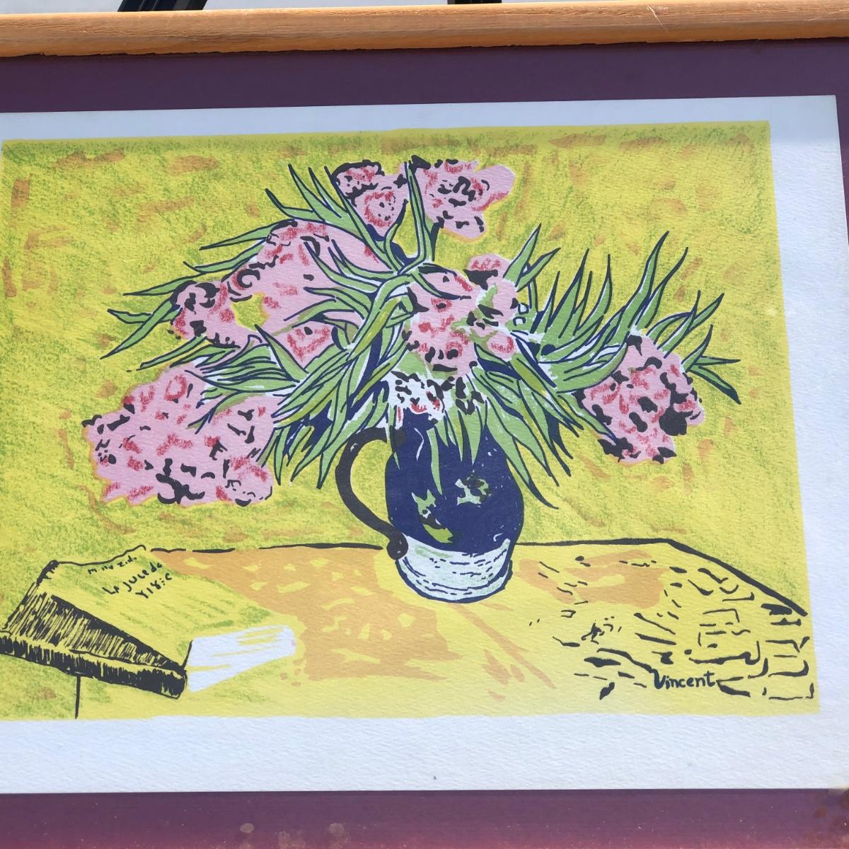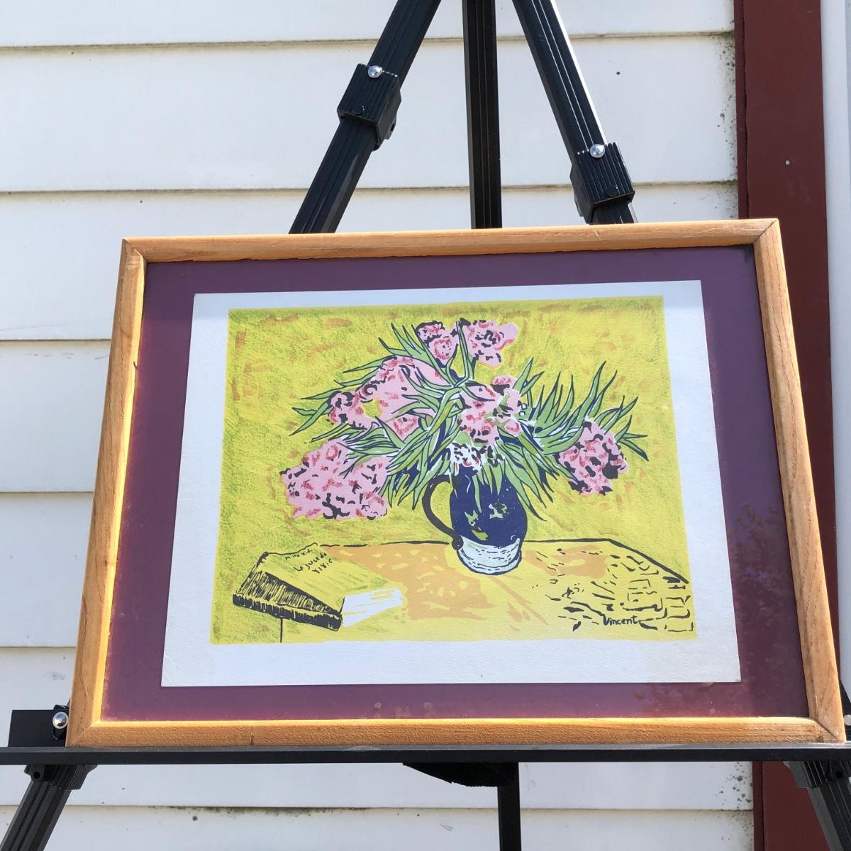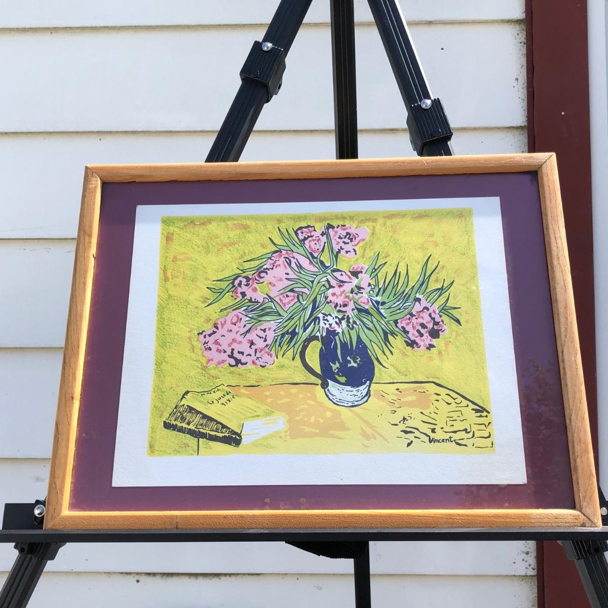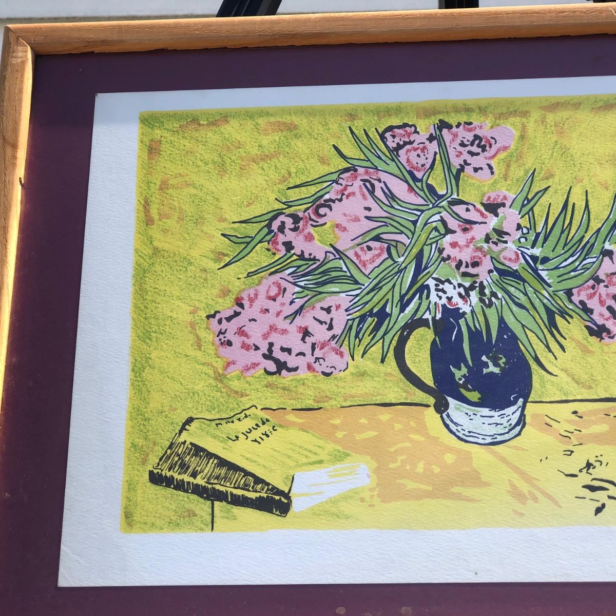 LOT 33M: Framed Van Gogh "Still Life with Oleanders" Style Print