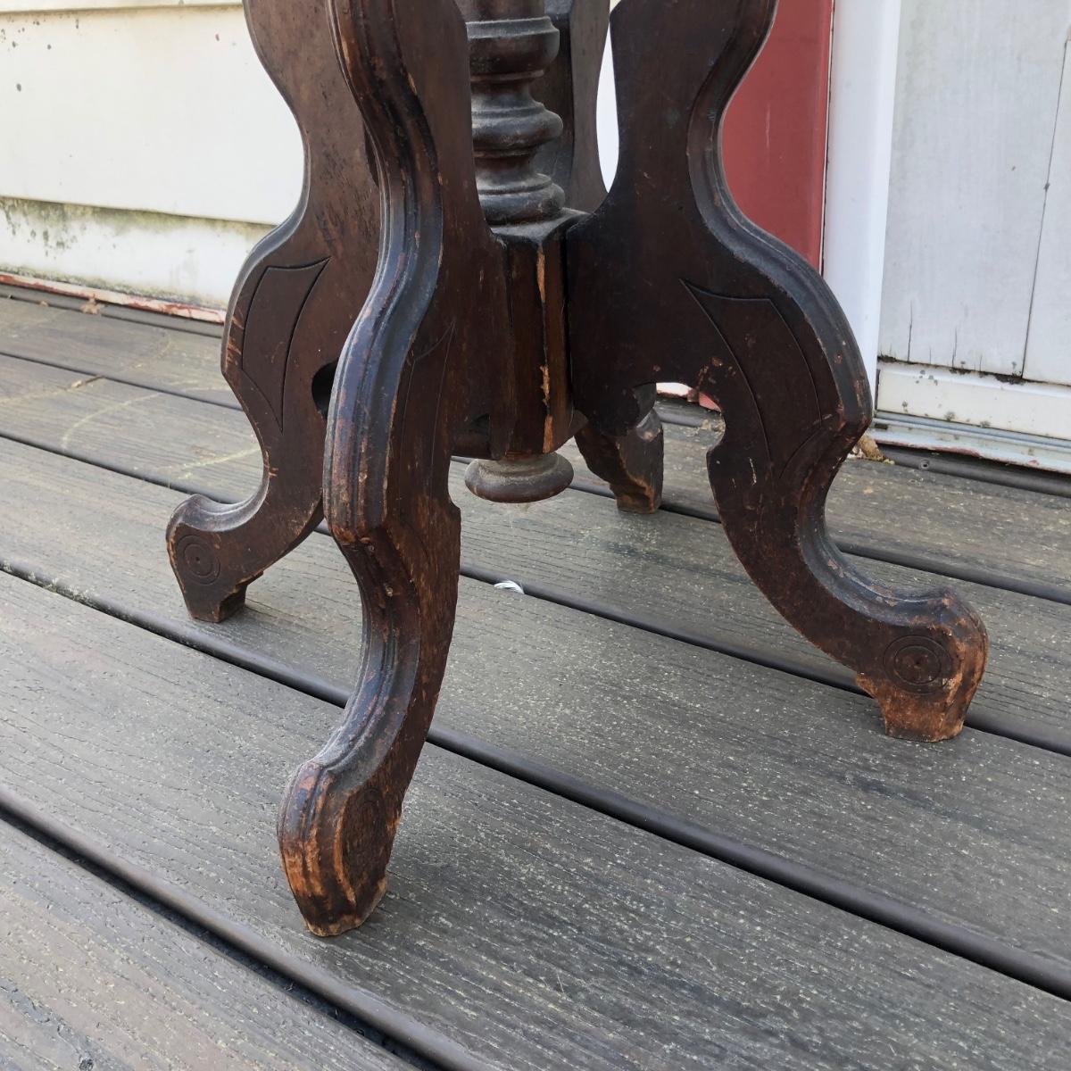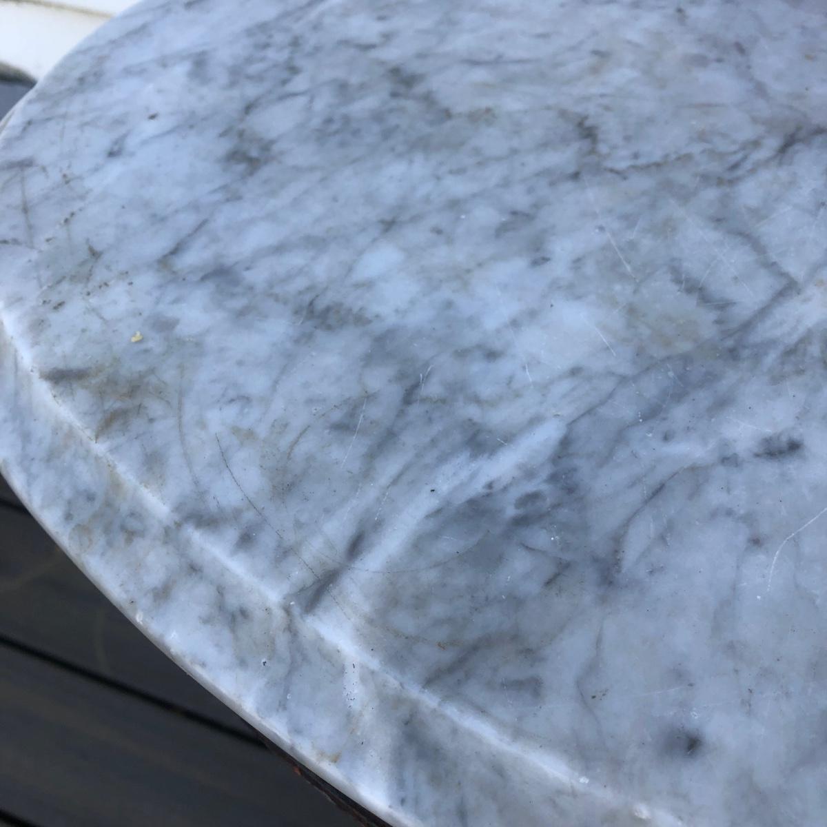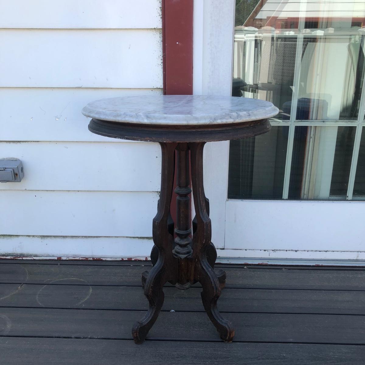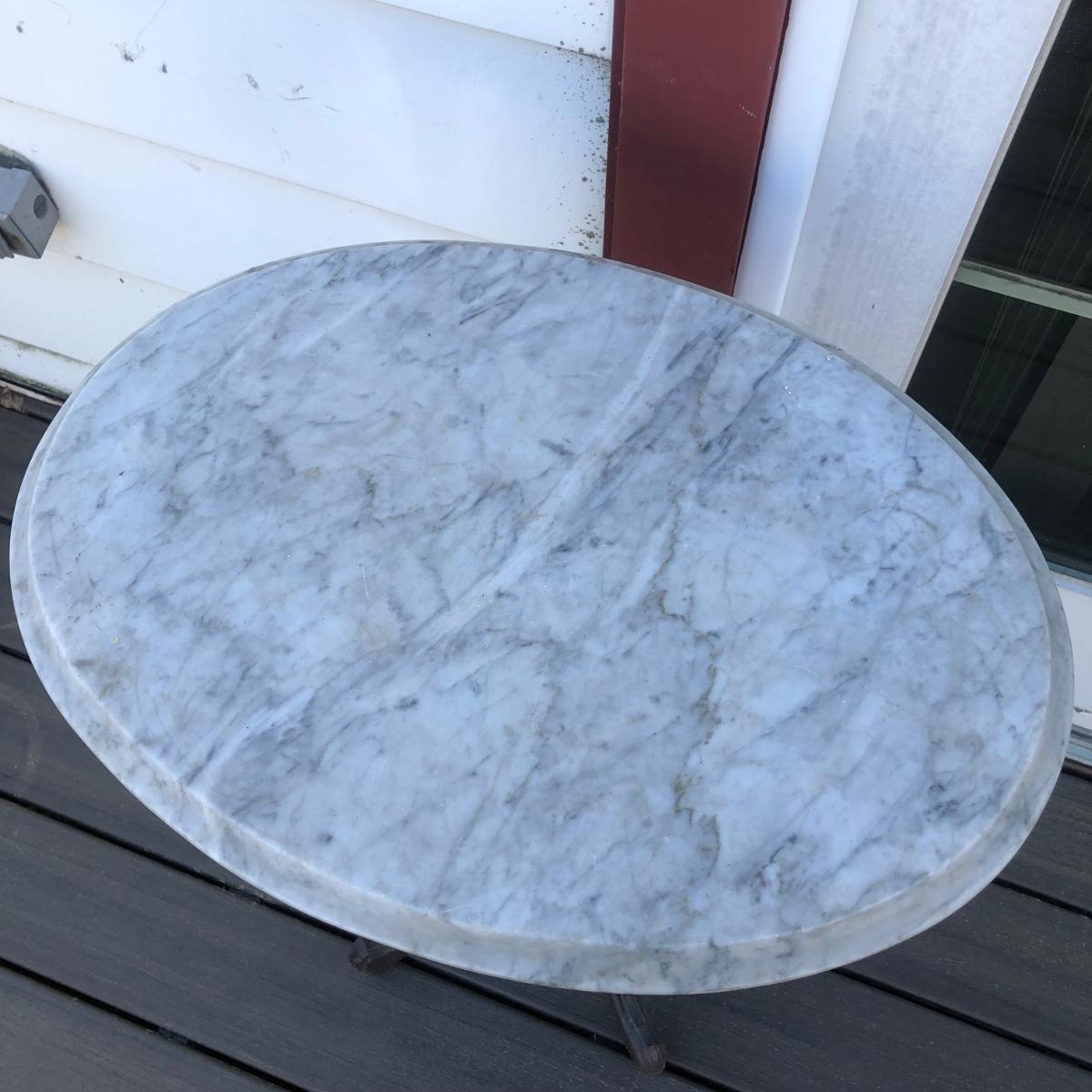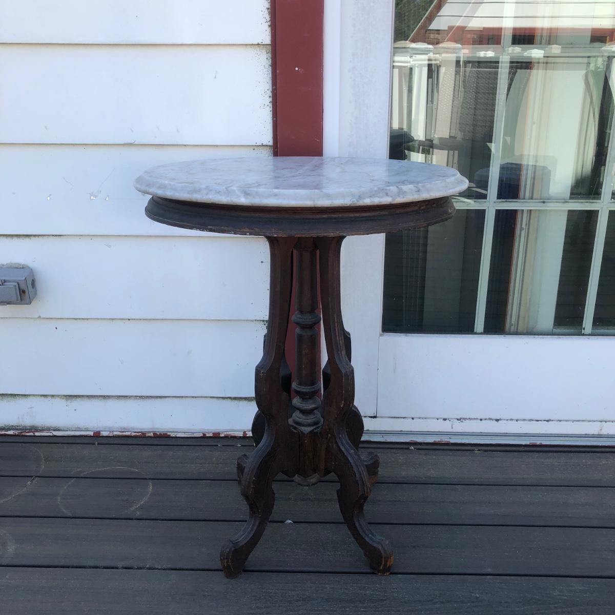 Oval end table. Used condition with some marks on the top of it. Measures 22W x 16D x 29H.