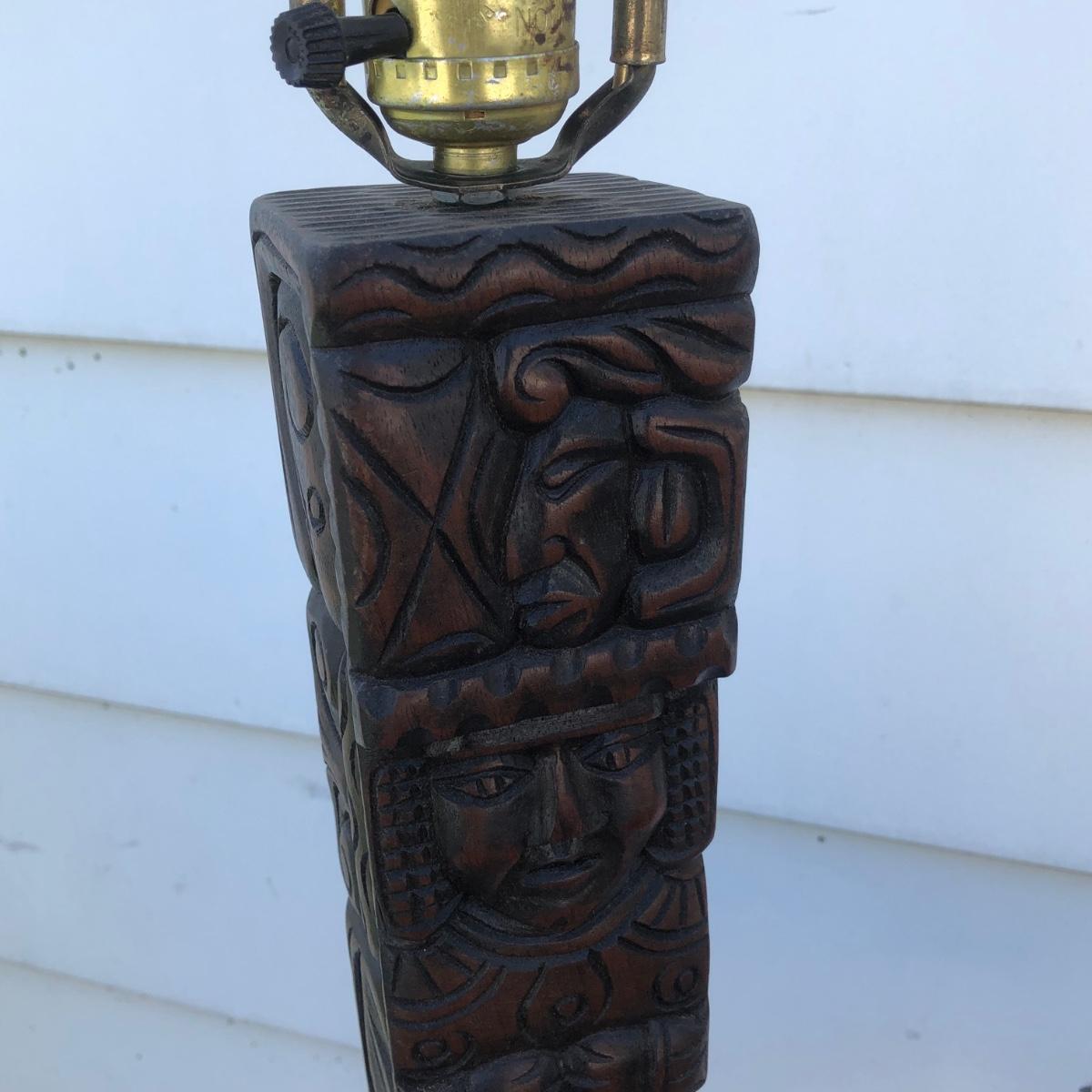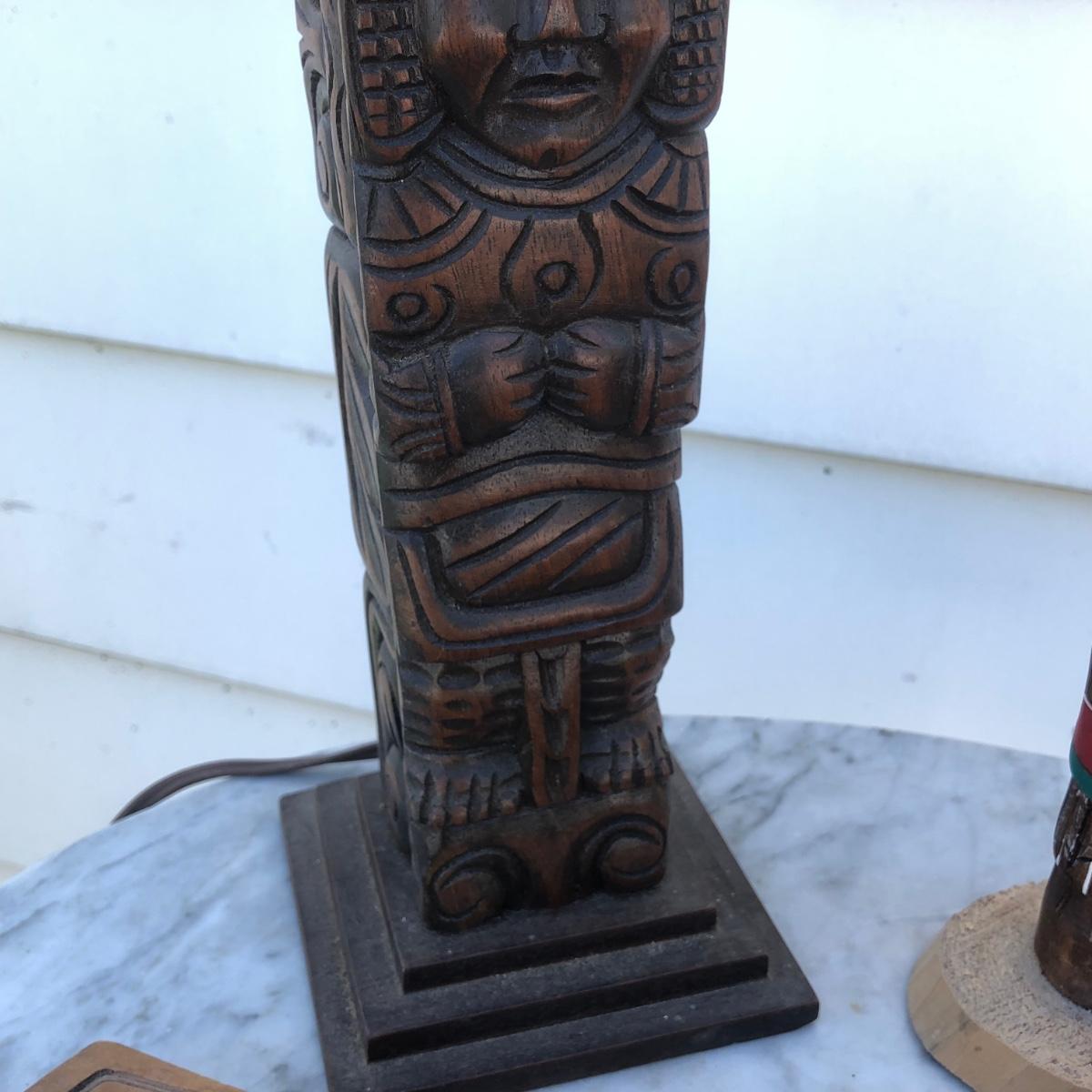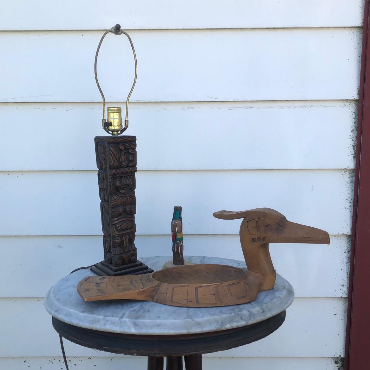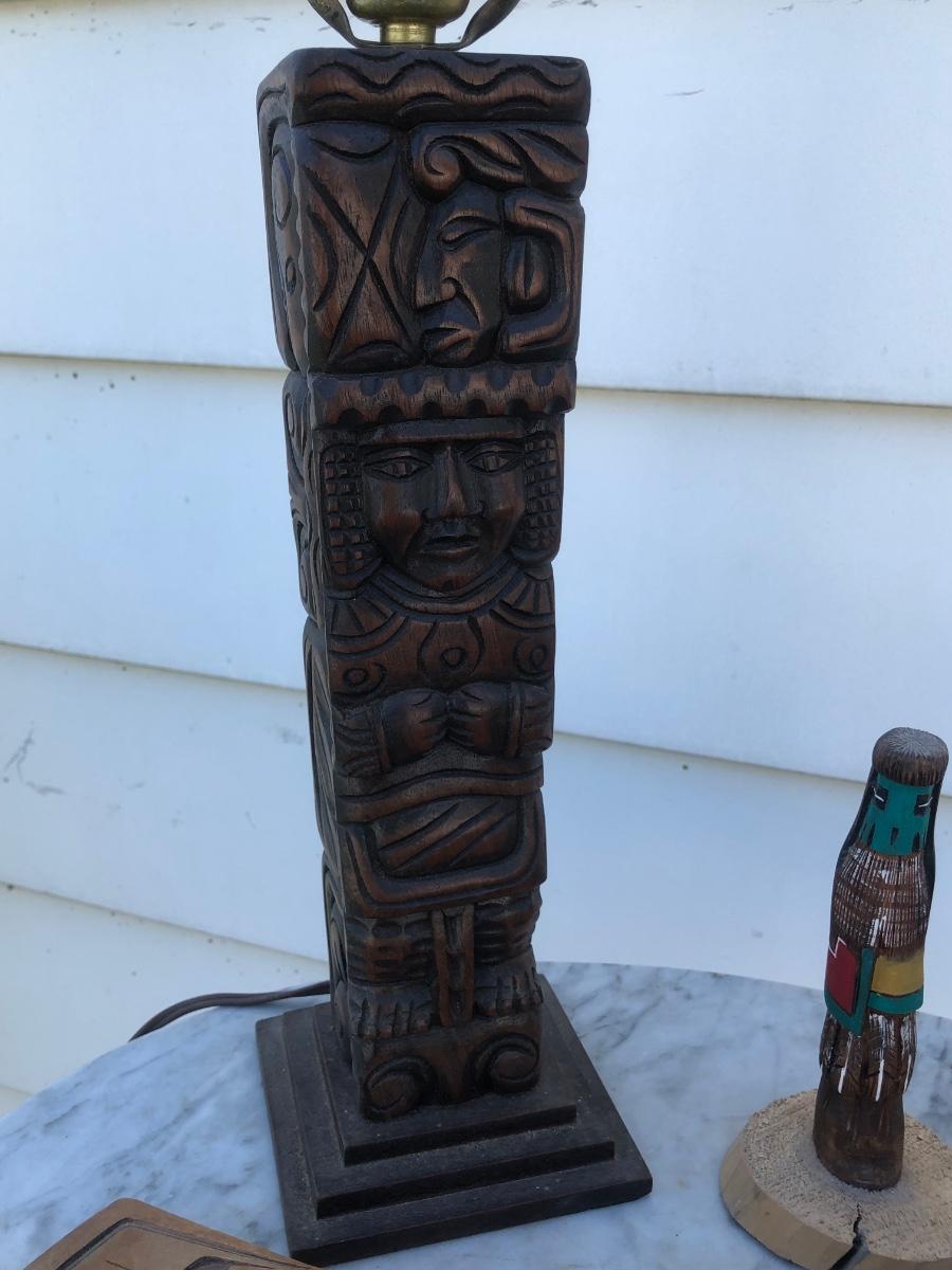 LOT 49M: Honduras Tiki Lamp, 1983 Carved Wooden Bird, Small Statue