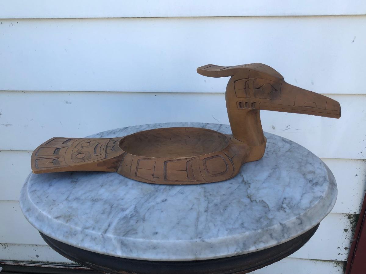 Lamp untested. Carved bird has a swivel head. Table not included.