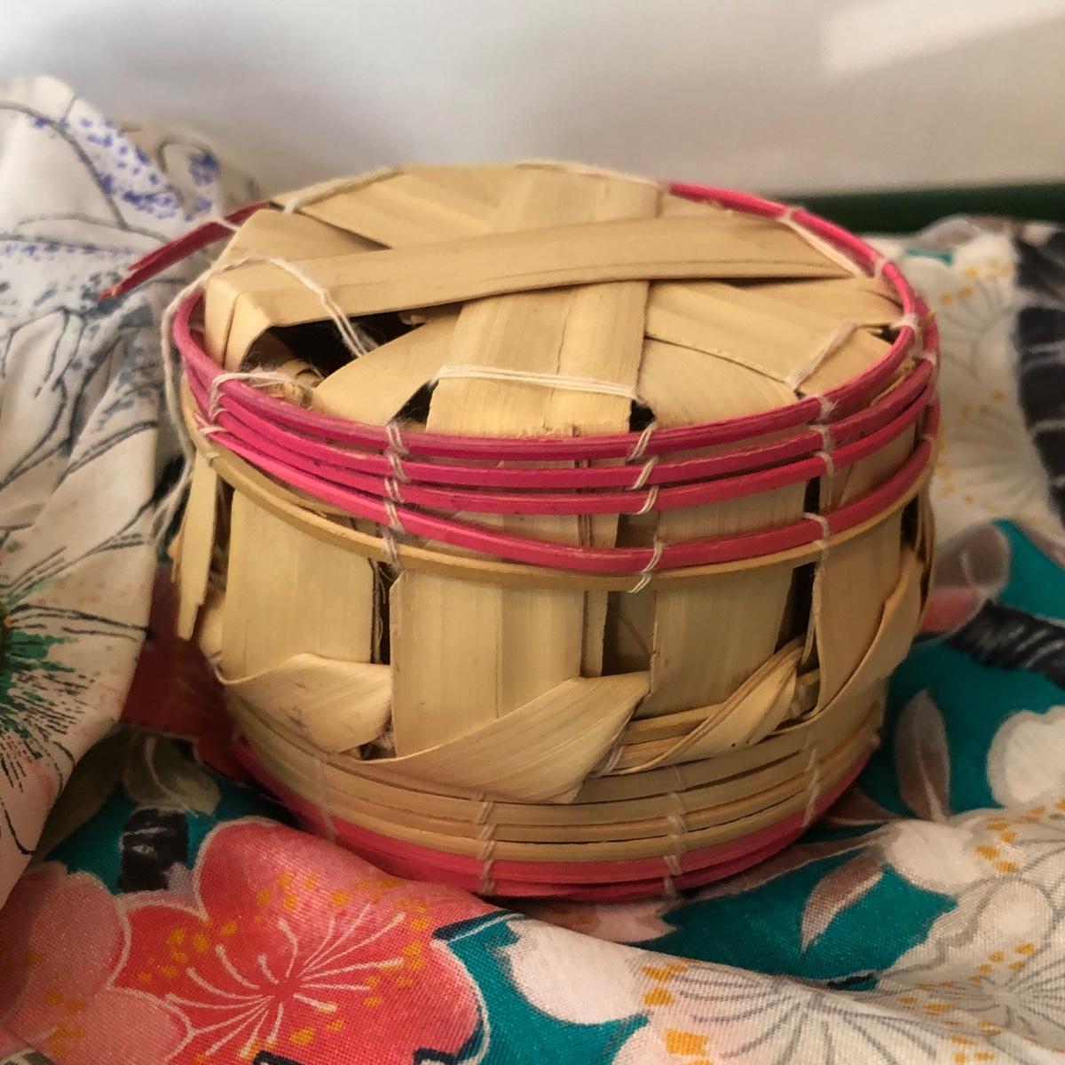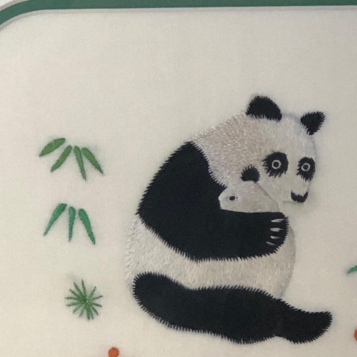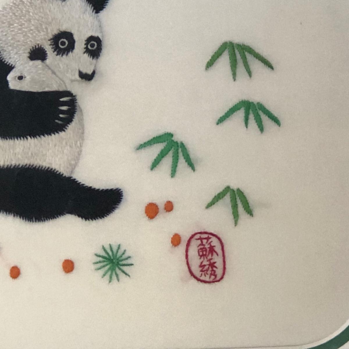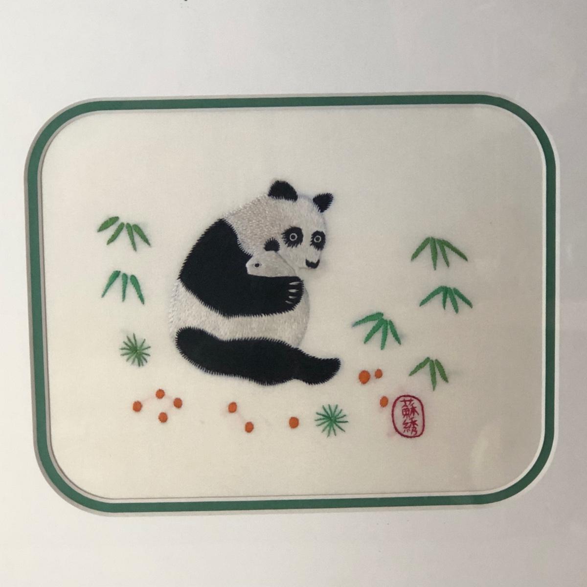 LOT 50M: Framed Panda Embroidery, Silk Scarves & Woven Mini Basket
