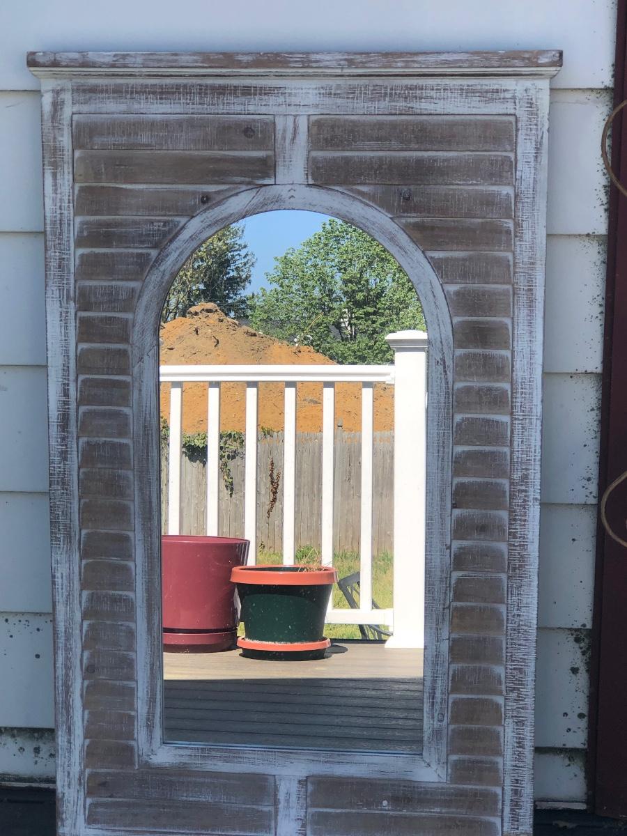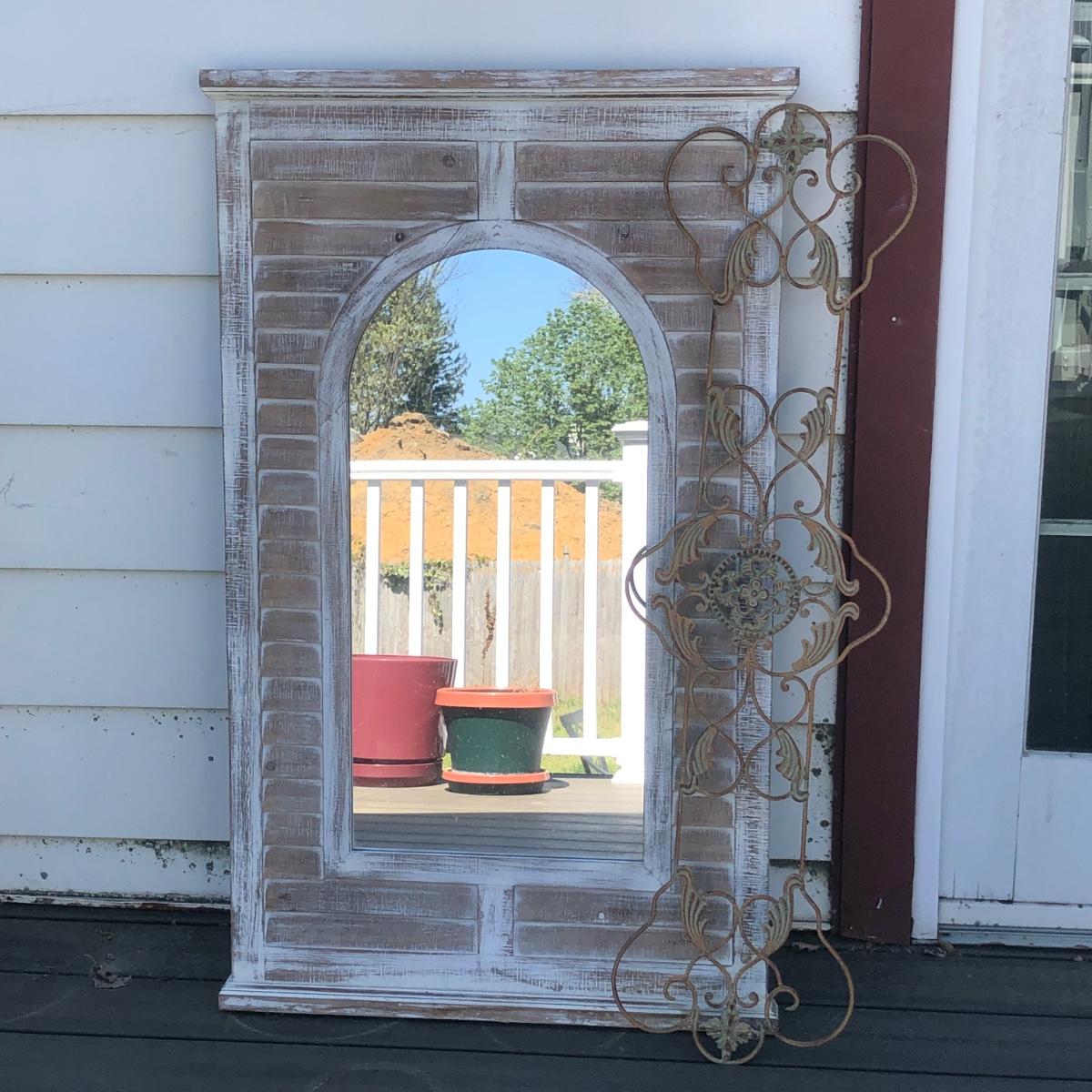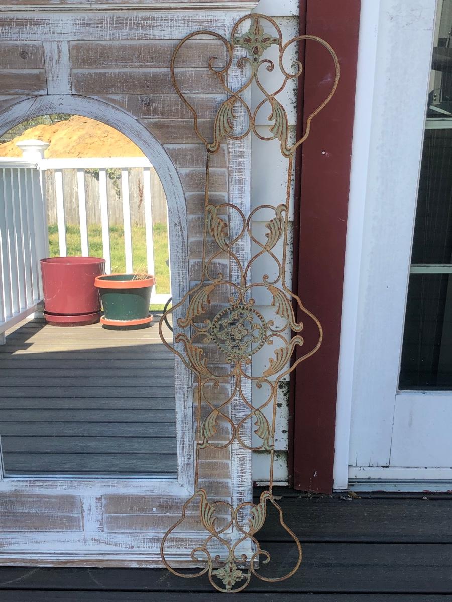 LOT 52M: Large Wood Frame Mirror & Iron Wall Hanging