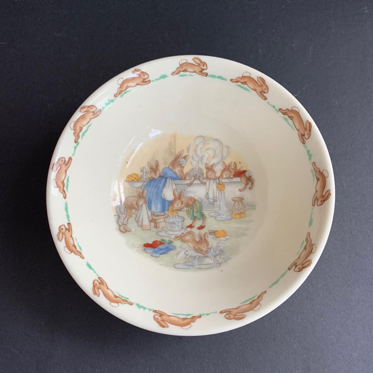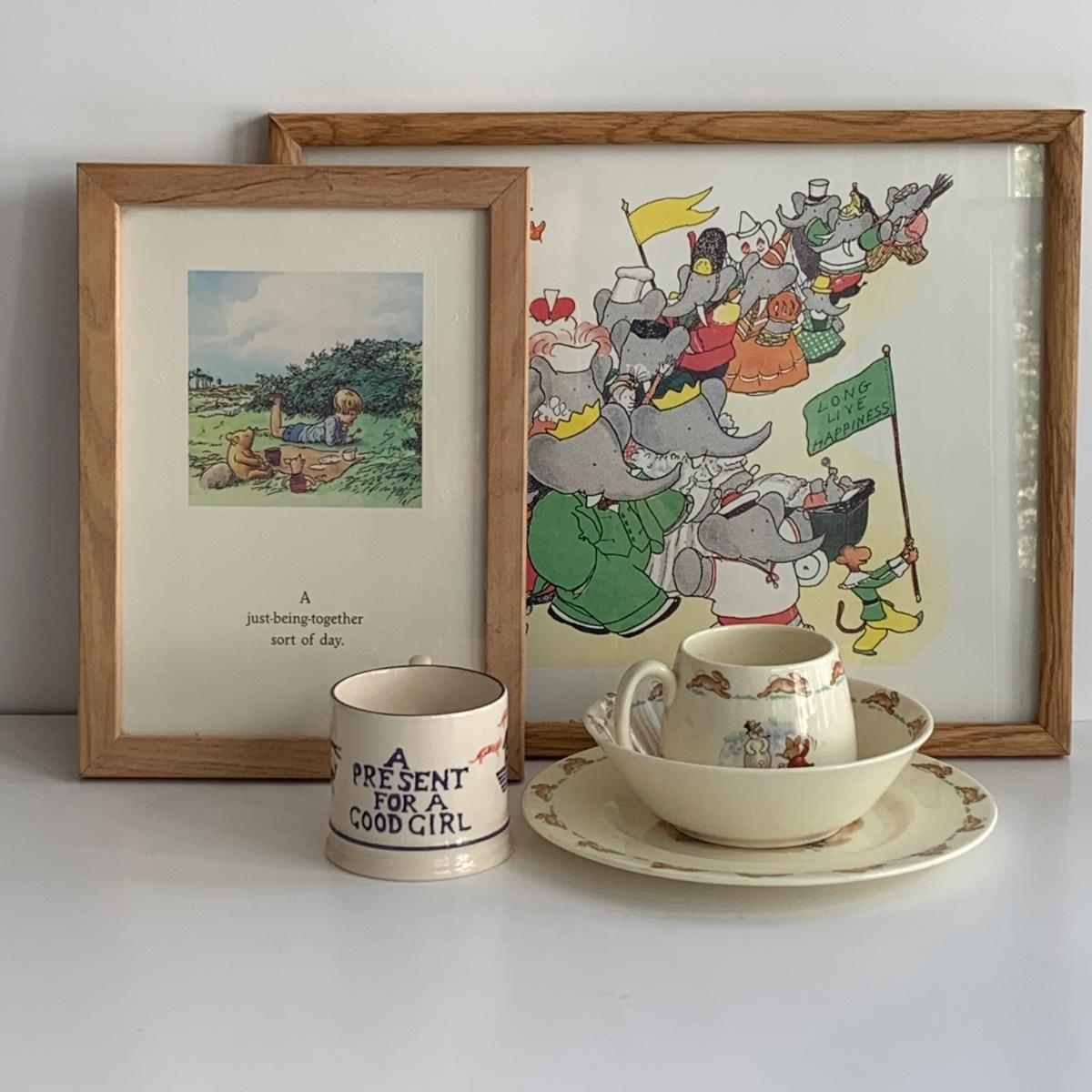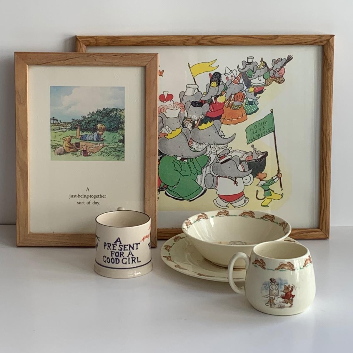 LOT 61: Royal Daulton Peter Rabbit Dinnerware, Bridgewater "Good Girl" Cup, Winnie the Pooh & Babar Prints