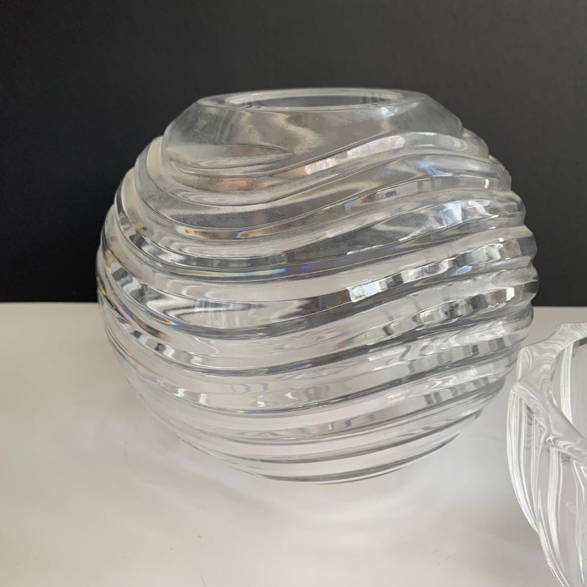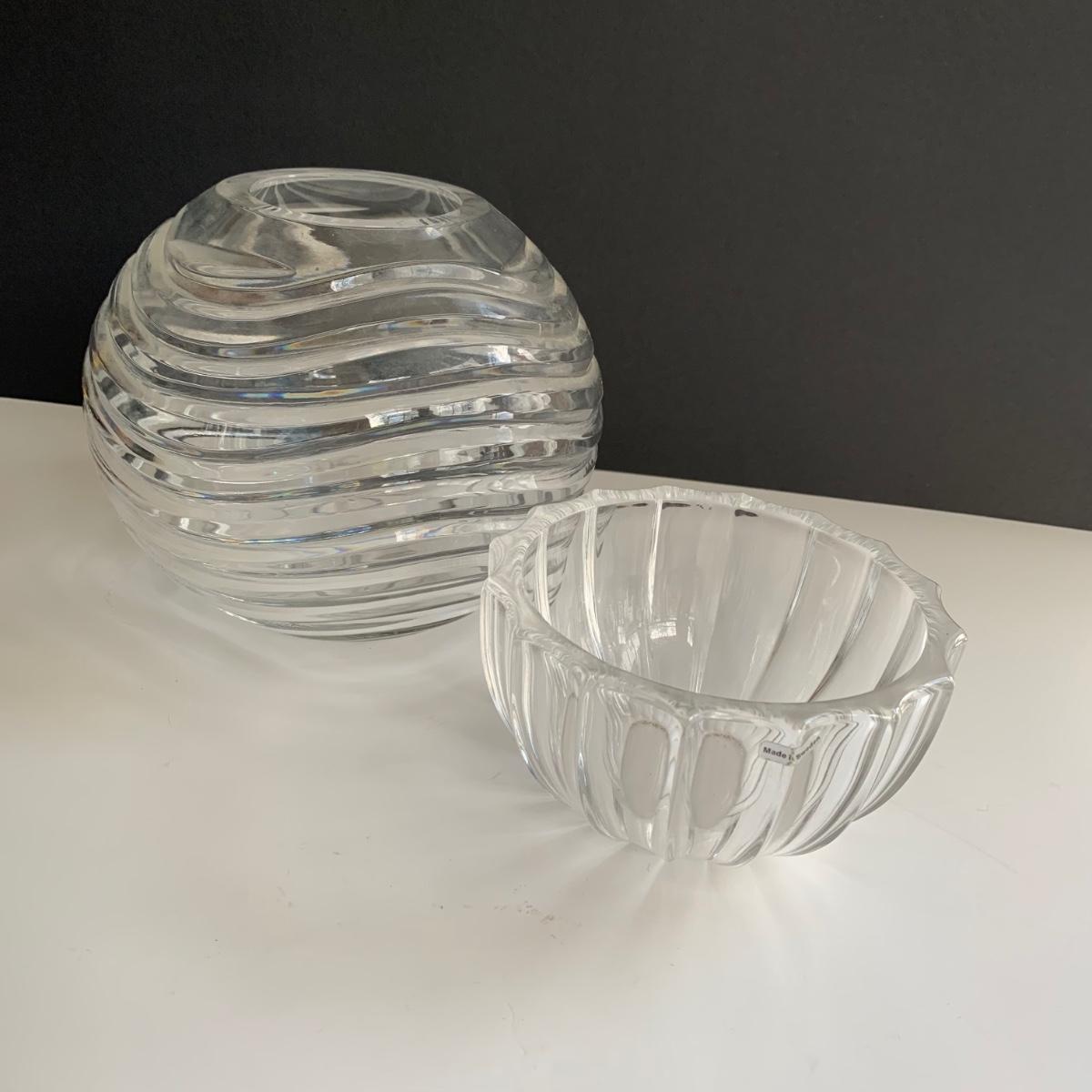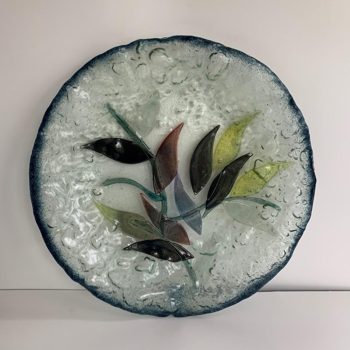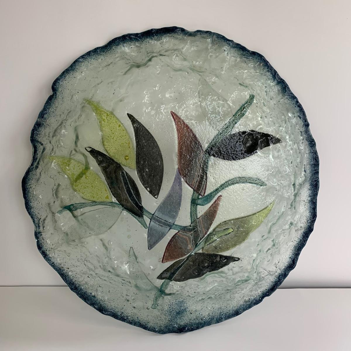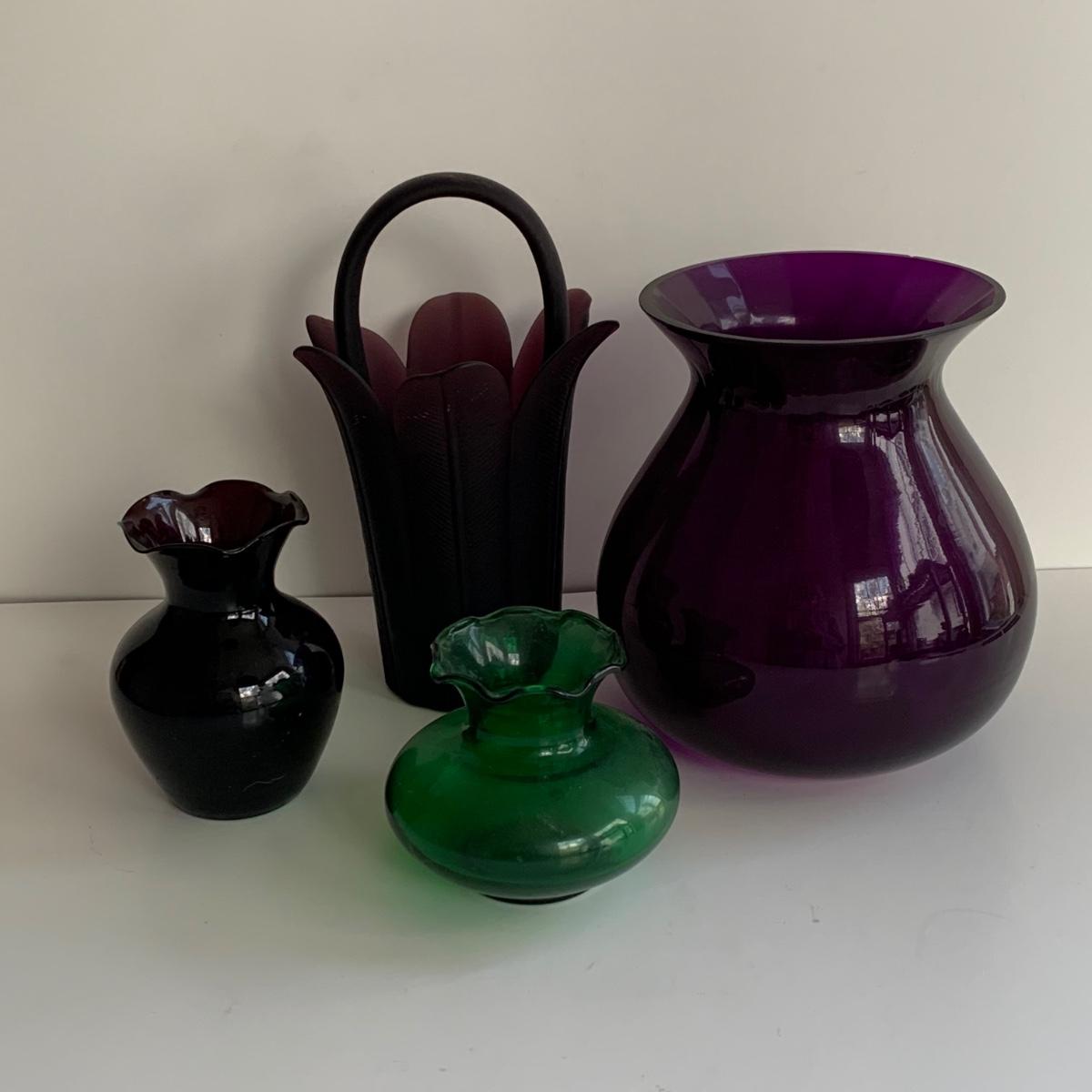 LOT 62: Glass Platter 18", Frosted Glass Purple Glass Flower Vase, Glass Bowls & More