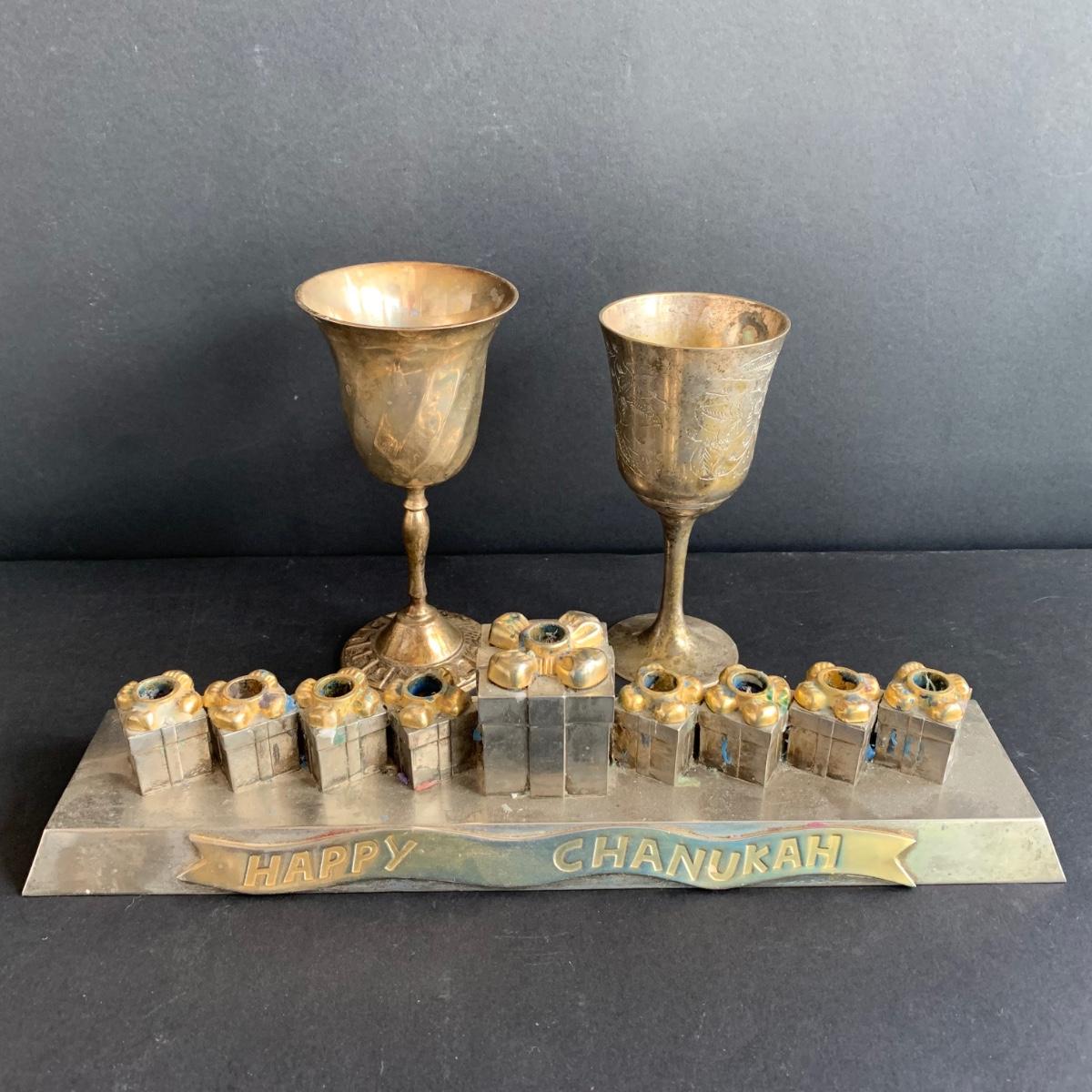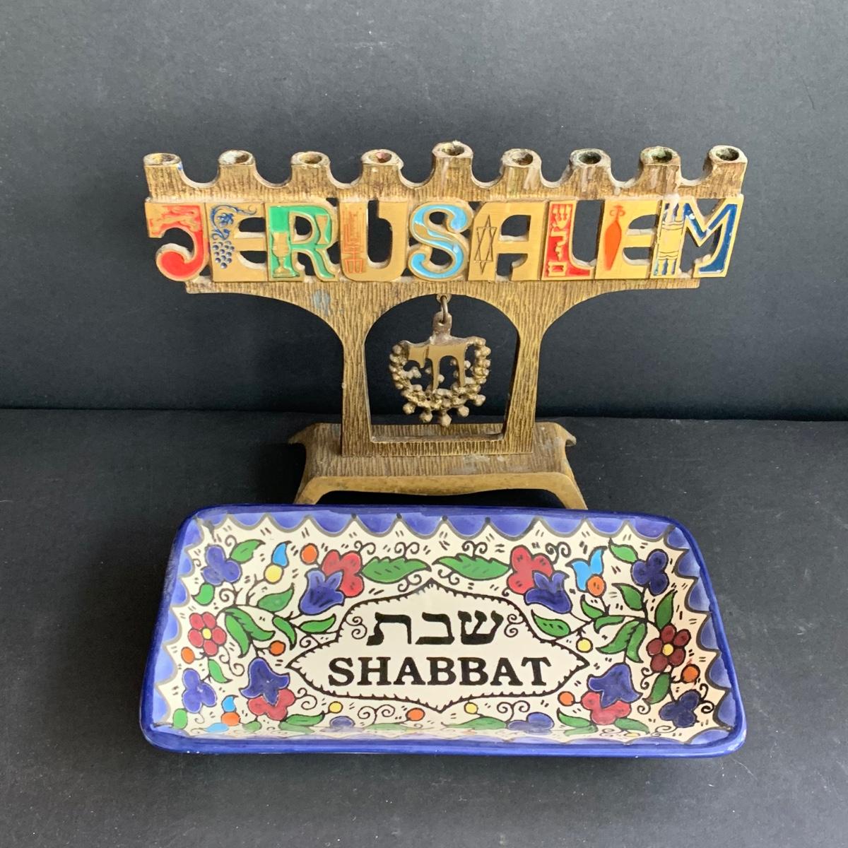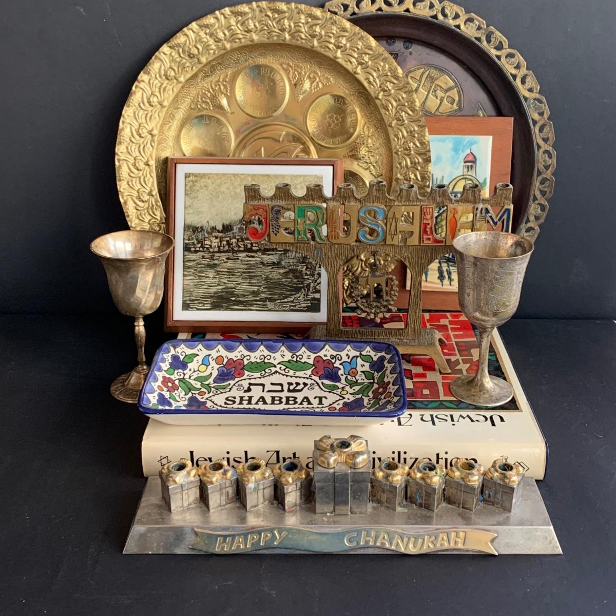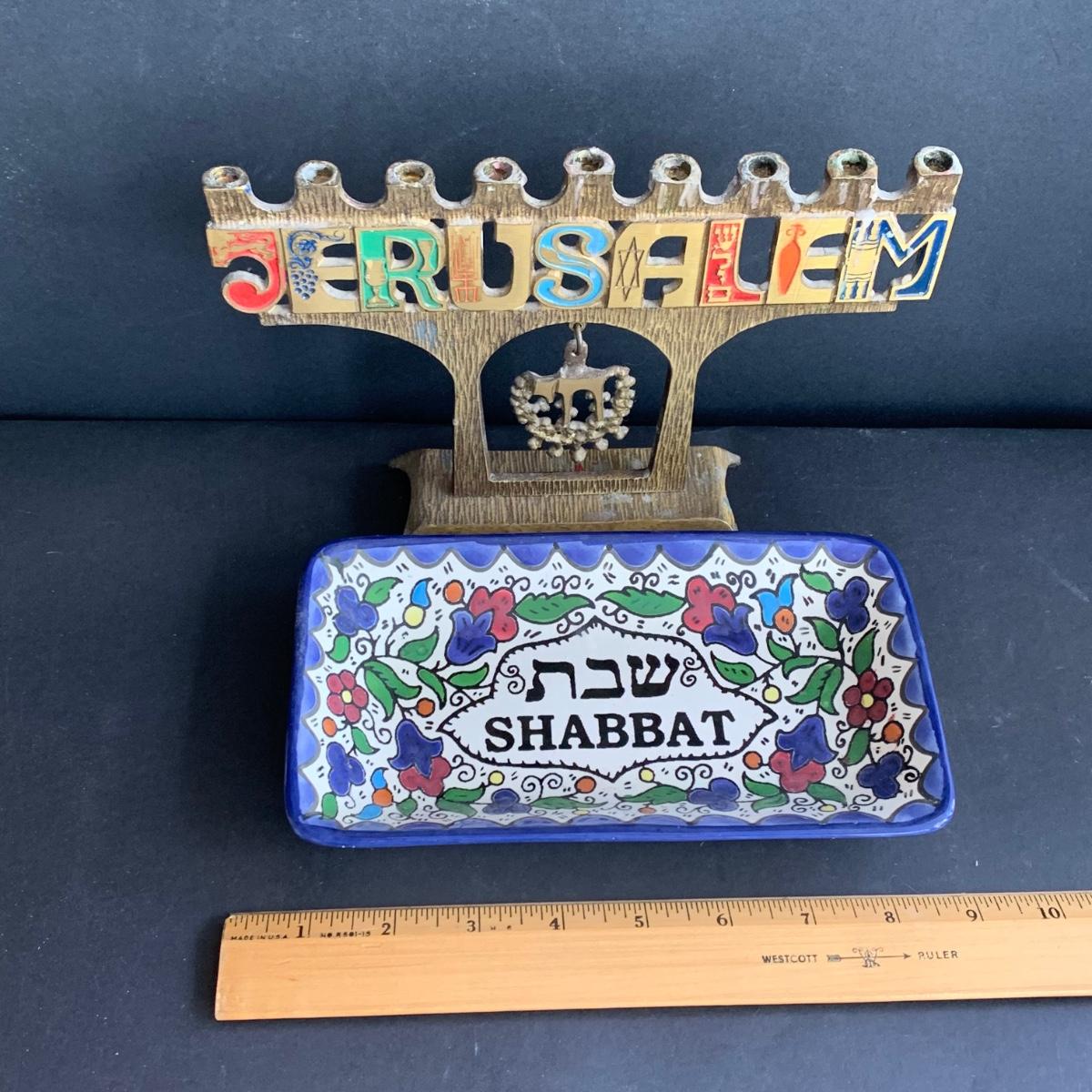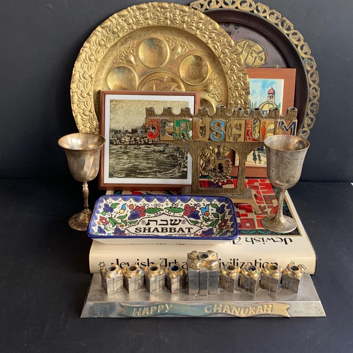 LOT 64: Vintage Hand-Painted in Israel Tiles along w/Religious & Cultural Menorahs, Cups, Trays & More