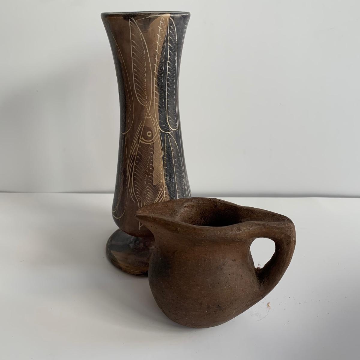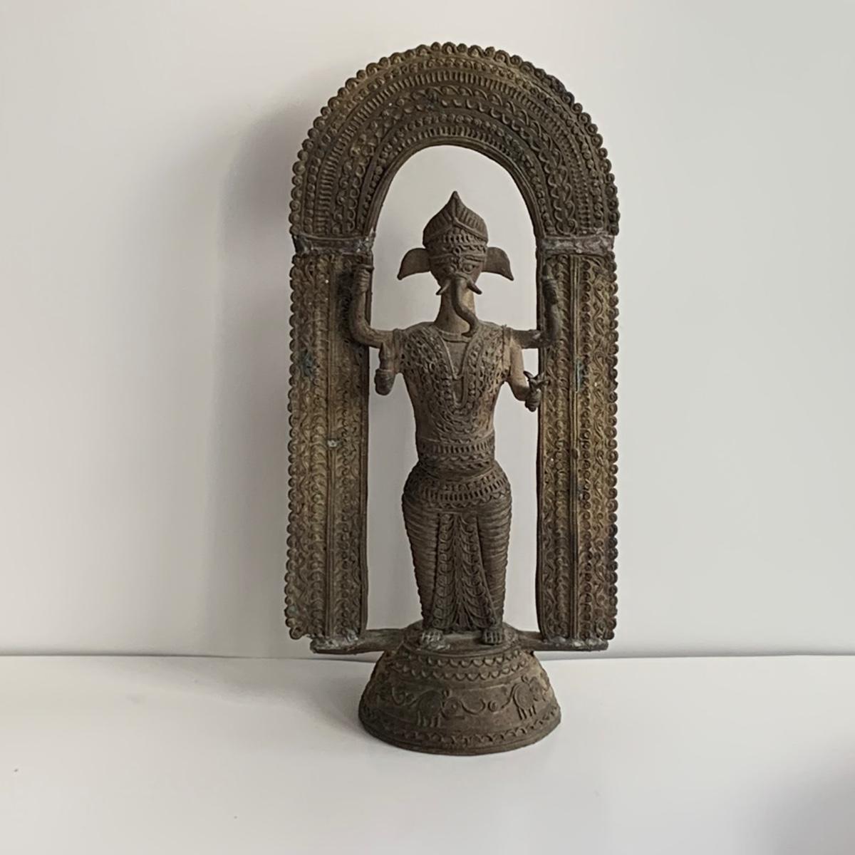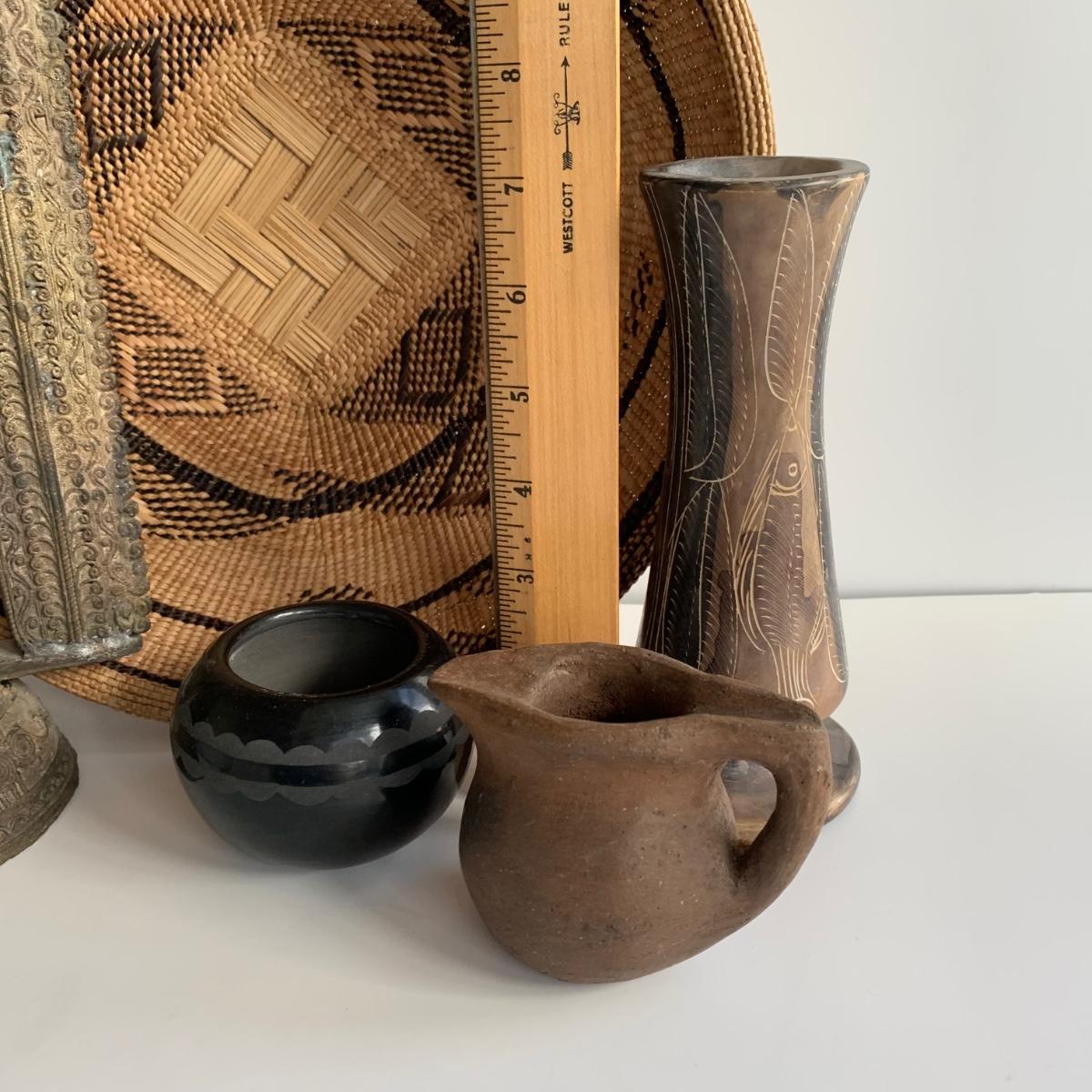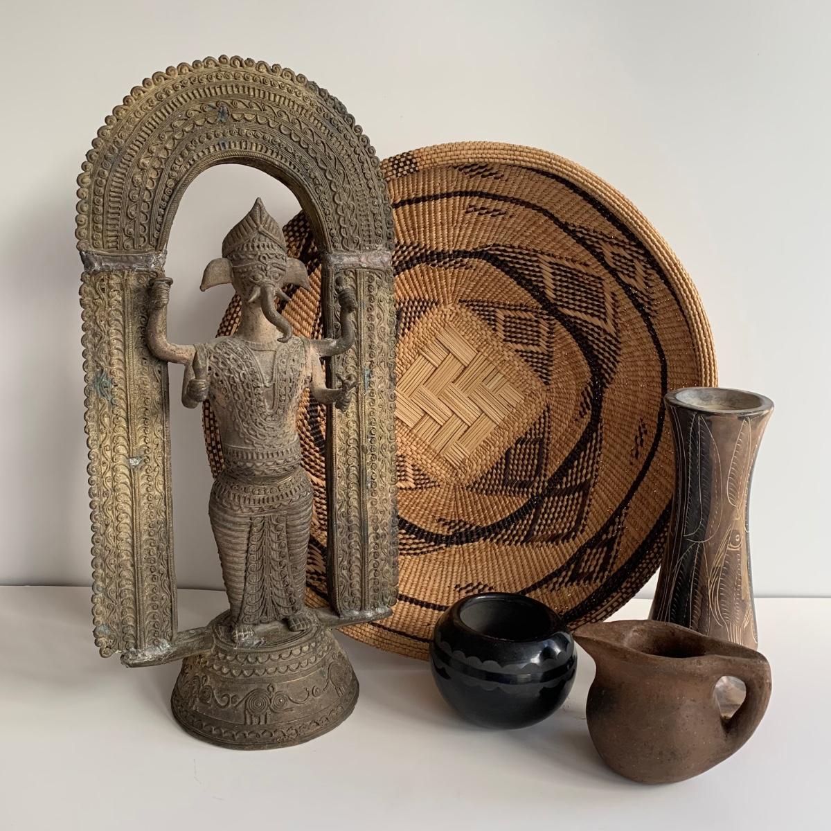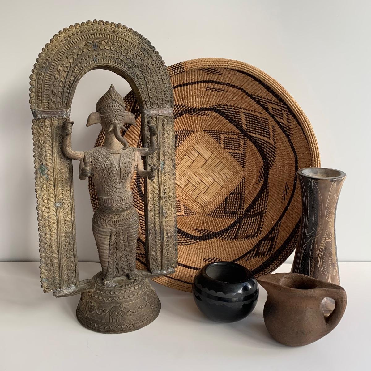 LOT 67: Ganesh Statue, Large Woven Basket & Pottery Pieces