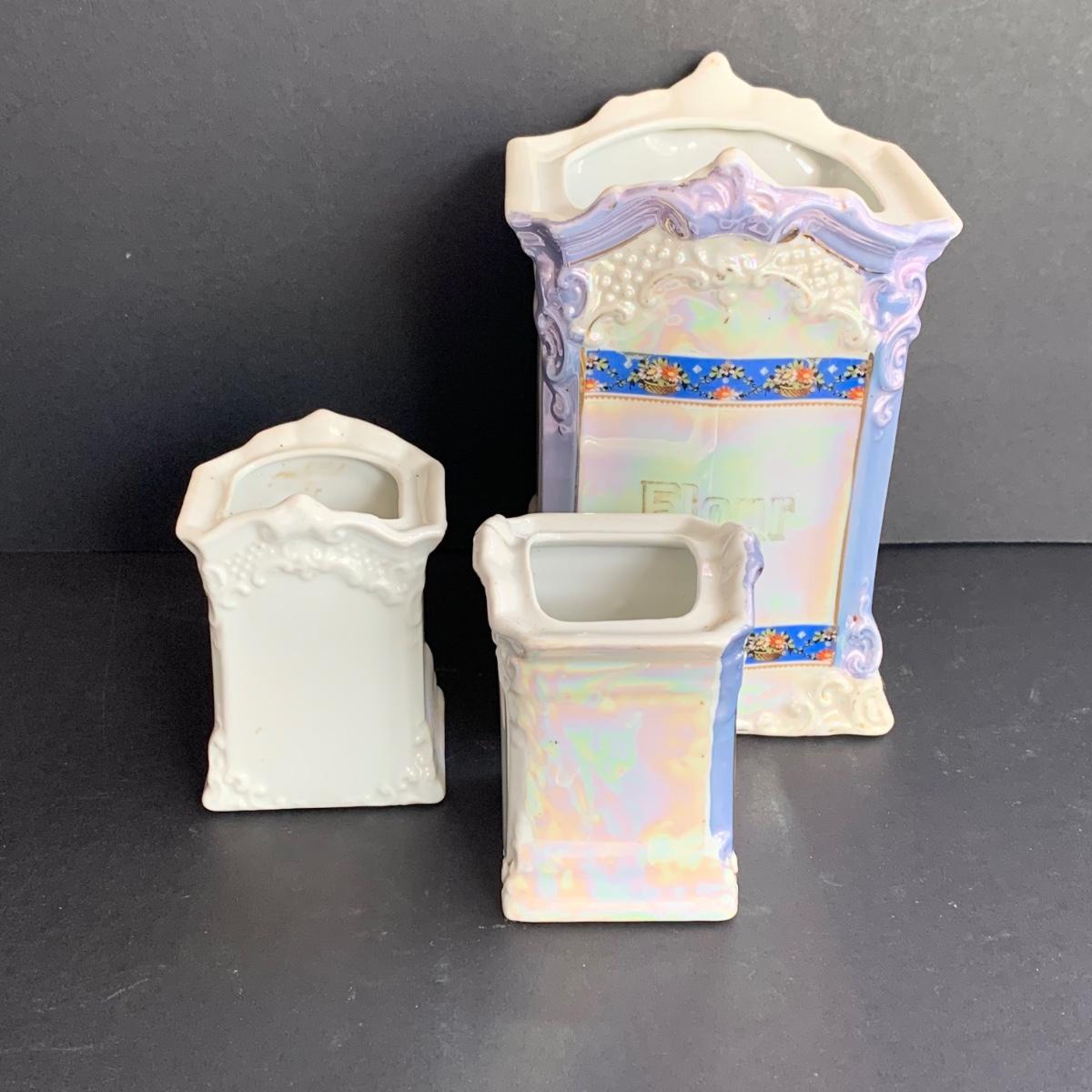 LOT 68: Vintage Mepoco Germany Pearl Iridescent Luster Ware Canisters