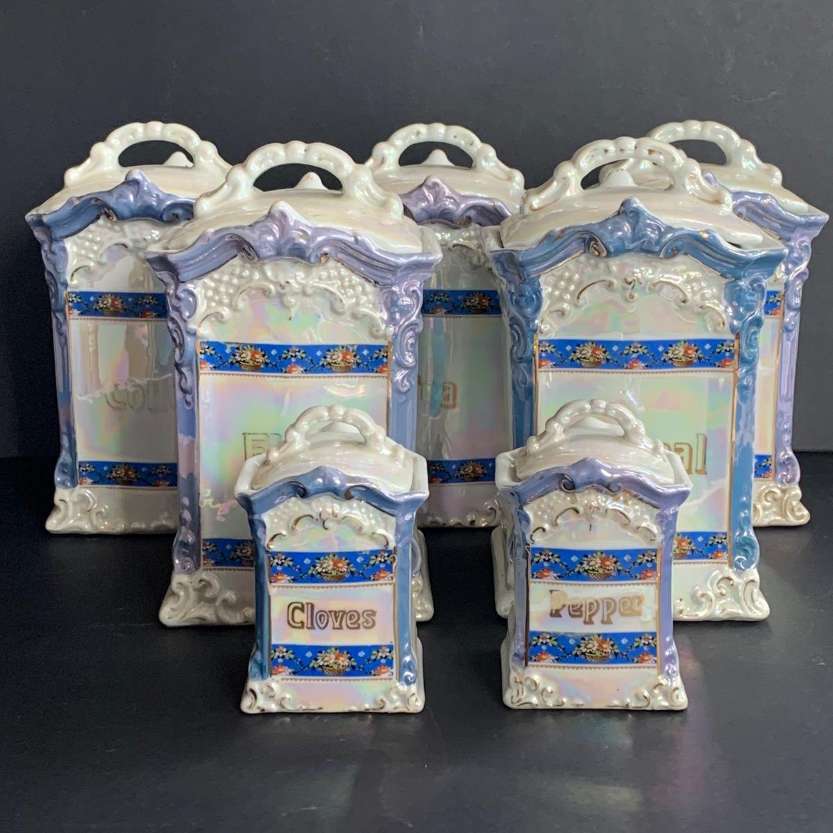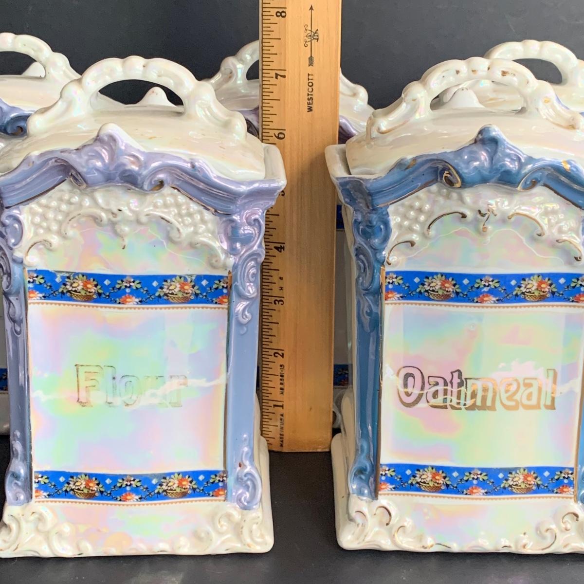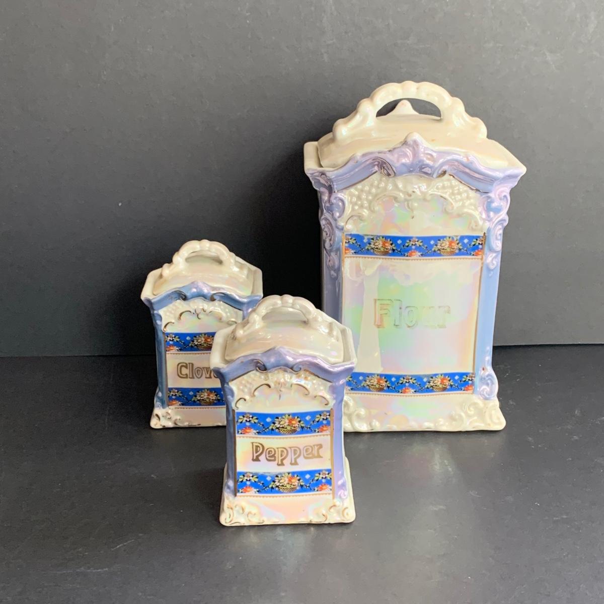 LOT 68: Vintage Mepoco Germany Pearl Iridescent Luster Ware  Canisters