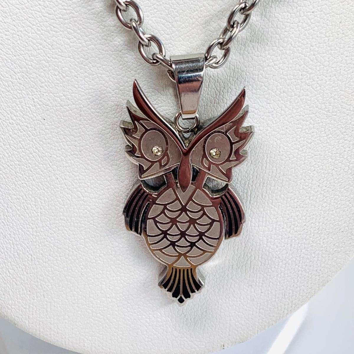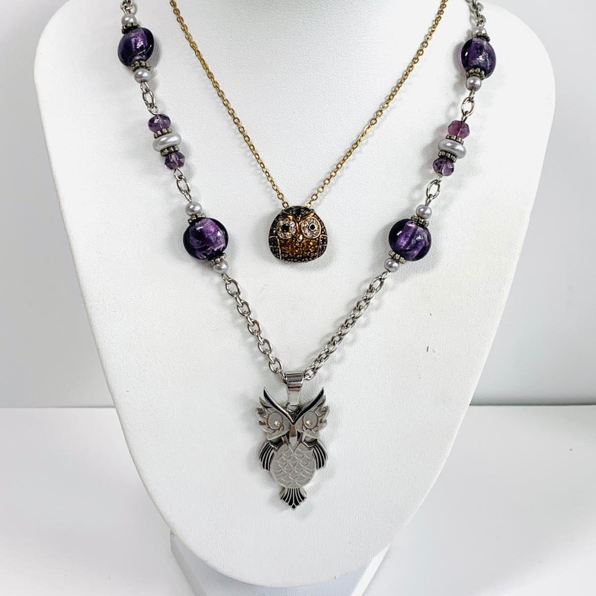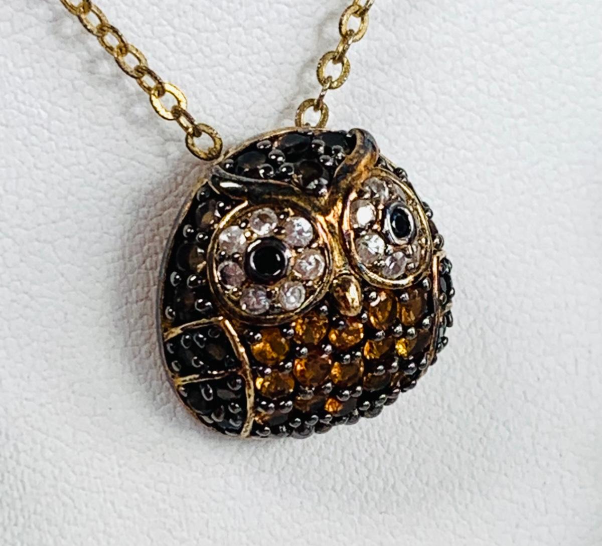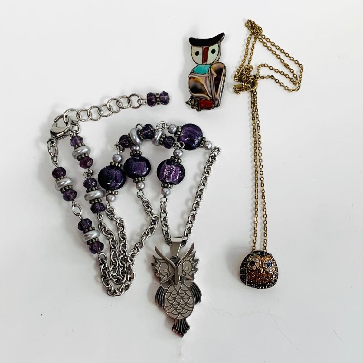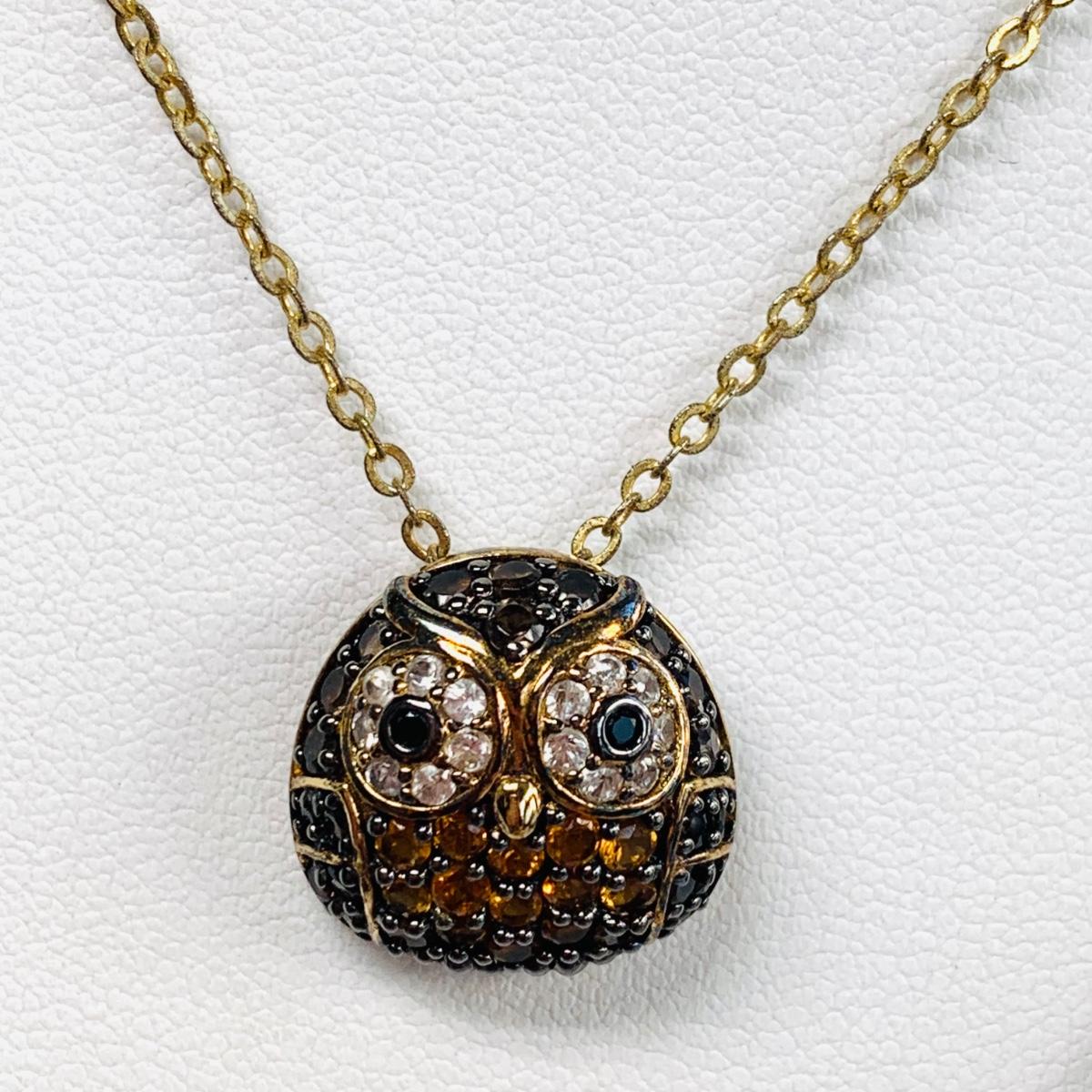 LOT 79: Owl Collection: JD 925 Rhinestone Necklace, Silver Tone Necklace & Enamel Pin