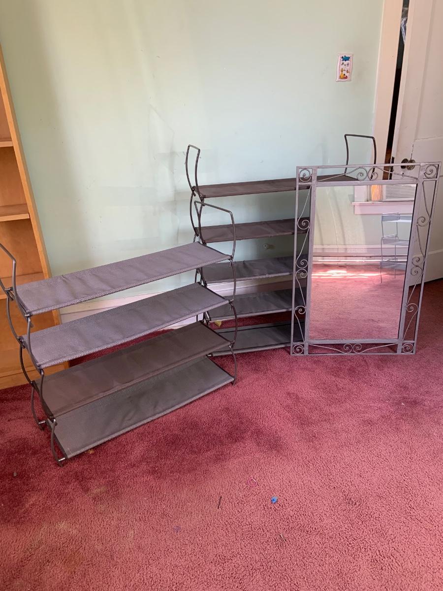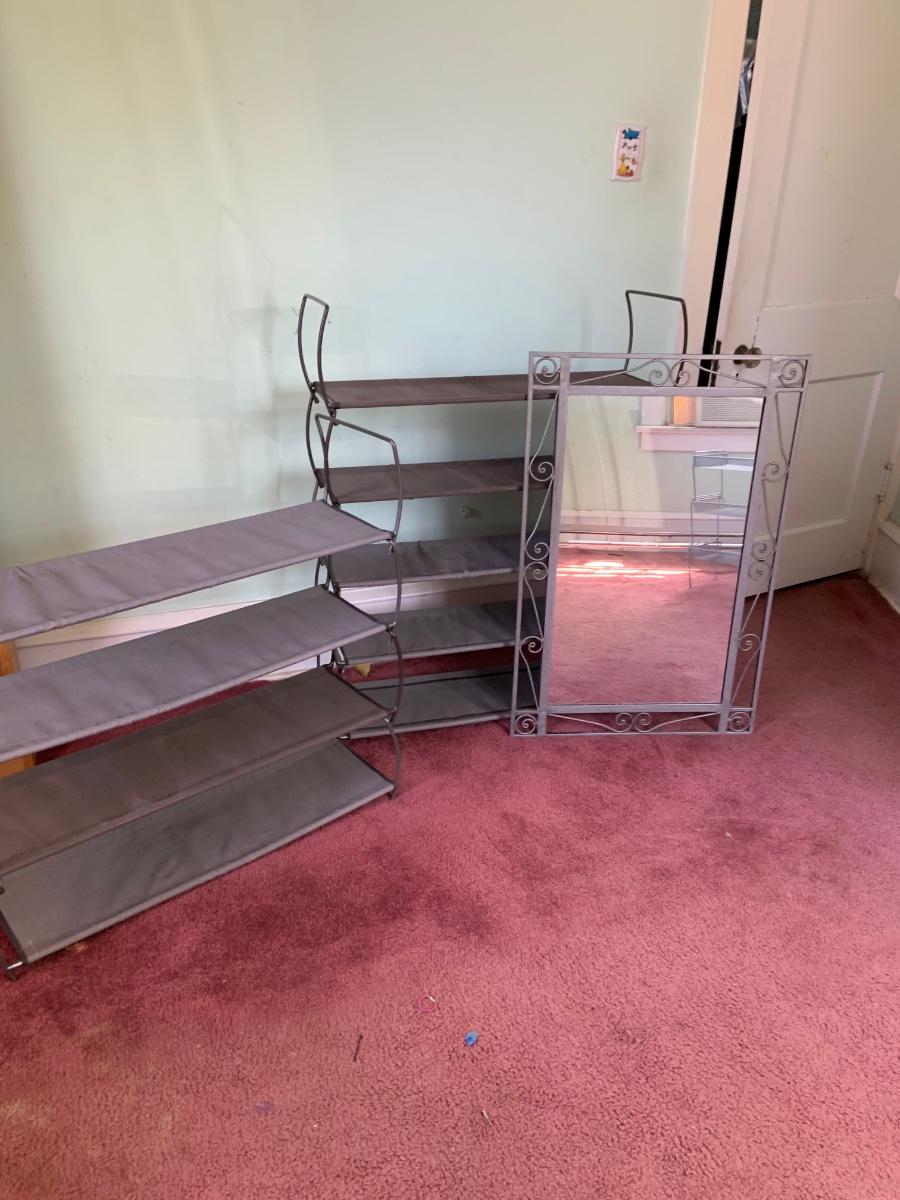 LOT:165G:  Wall Mirror and Shoe Racks