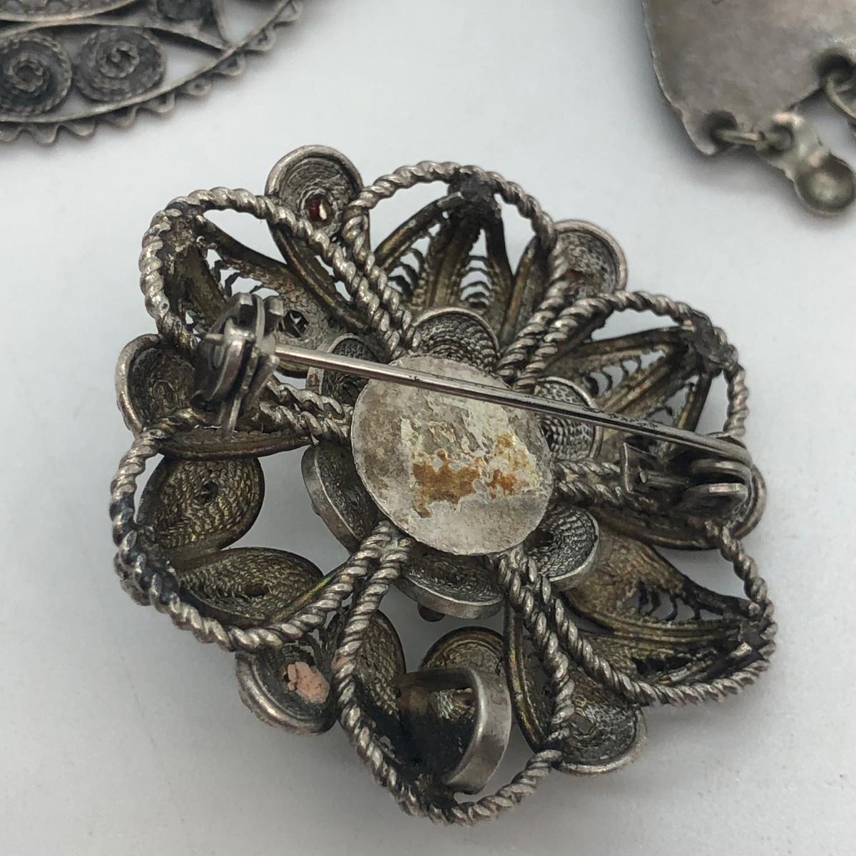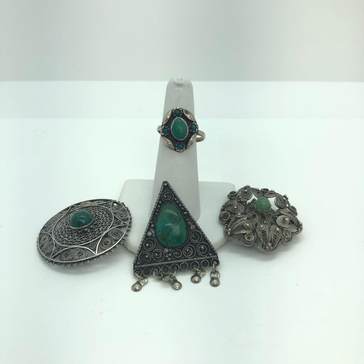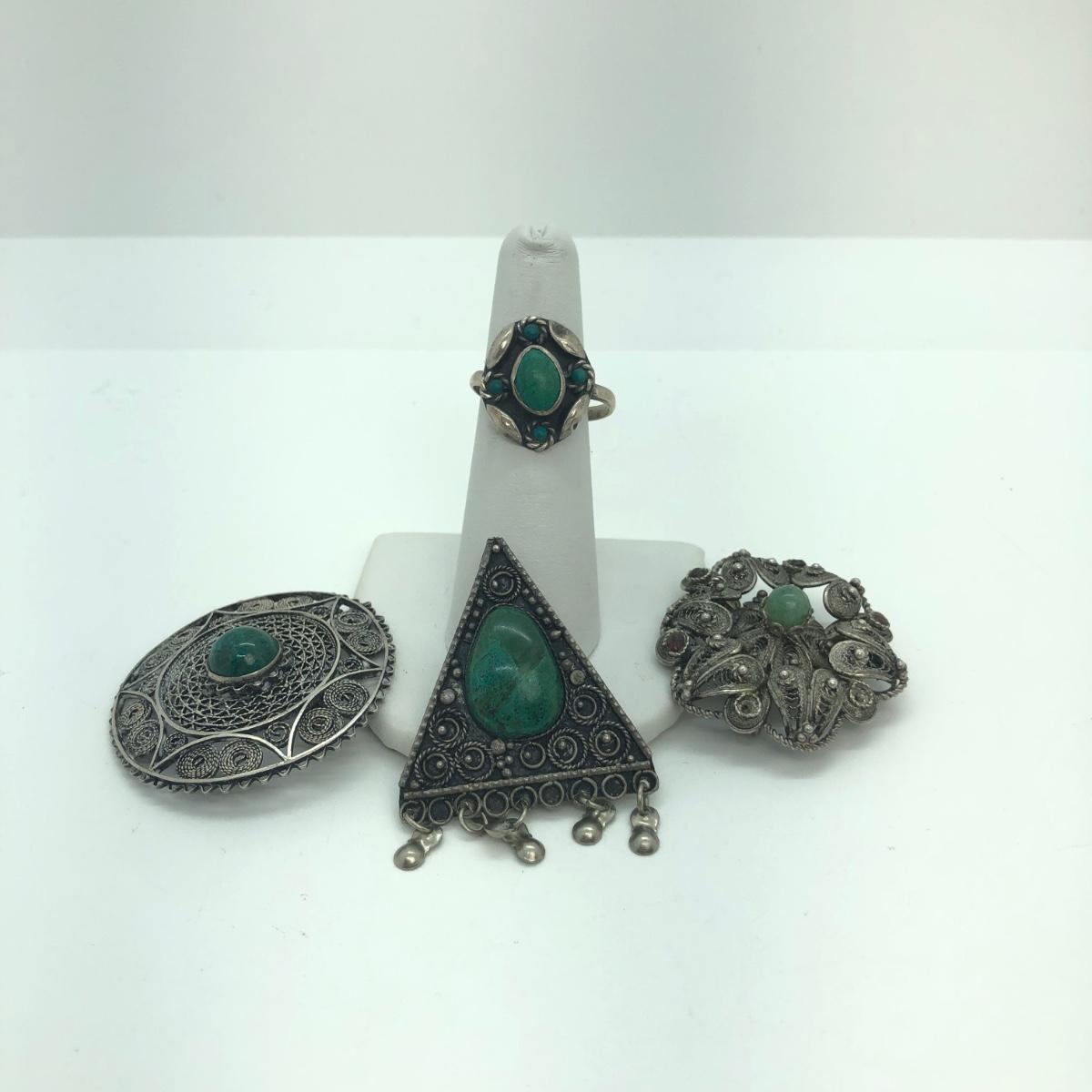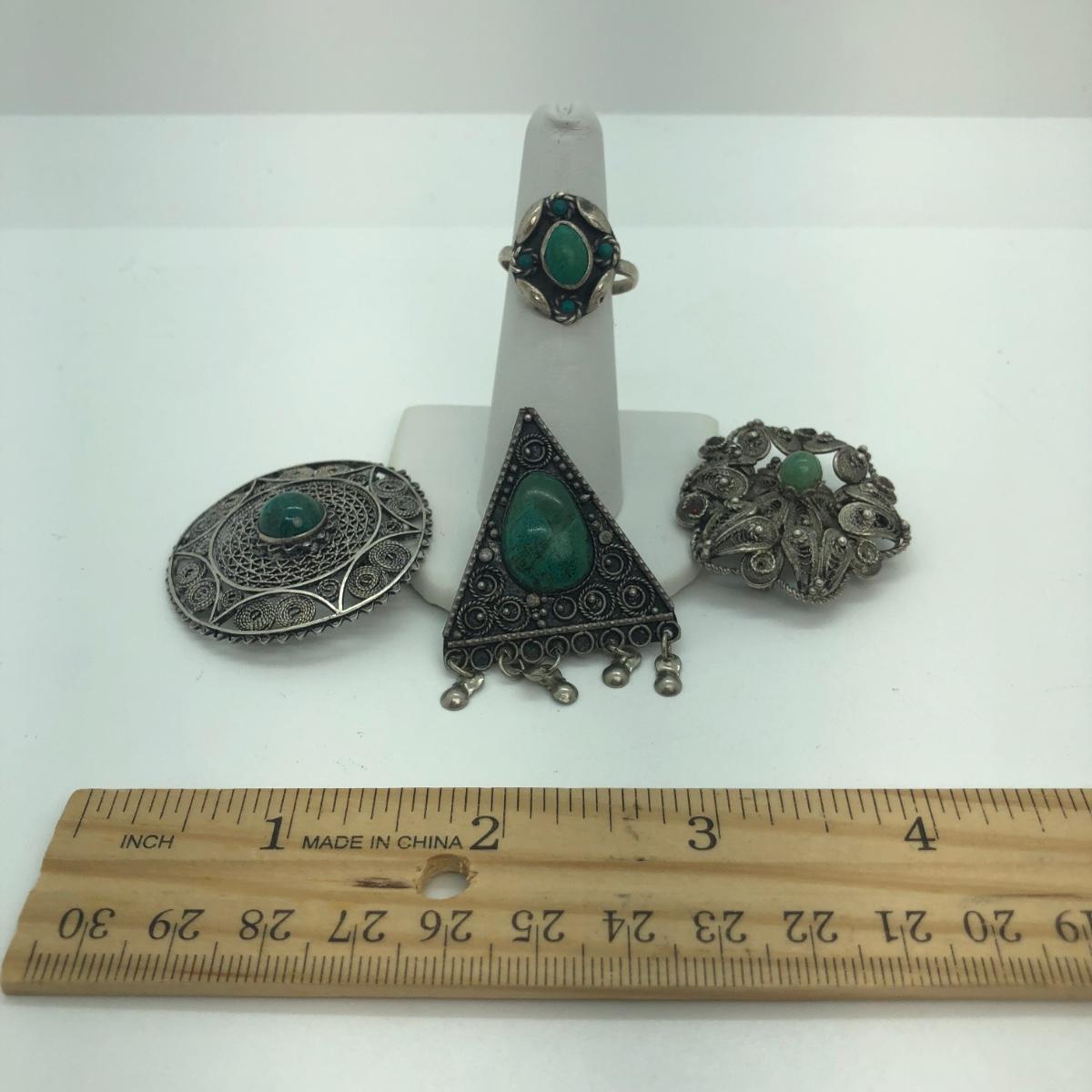 Includes 3 brooches & a ring.