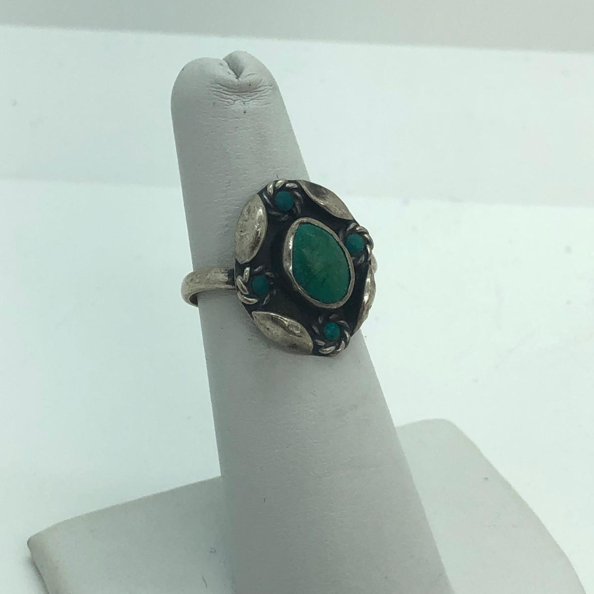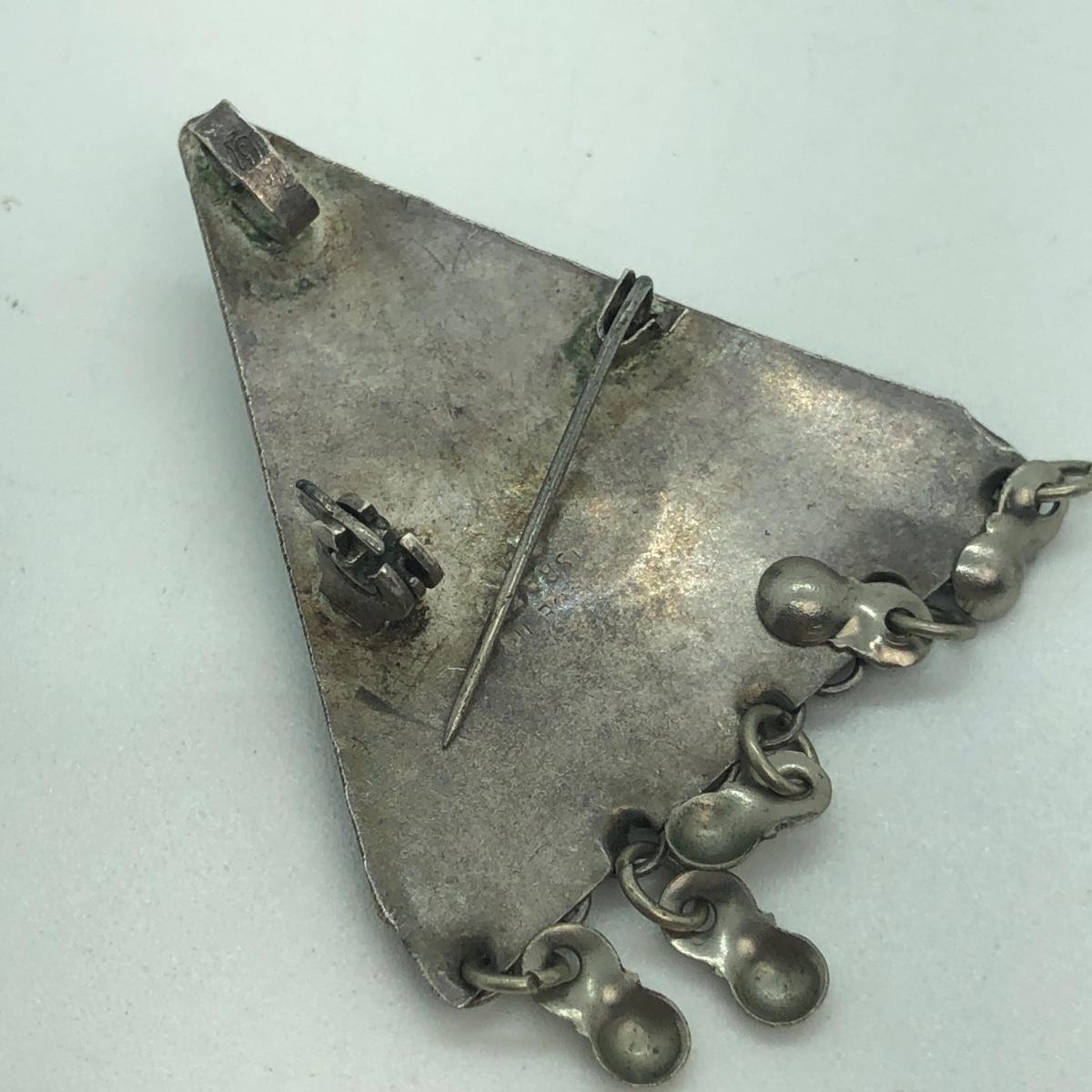 LOT 90M: Sterling Silver Brooches & Ring w/ Green Gemstones