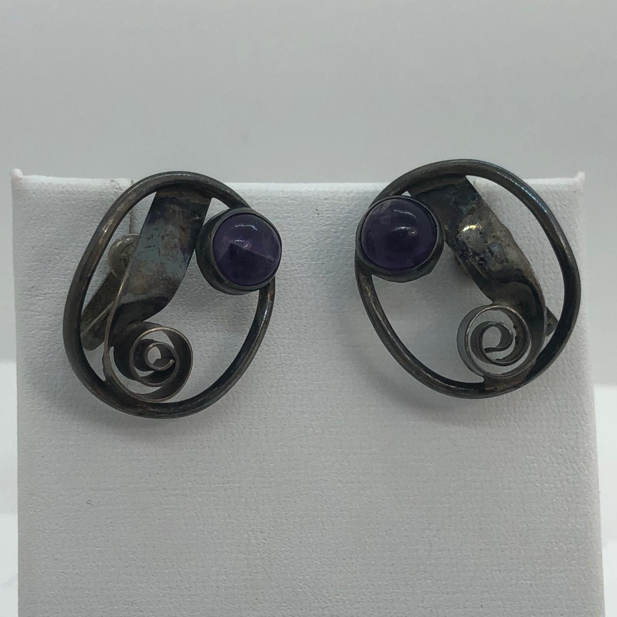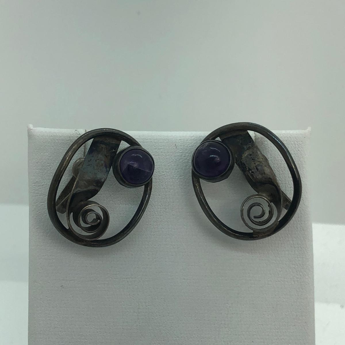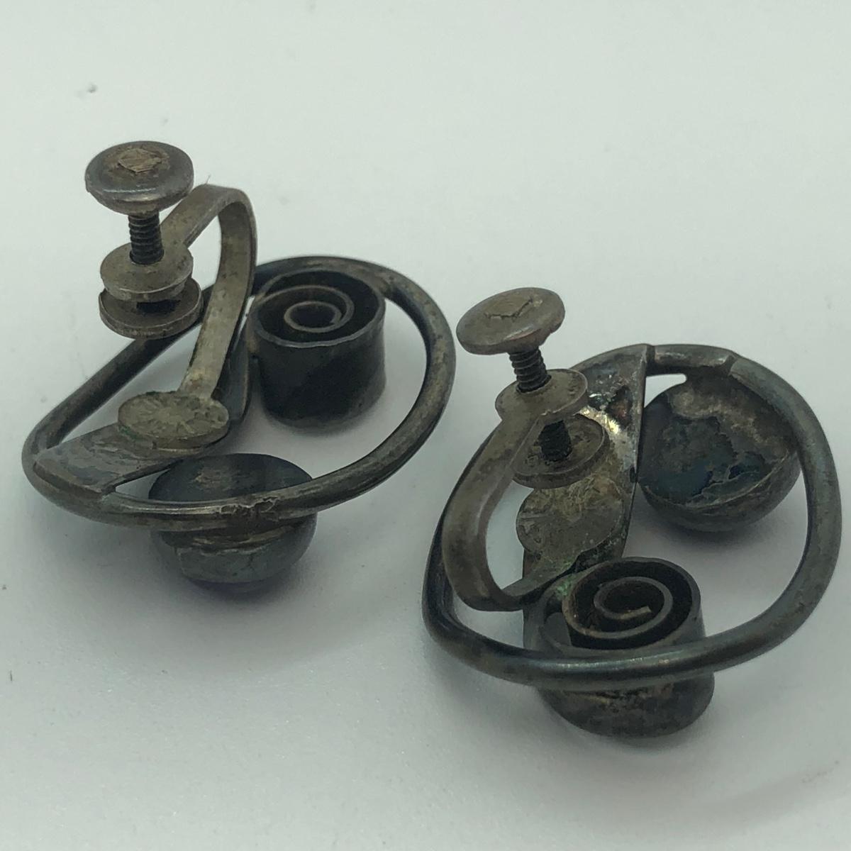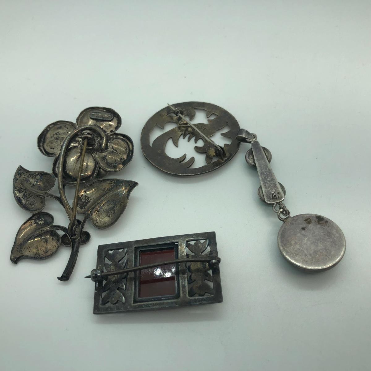 LOT 92M: Silver Screwback Earrings, Silver Brooches, Bracelet & Aqua Pendant
