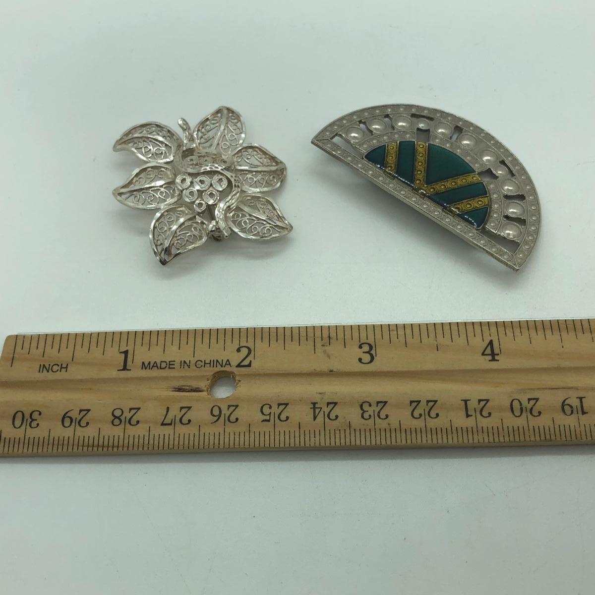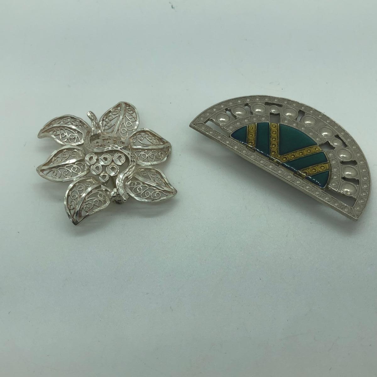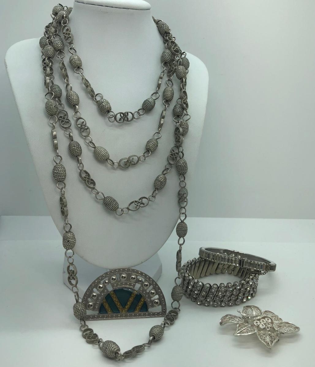 LOT 97M: Long Silvertone Necklace, Bracelets & Brooches
