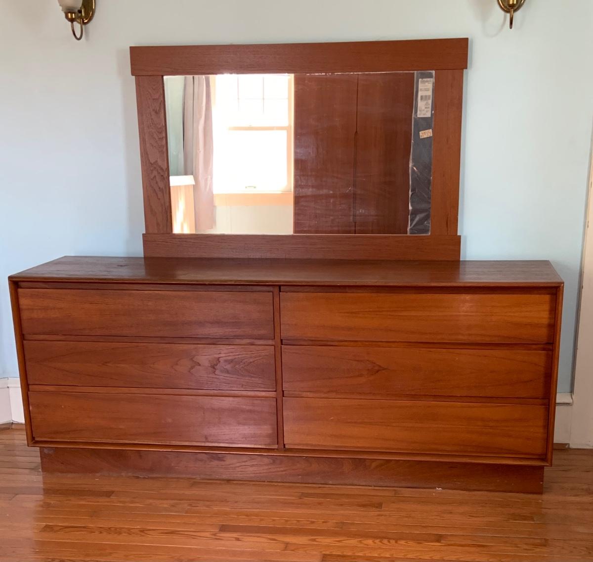 The dresser measures 72”x 19”x 29” and the Frame of the Mirror is 47”x 20”Please see all pictures as they are the best representation of the items. The pictures show condition, measurements if taken, and what is included in the lot. Due to the large amount that we photograph and the time frame, we are not always able to take measurements. All items unless noted, are pre-owned and have been used. If you purchased furniture, you must bring help. We do not allow one person to carry large furniture out on their own. Bring help, tools and a truck for the safety of our client’s homes, and your personal safety. Any damages that result to the property including walls, and floors due to moving of the furniture will be charged to the buyer. Company policy. Thank you.