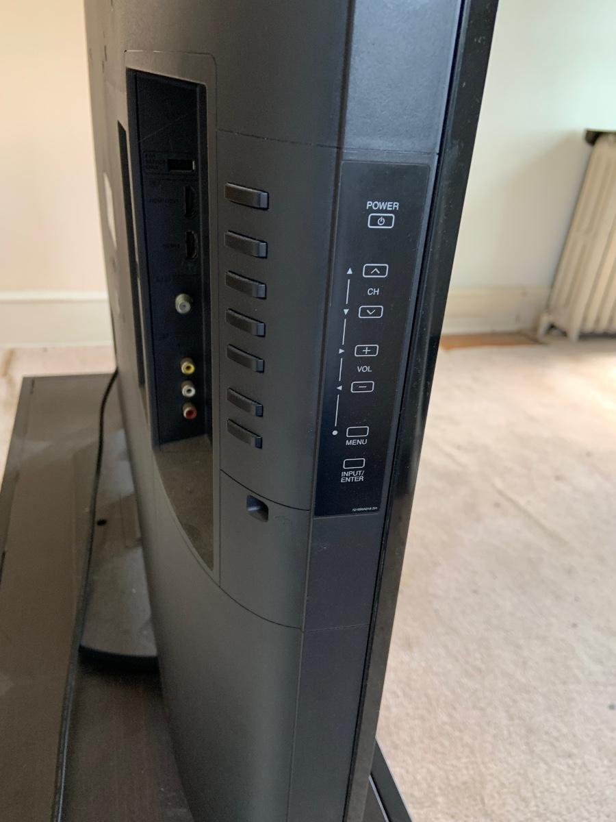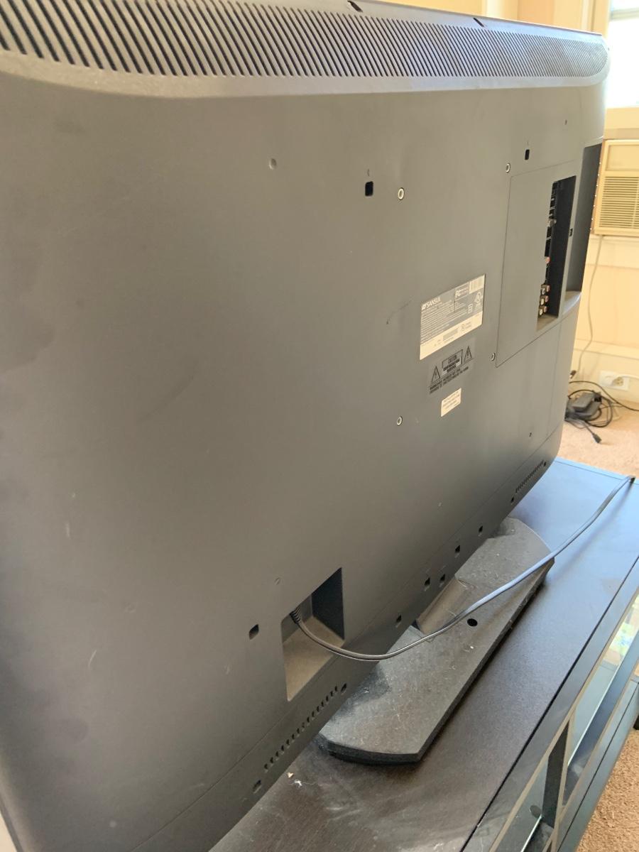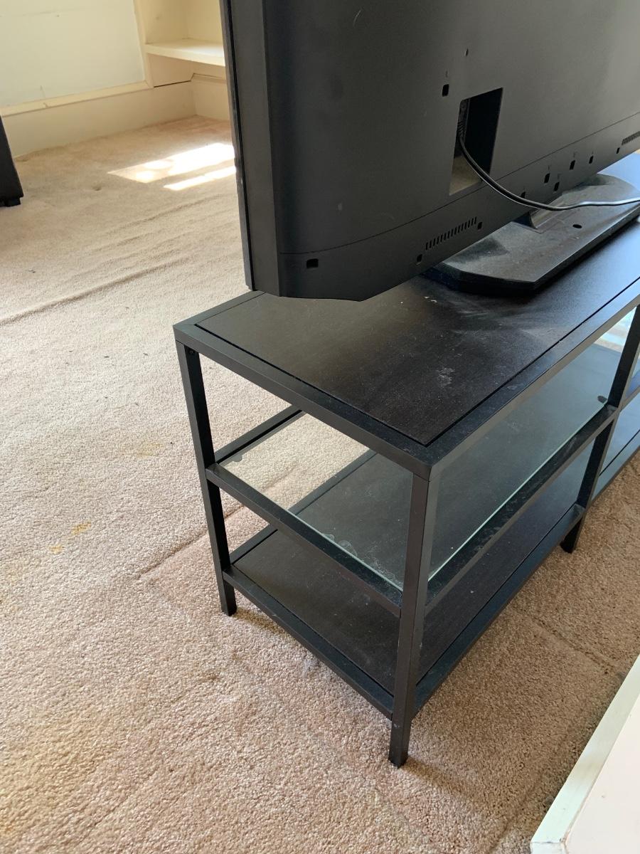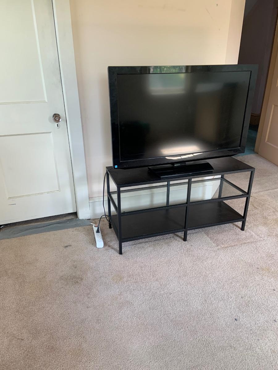 The TV Shelf measures 40”x 15” x21”. The TV may not have a remote control Please see all pictures as they are the best representation of the items. The pictures show condition, measurements if taken, and what is included in the lot. Due to the large amount that we photograph and the time frame, we are not always able to take measurements. All items unless noted, are pre-owned and have been used. If you purchased furniture, you must bring help. We do not allow one person to carry large furniture out on their own. Bring help, tools and a truck for the safety of our client’s homes, and your personal safety. Any damages that result to the property including walls, and floors due to moving of the furniture will be charged to the buyer. Company policy. Thank you.