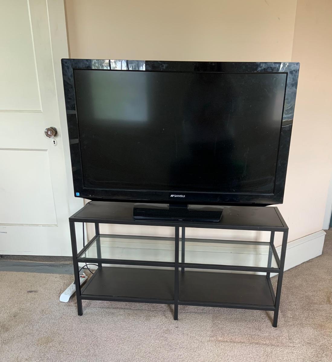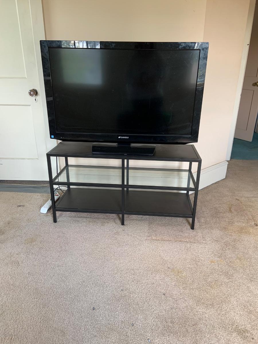 LOT:112G: 40”  Sansui Television and Stand with Glass Shelf
