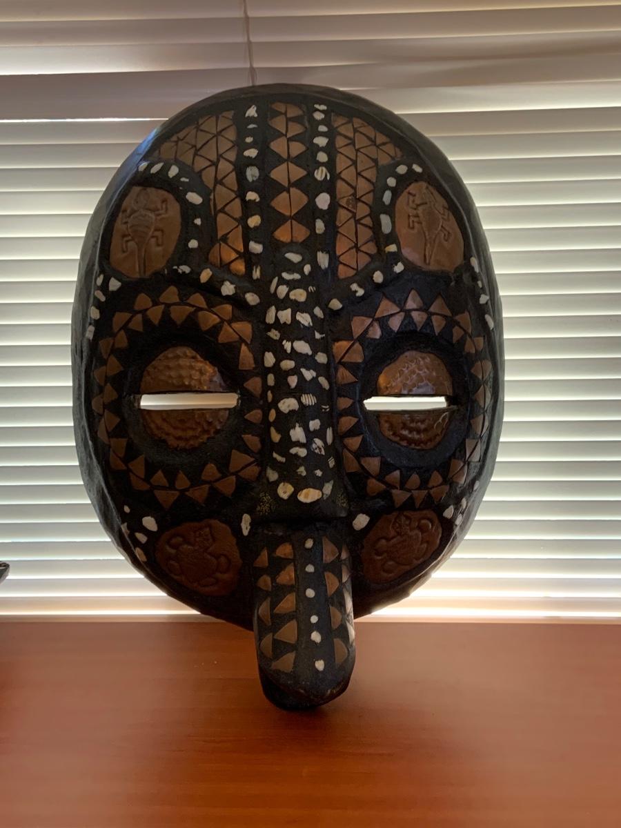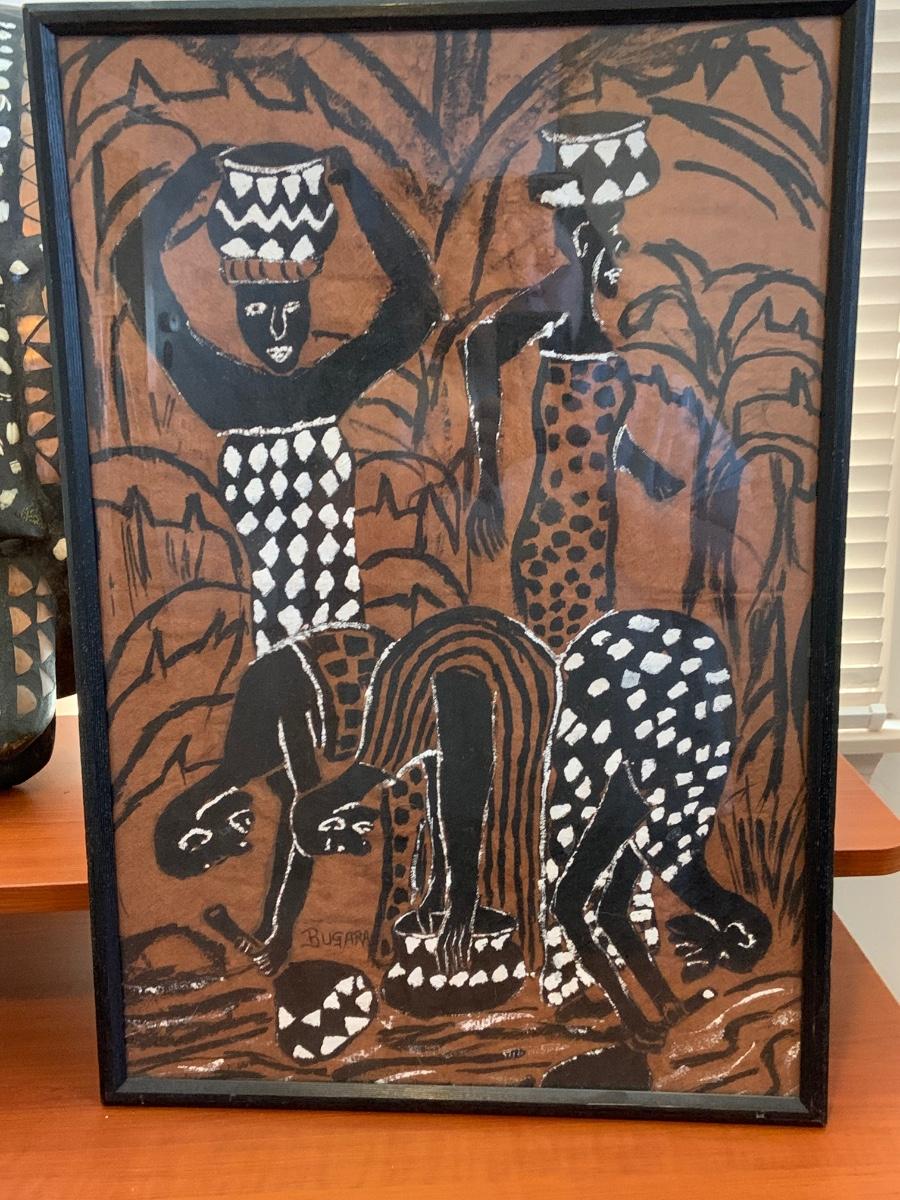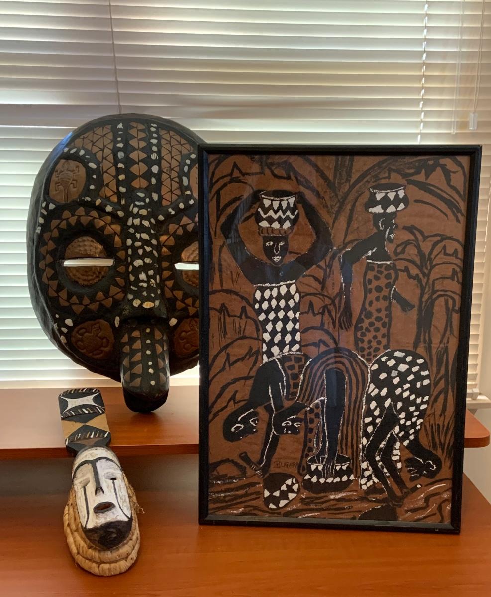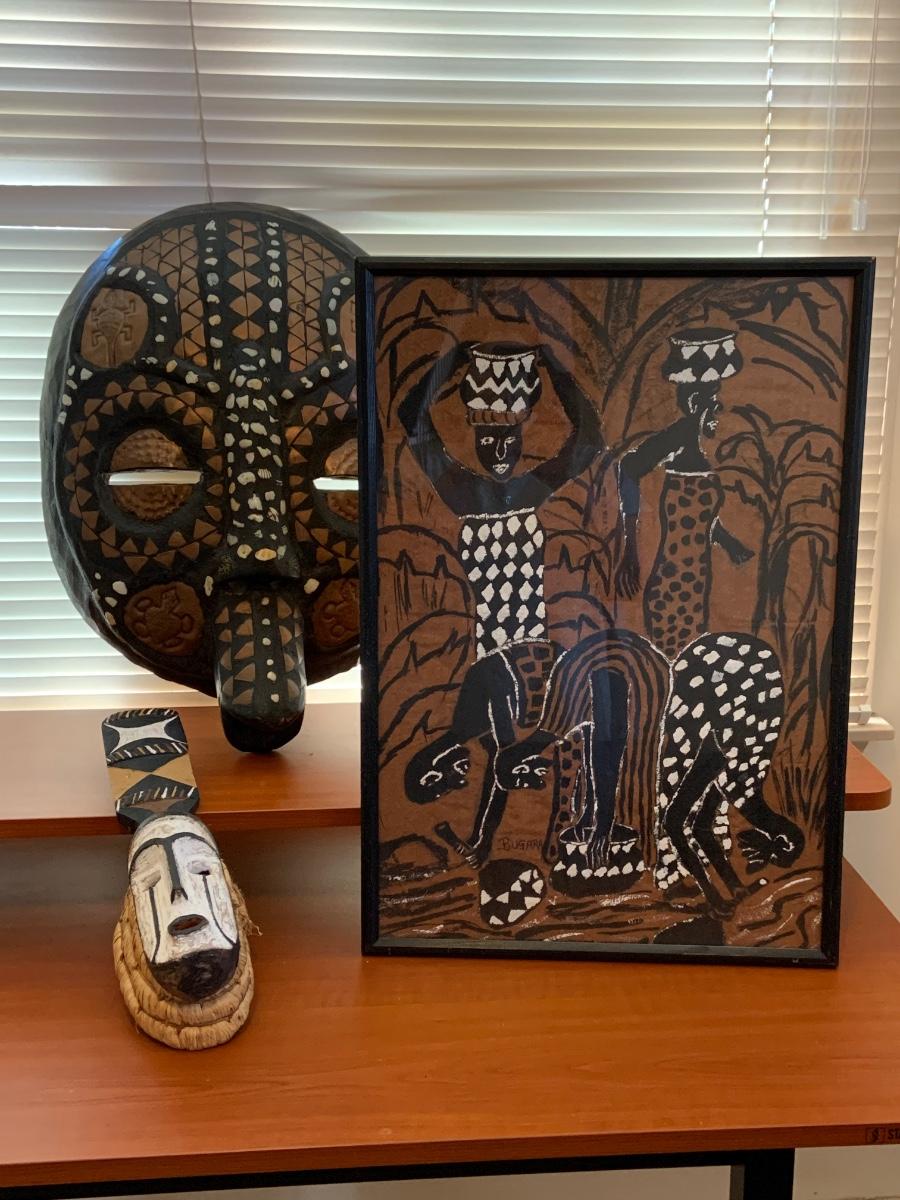 LOT:132G: African Art- 2 Wood Masks and Picture