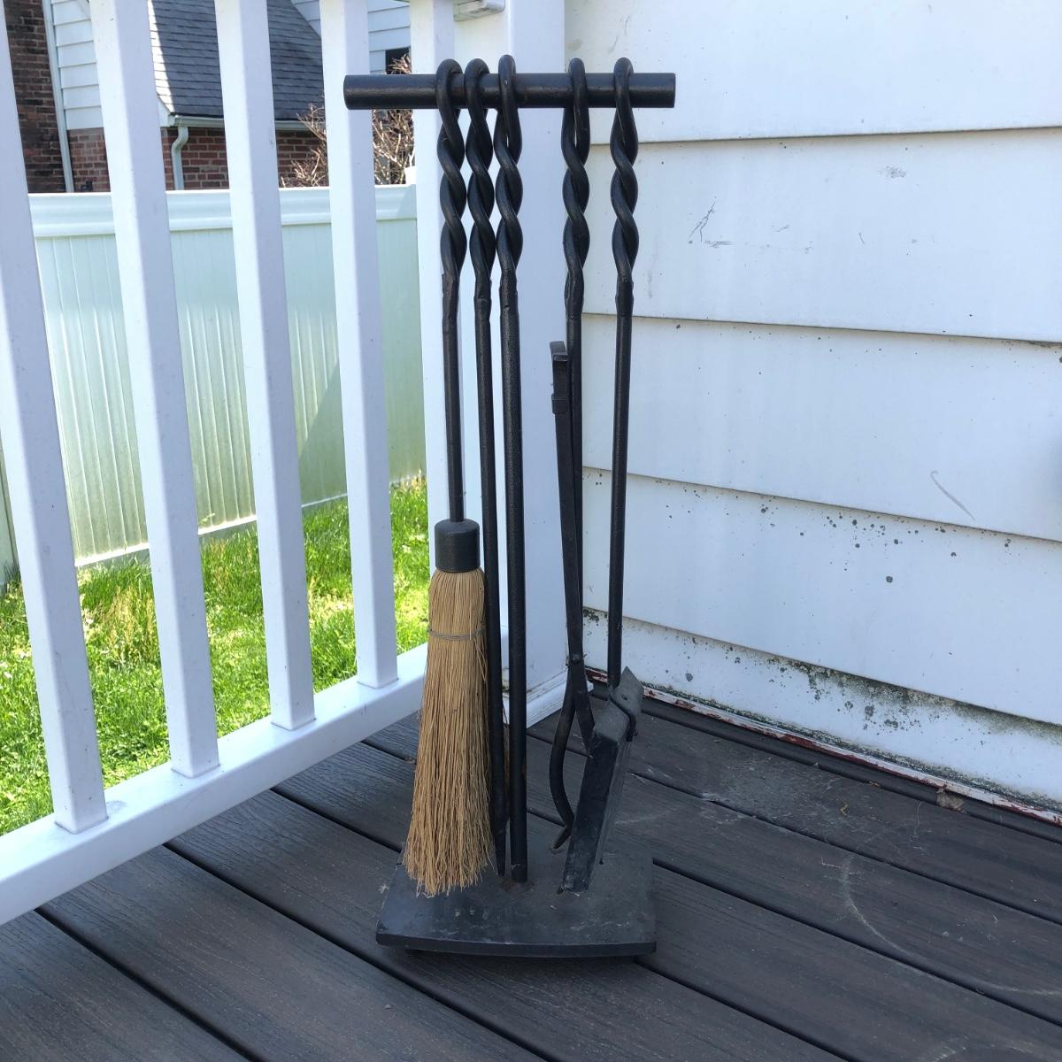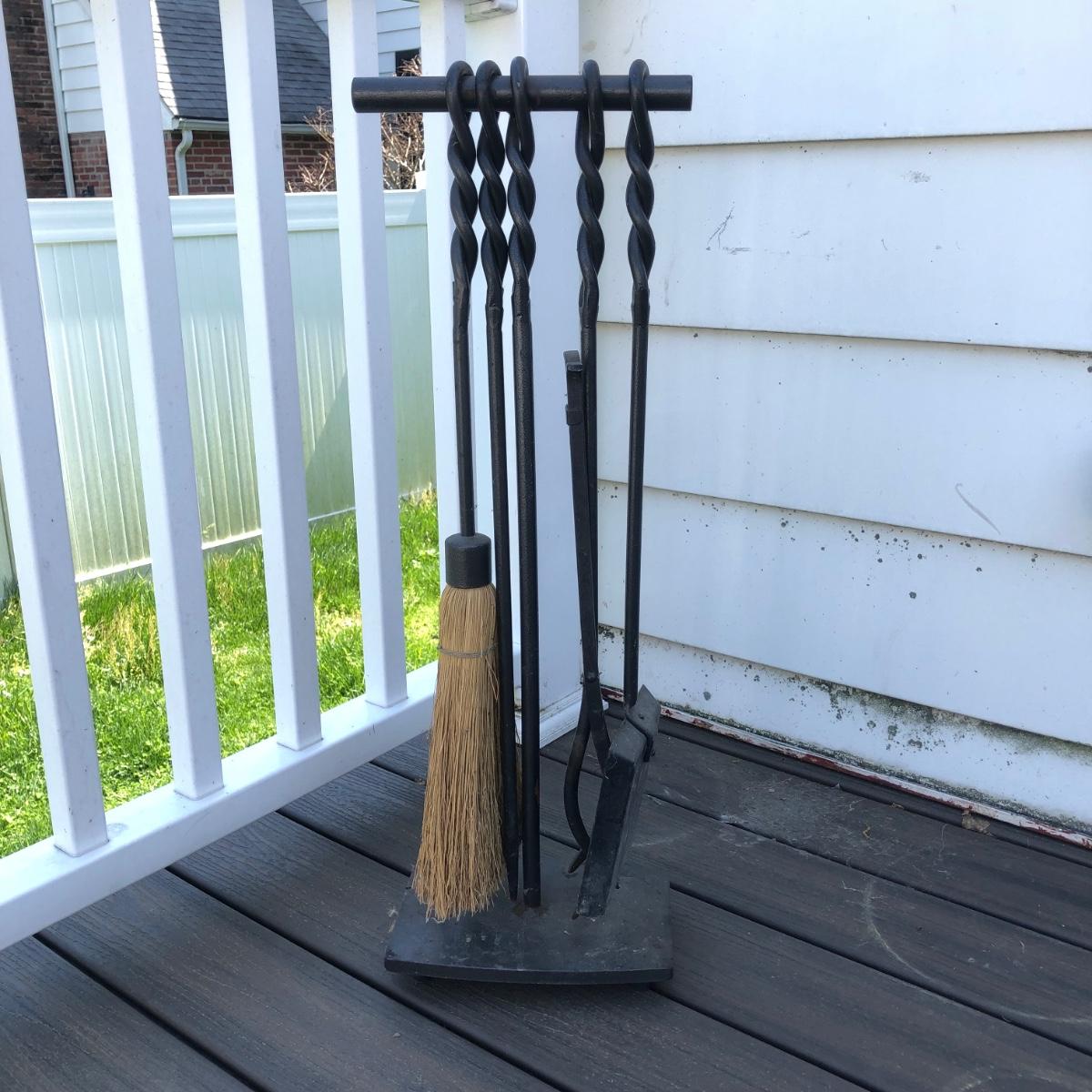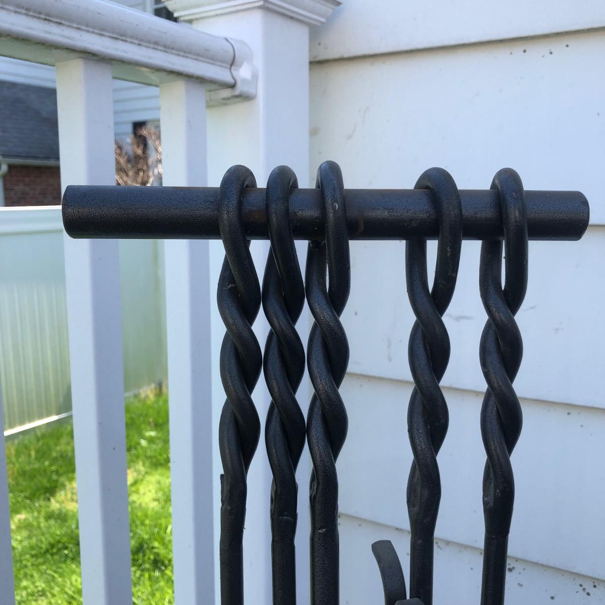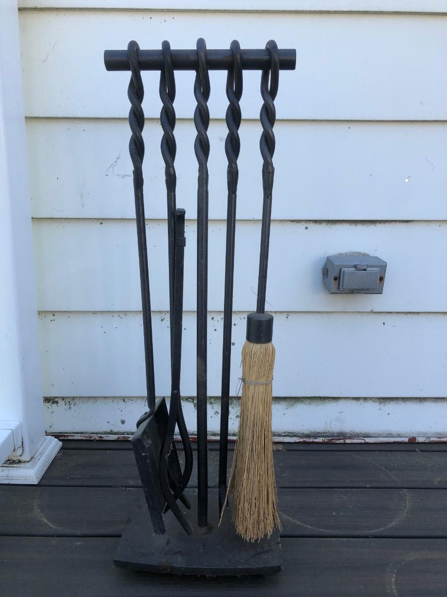 Fireplace tool rack includes four tools and is about 31 inches tall.