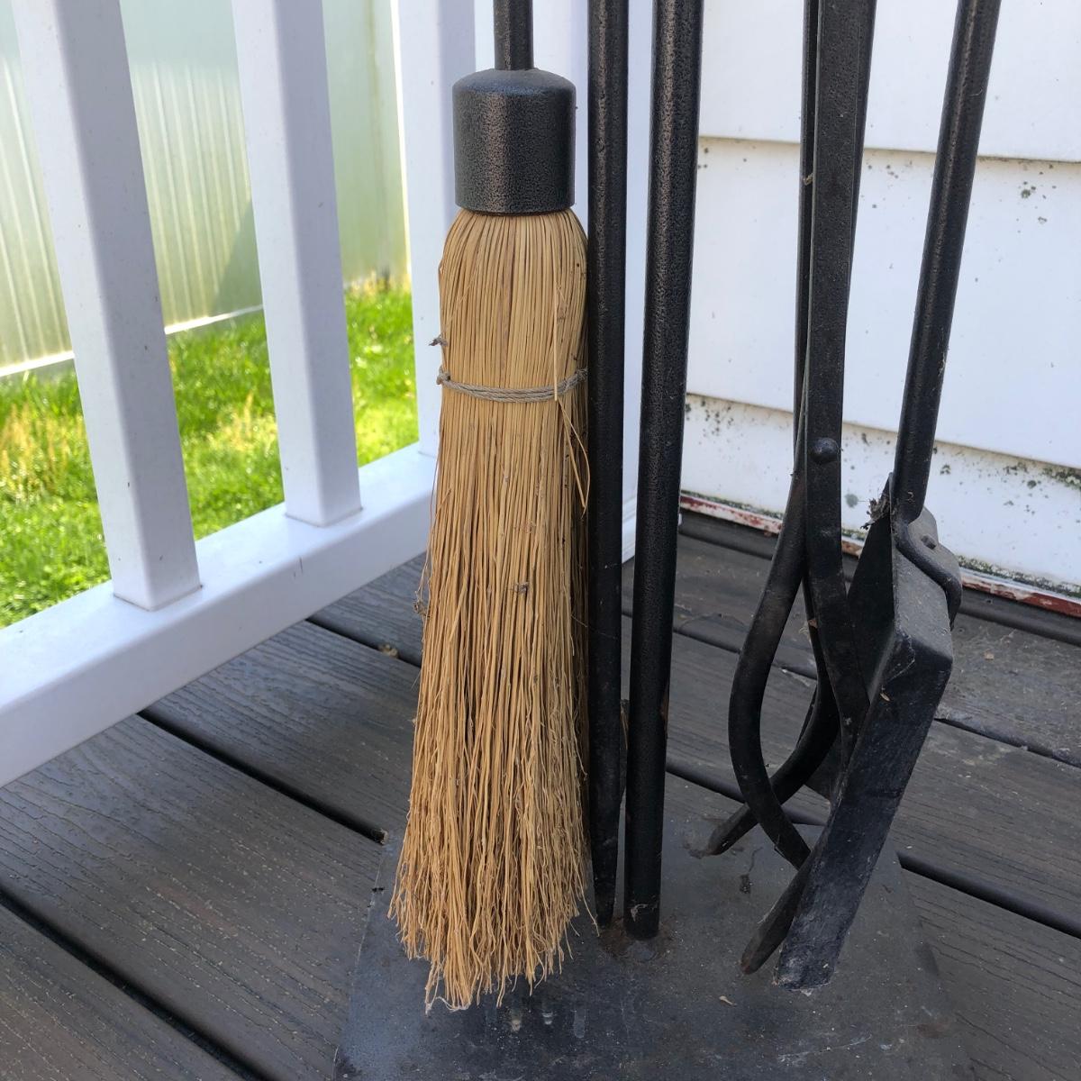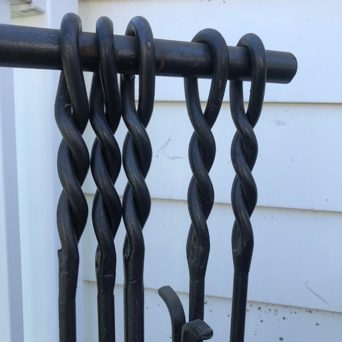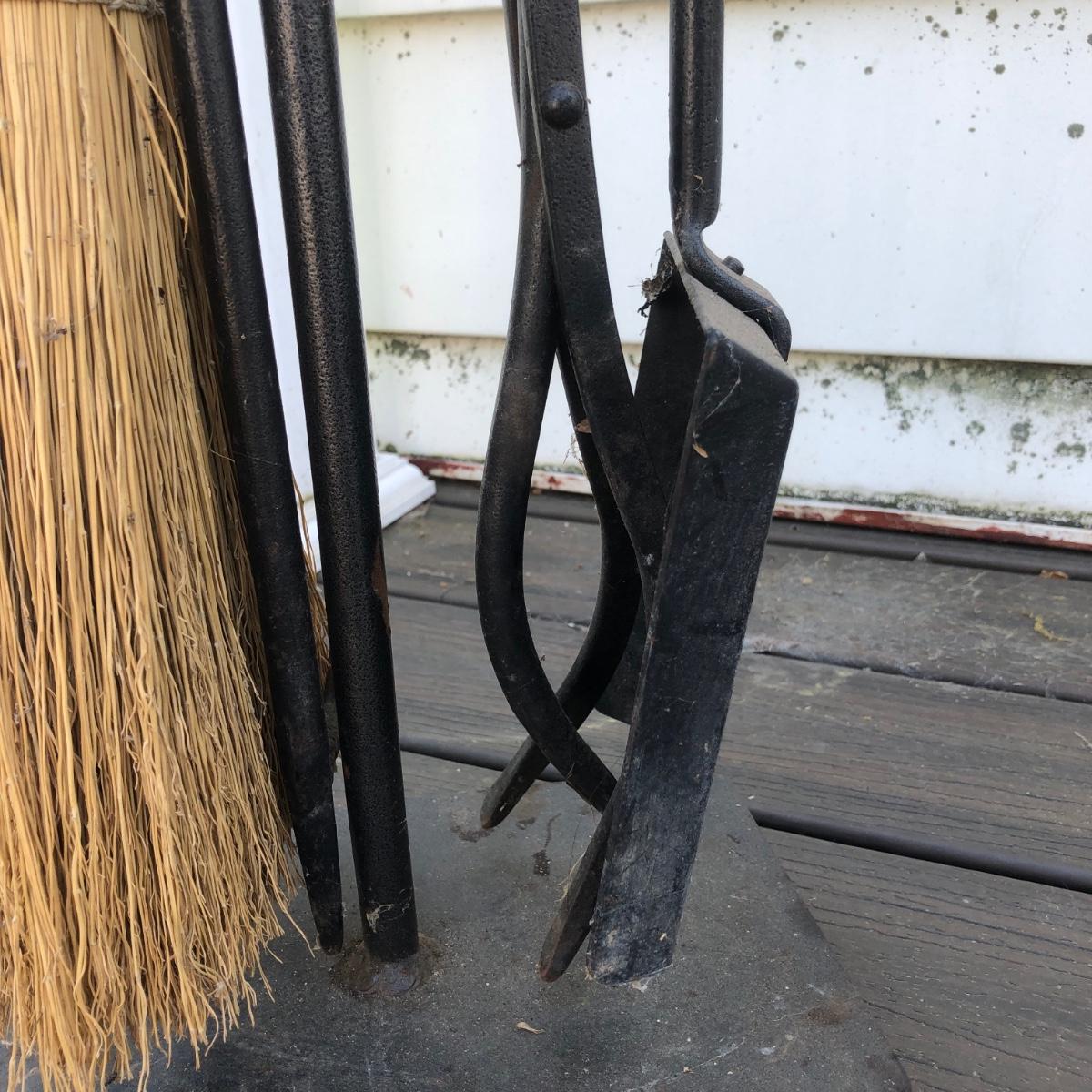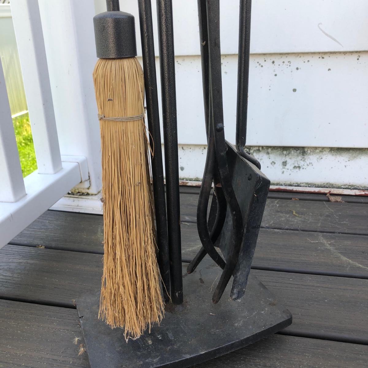 Fireplace tool rack includes four tools and is about 31 inches tall.