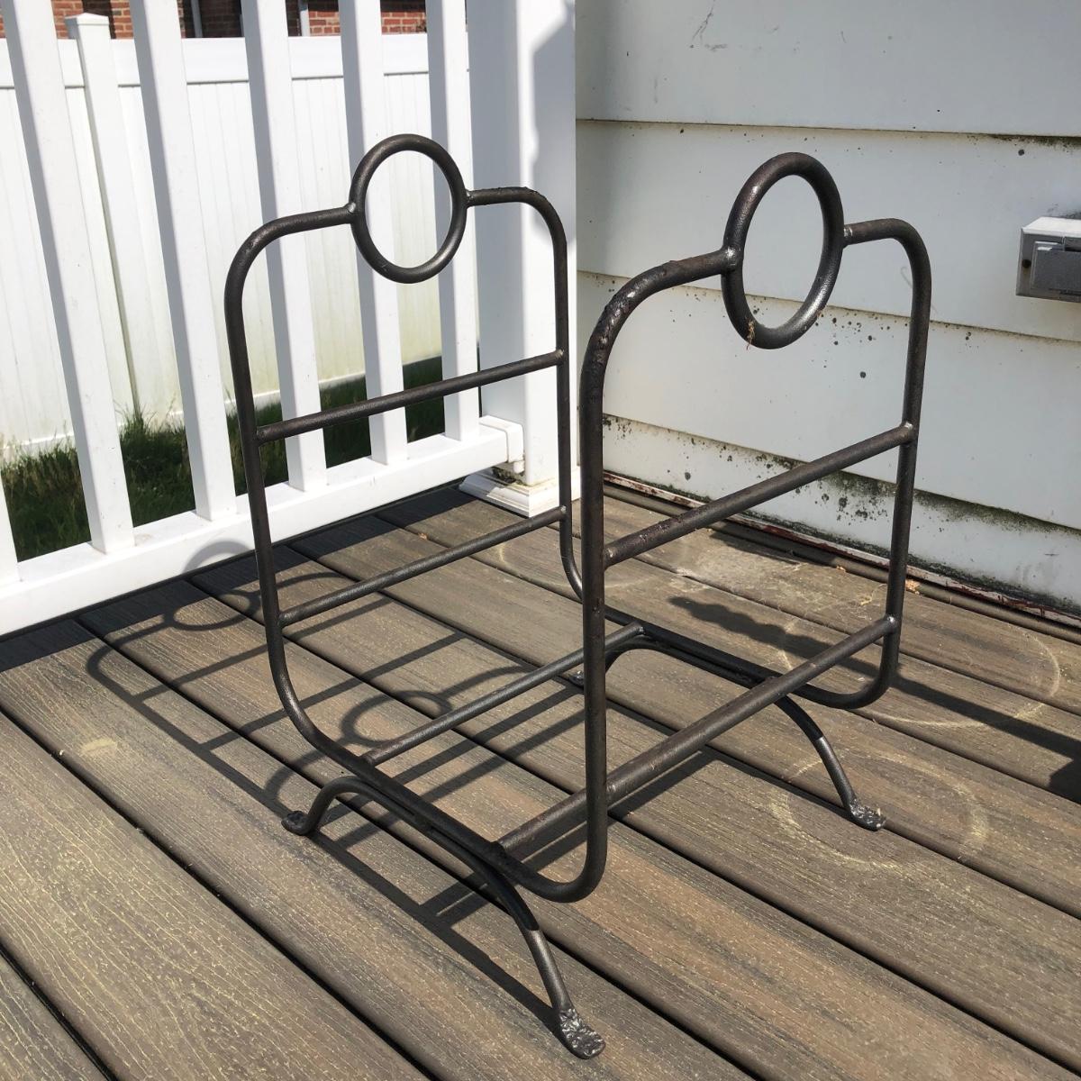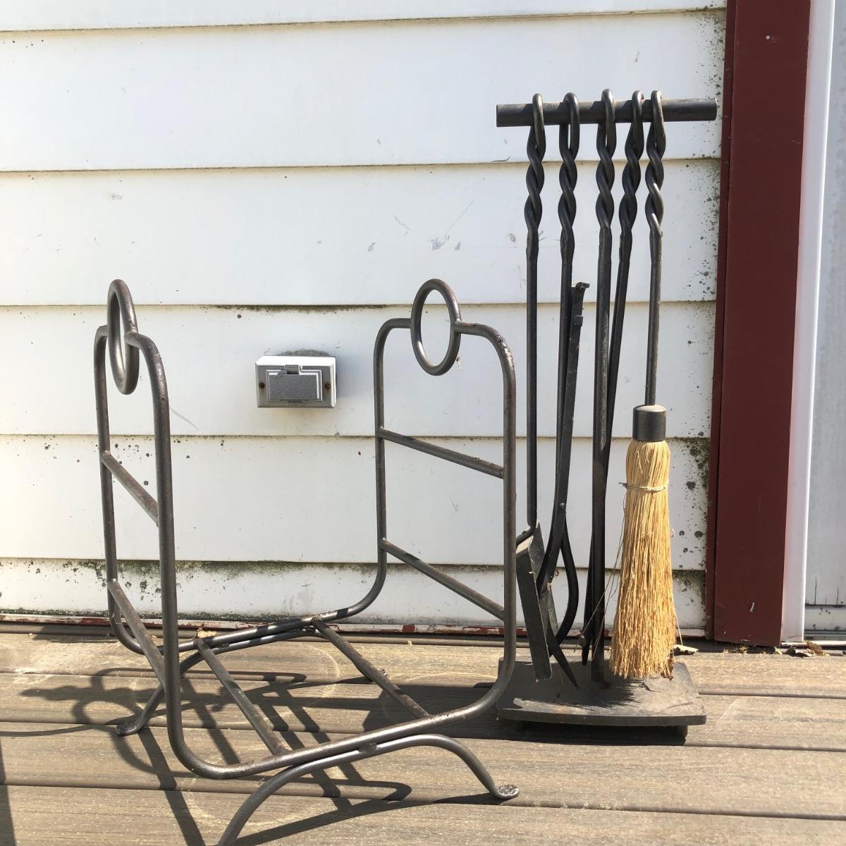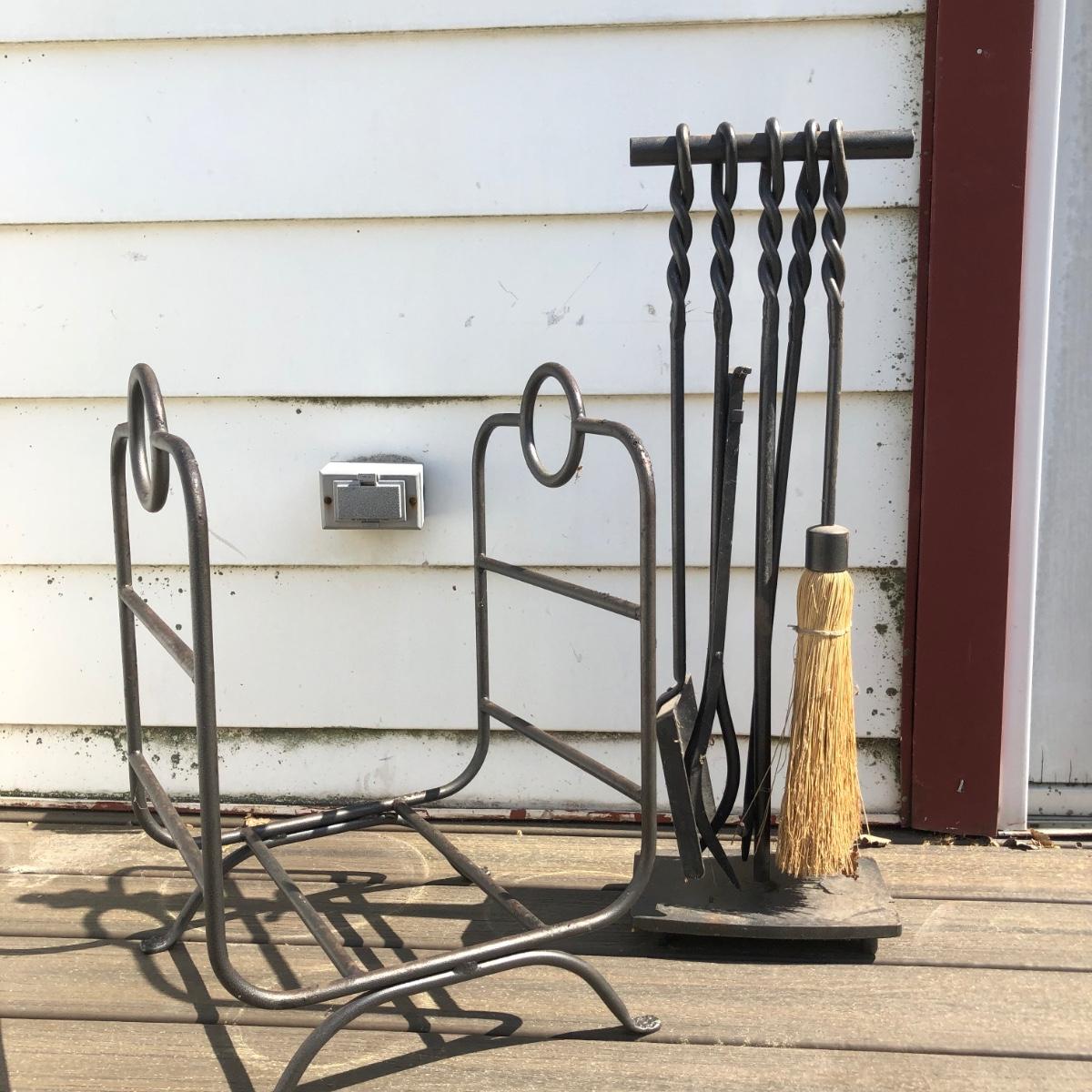 LOT 136M: Iron Wood Rack & Fireplace Tools